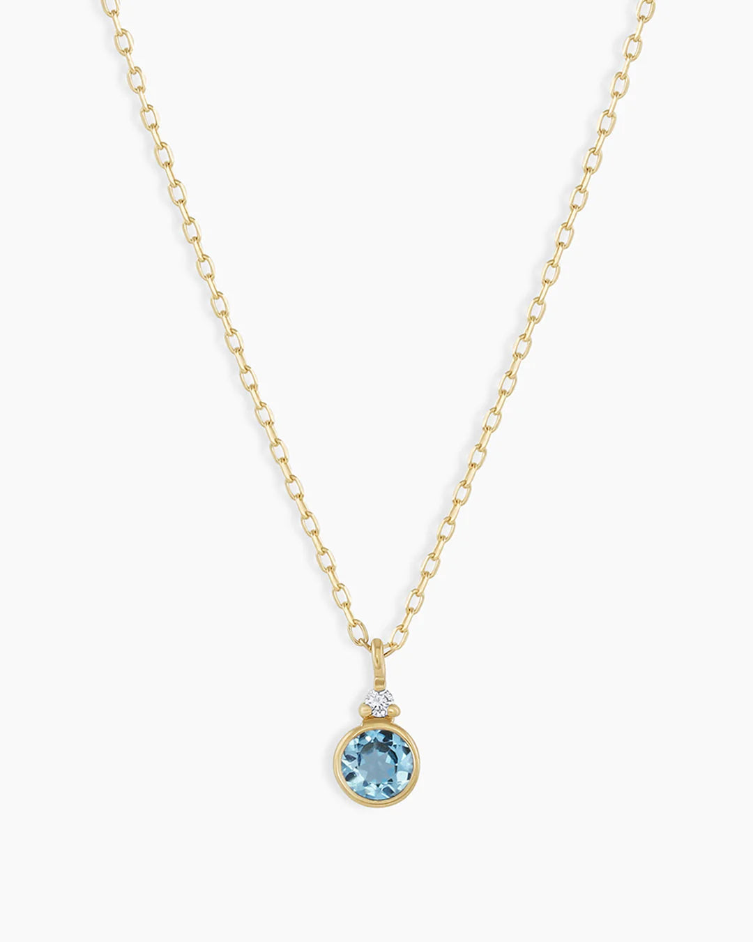 Whether you choose your favorite color or birthstone, the Birthstone Necklace adds a beautiful pop of color to your look. Crafted with genuine gemstones and 14k solid gold, this necklaceis both luxurious and timeless. Create a layer by pairing this necklace with shorter solid gold chain necklaces.