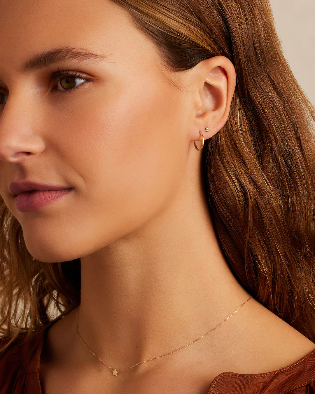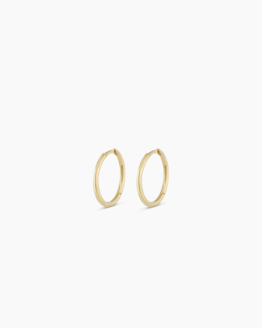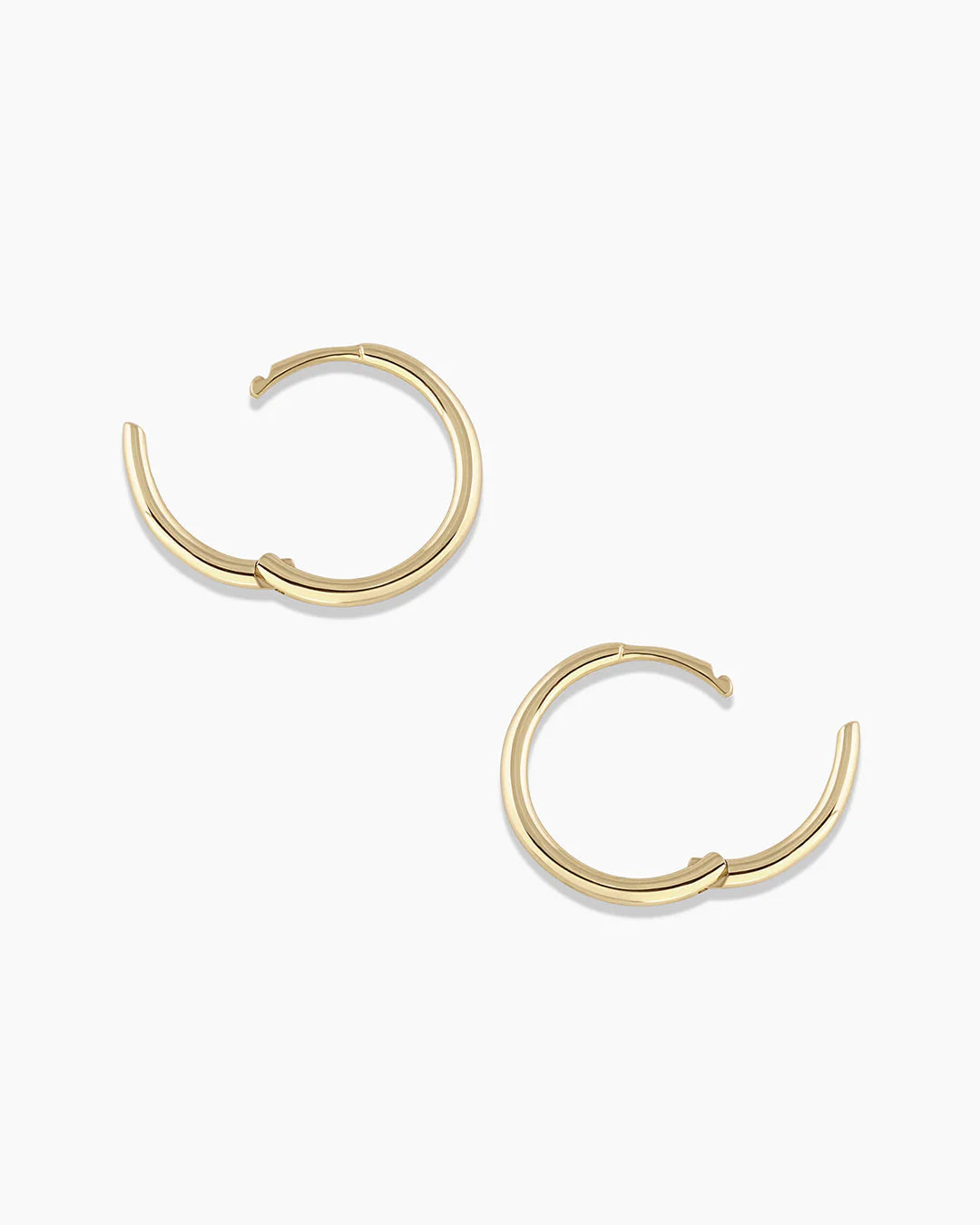 These 14k Gold Classic 8mm Huggies are a must-have addition to your jewelry collection. Crafted from 14k solid gold and designed to be worn every day, these lightweight earrings look beautiful stacked with diamonds or other solid gold huggie hoops.