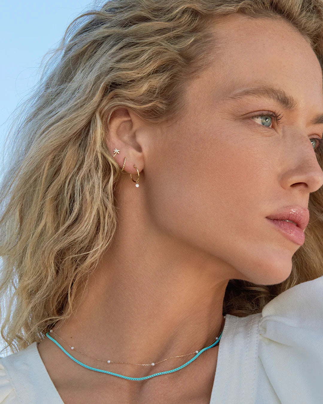 This gold stud earring is crafted from solid gold, making it a timeless and luxurious addition to any jewelry collection. Perfect for stacking or to wear alone, this gold huggie provides long-lasting shine. Wear yours stacked with other diamond huggie hoop earrings and studs.