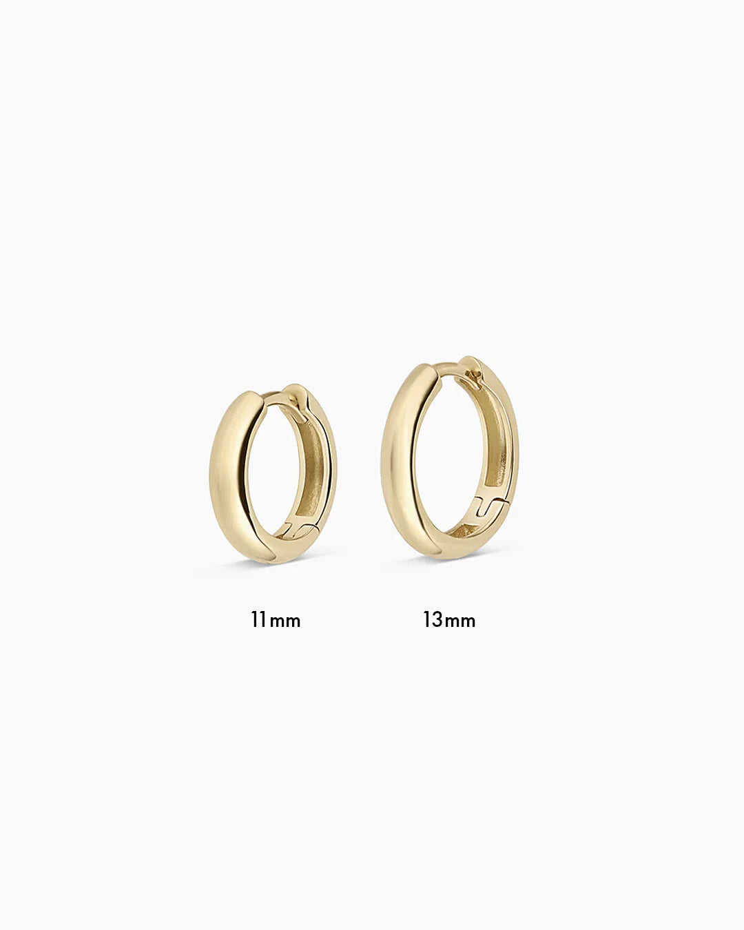 The 14k Gold Lou Helium Huggie Hoop Earring in an 11mm size is a must-have addition to your jewelry collection. Crafted from 14k solid gold and designed to be worn every day, this lightweight hoop looks beautiful stacked with diamond stud earrings or other solid gold earrings.