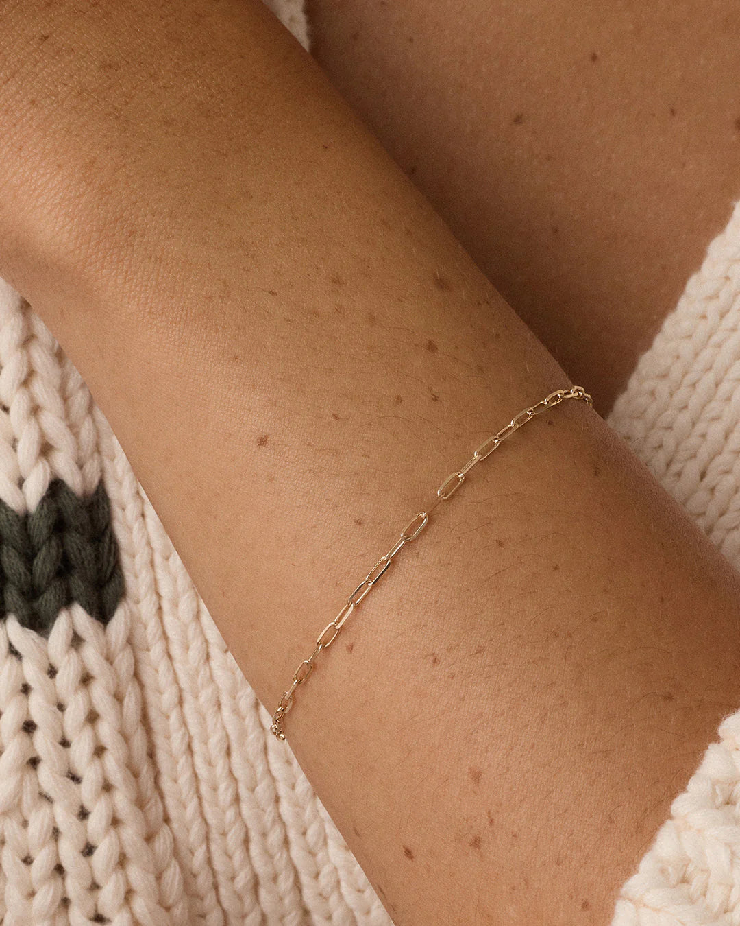 The 14k Gold Micro Mini Parker Bracelet is a dainty paper clip chain, designed in solid 14k gold for a luxe and ultra-wearable finish. This minimalist bracelet stacks seamlessly with your everyday favorites or shines solo.