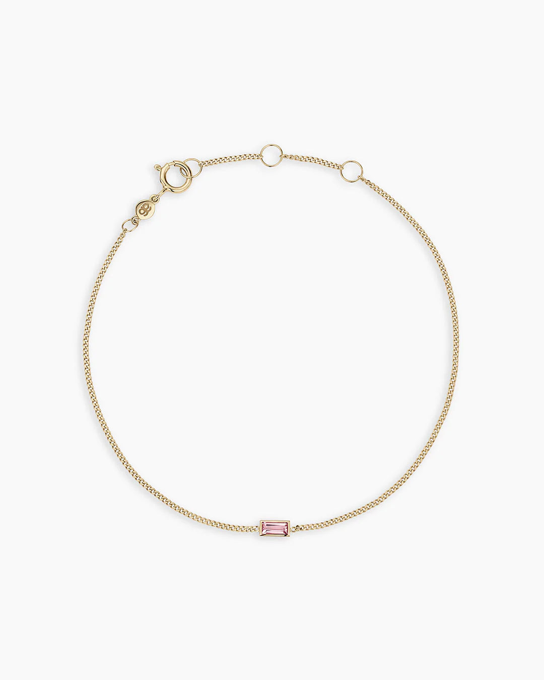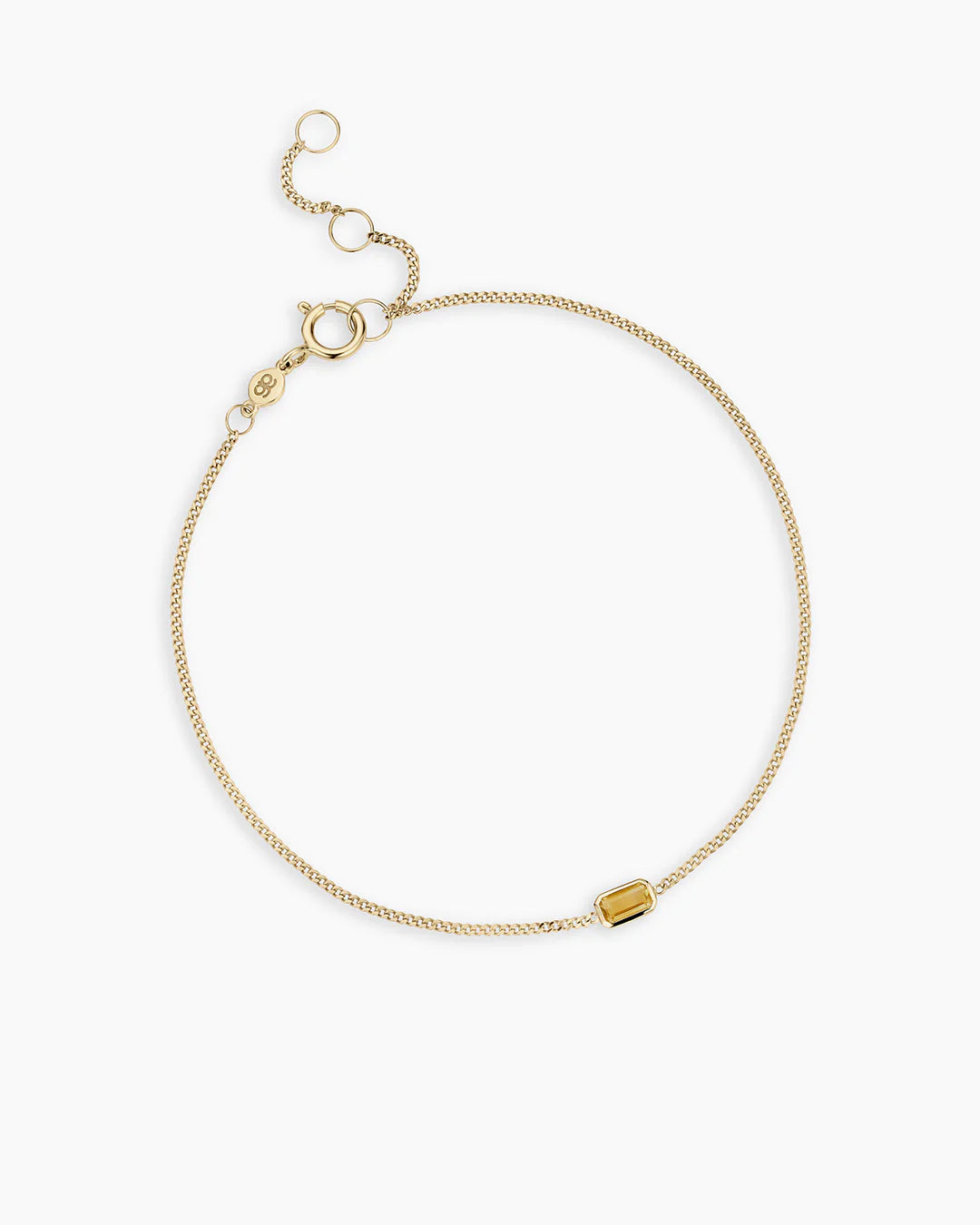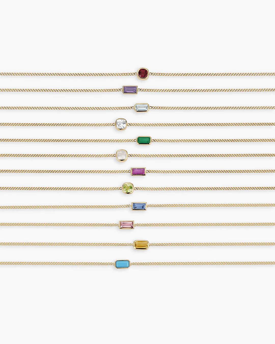 This solid gold curb chain bracelet features a vibrant birthstone, designed in solid 14k gold for a luxe and ultra-wearable finish. Wear yours or a loved one's--this dainty bracelet stacks seamlessly with your everyday favorites or shines solo.