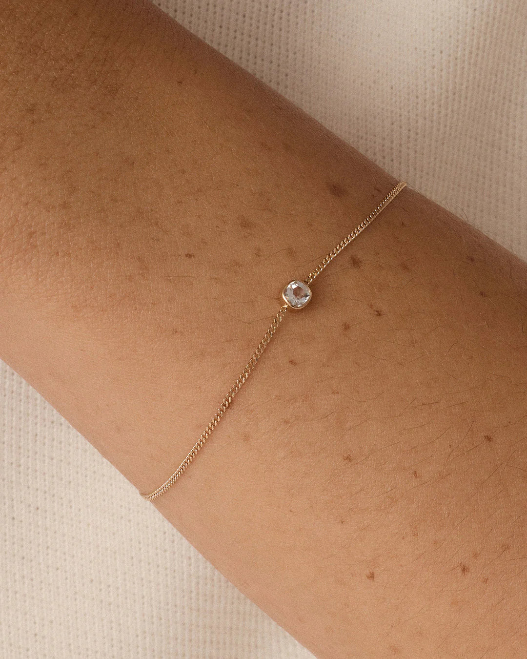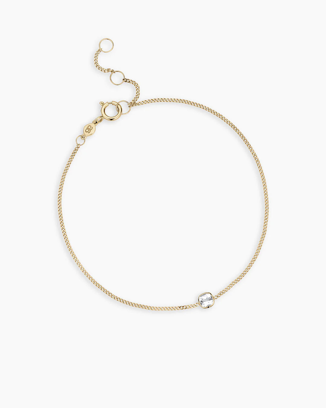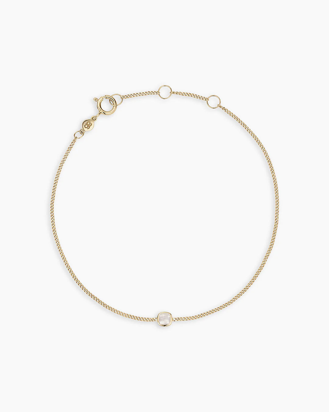 This solid gold curb chain bracelet features a vibrant birthstone, designed in solid 14k gold for a luxe and ultra-wearable finish. Wear yours or a loved one's--this dainty bracelet stacks seamlessly with your everyday favorites or shines solo.