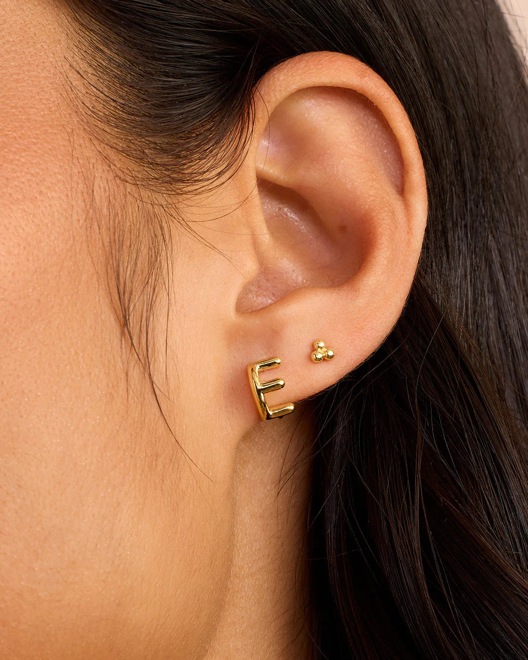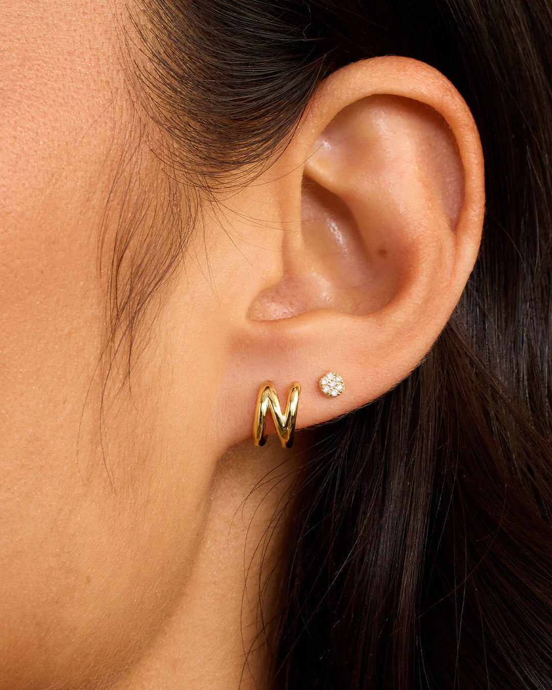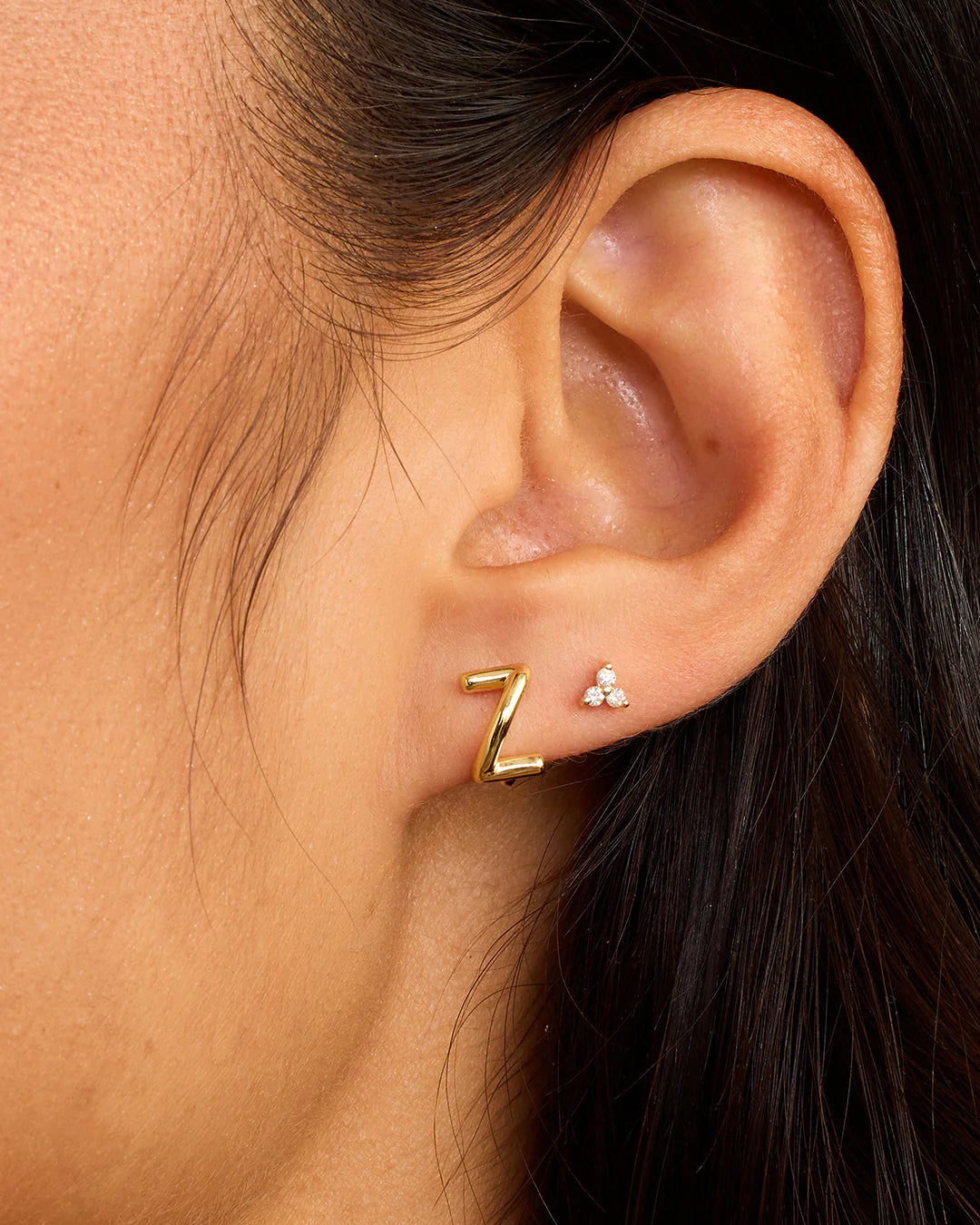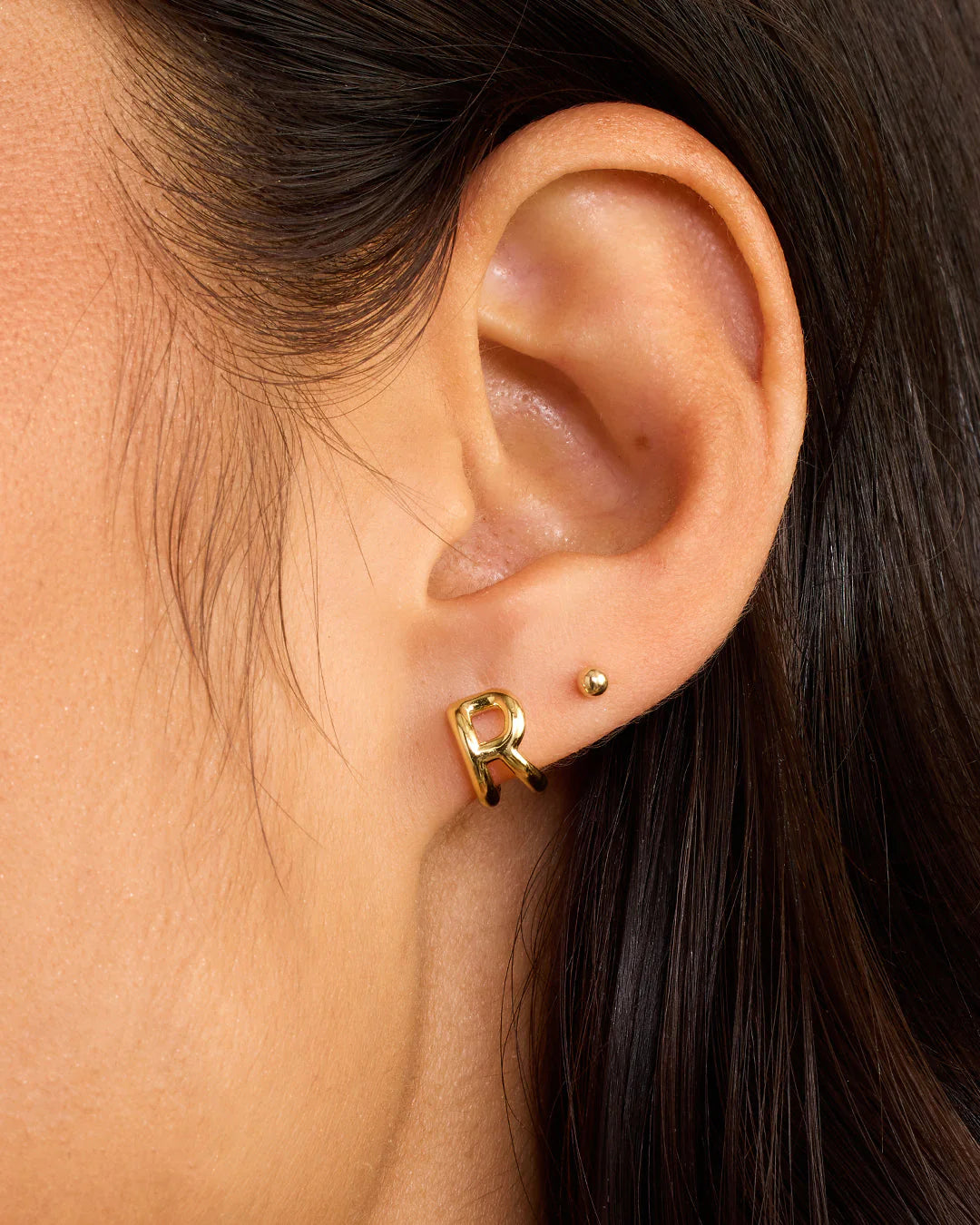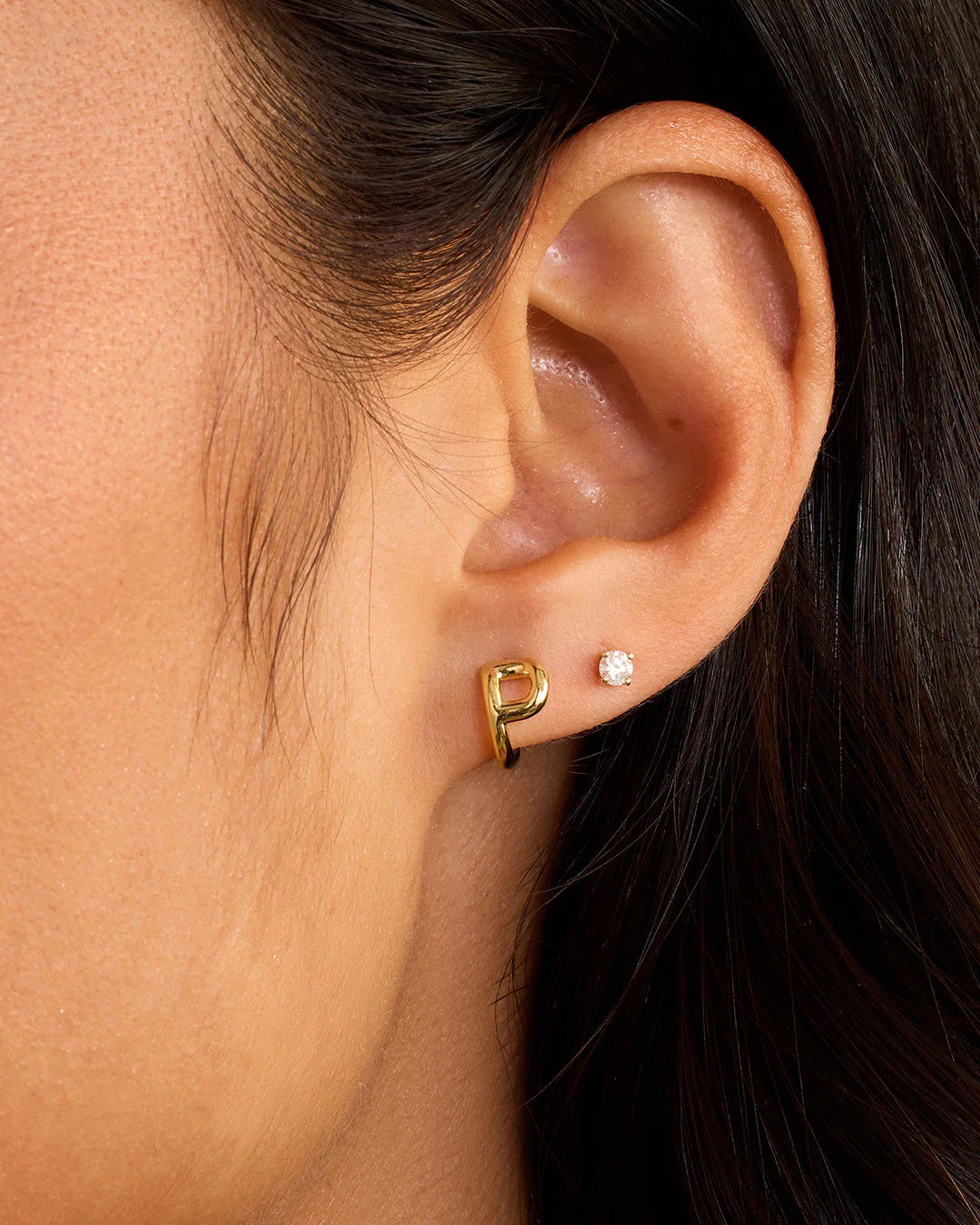 Available as a single earring. You can wear your initial or a loved one's, and stack it with other gold and diamond earrings.