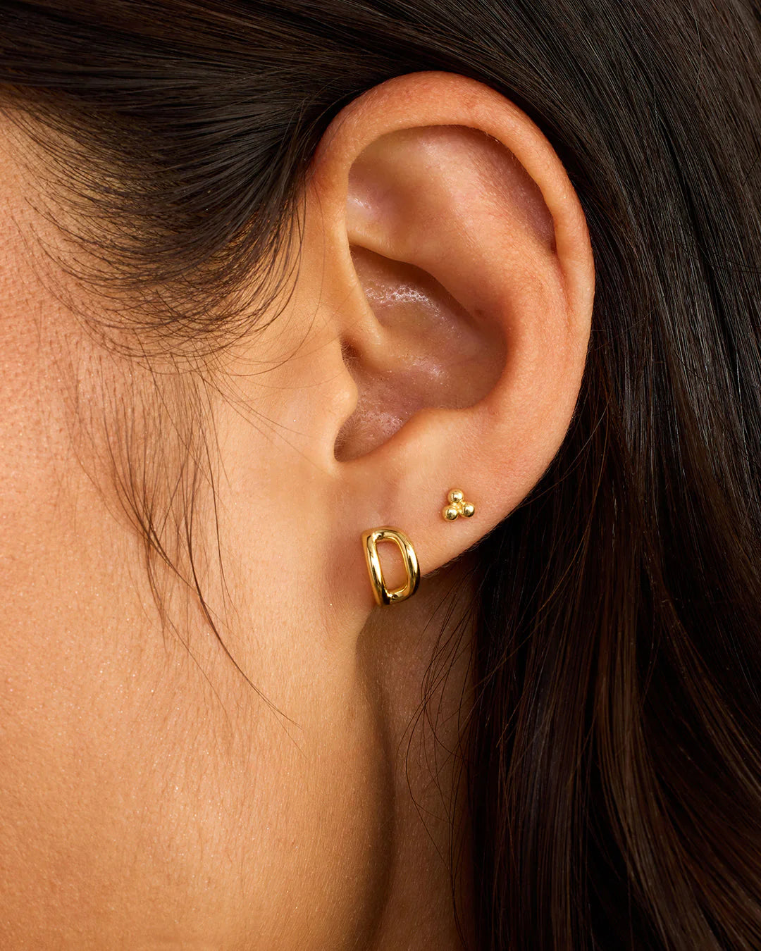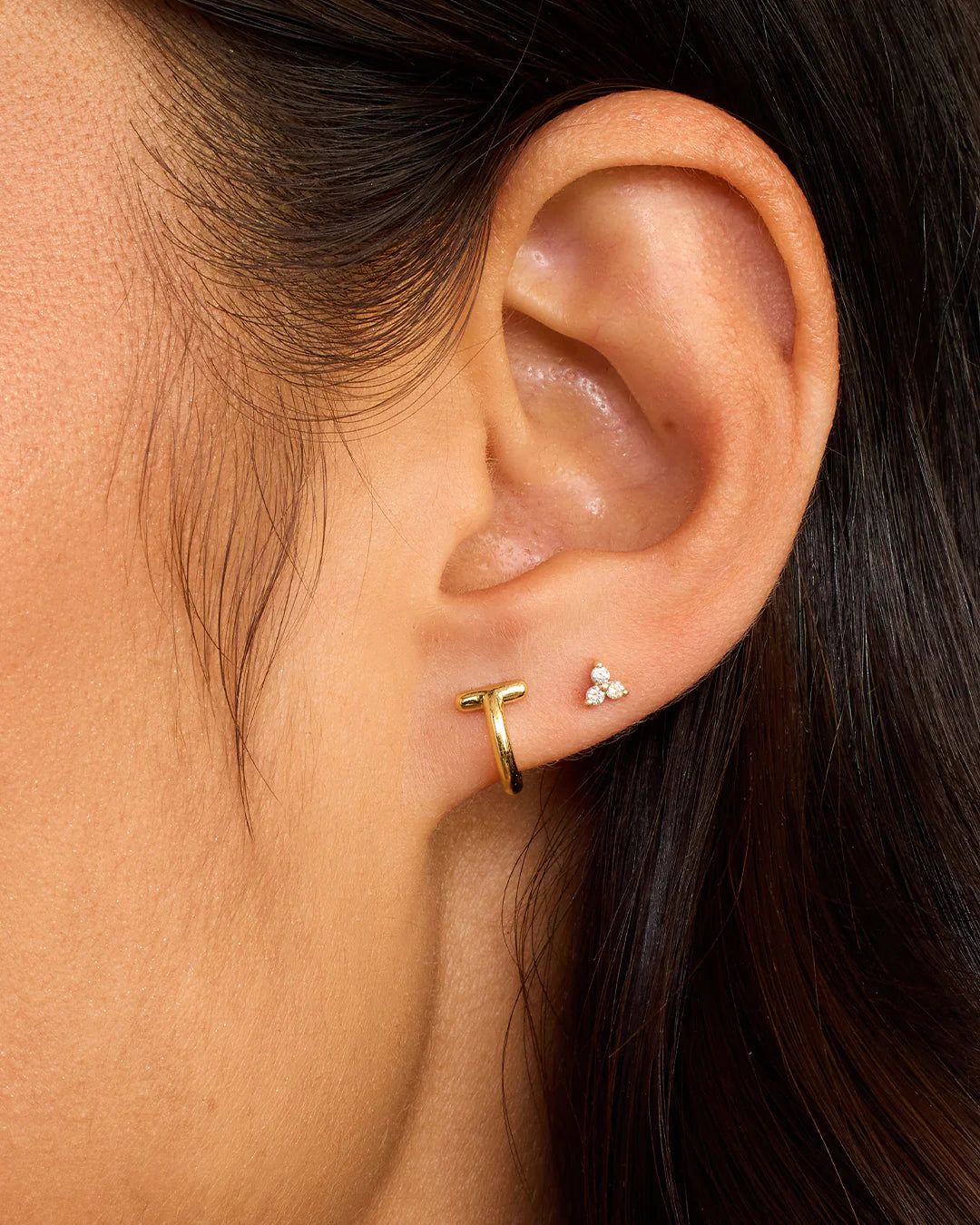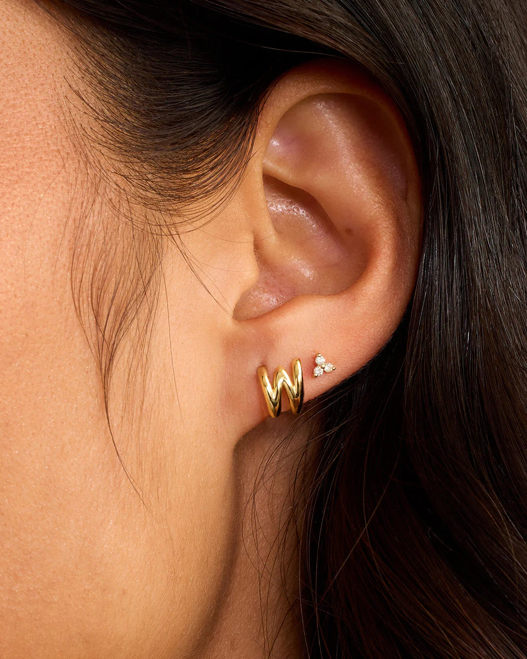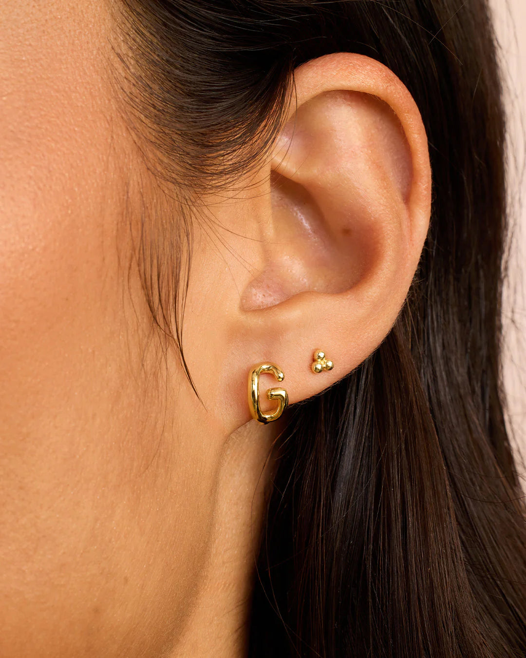 Available as a single earring. You can wear your initial or a loved one's, and stack it with other gold and diamond earrings.