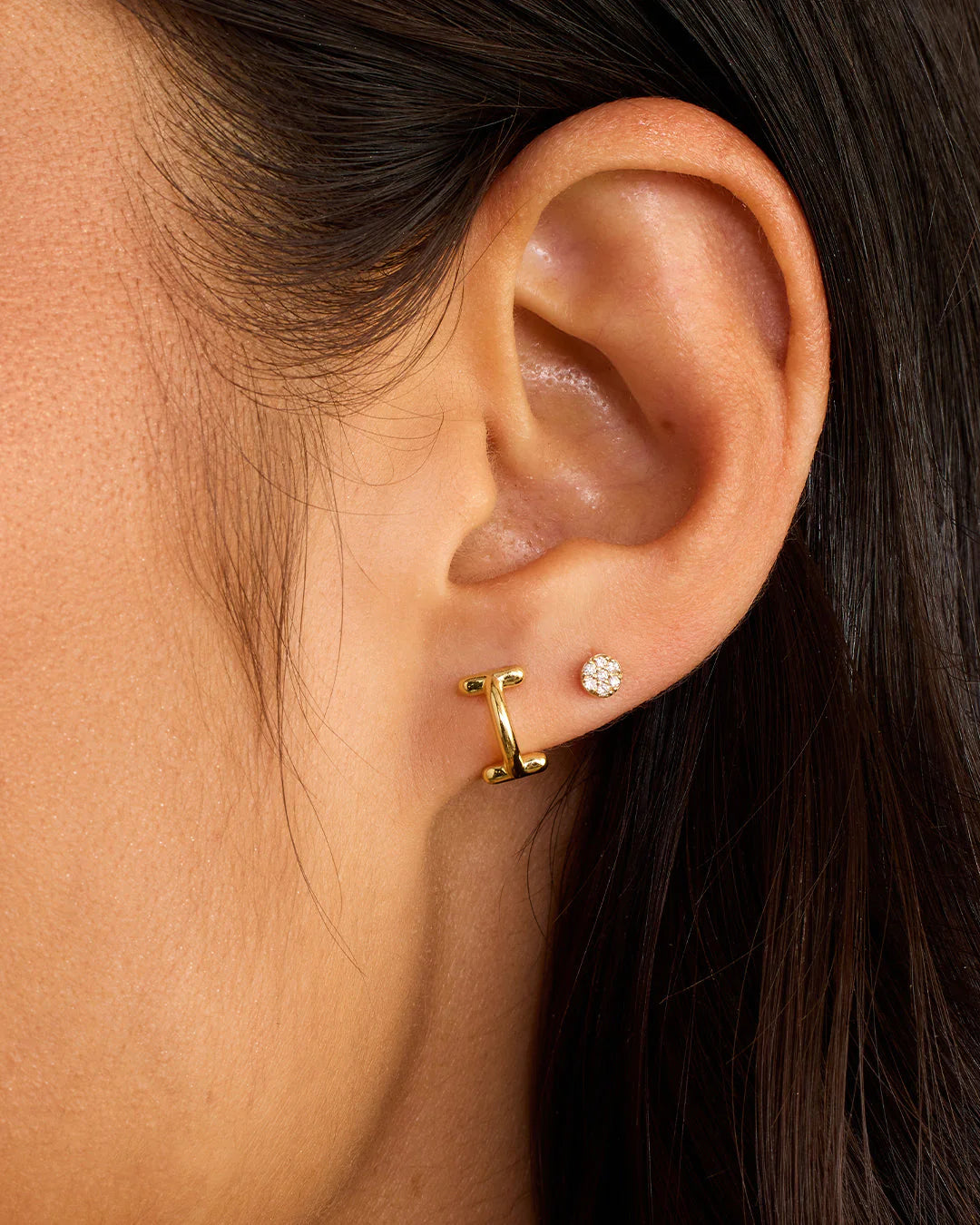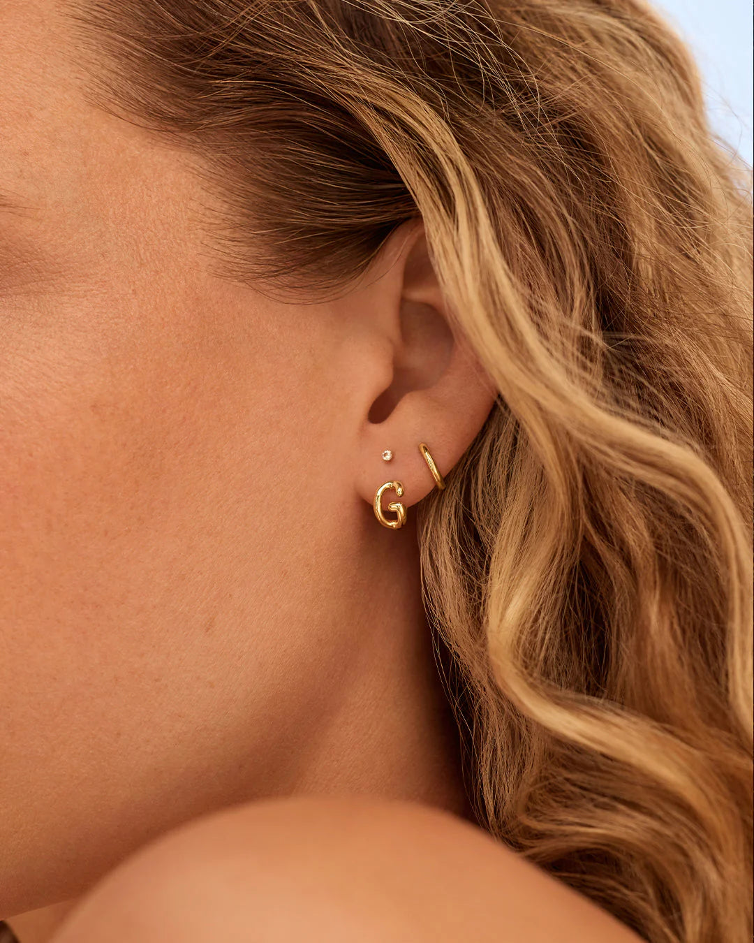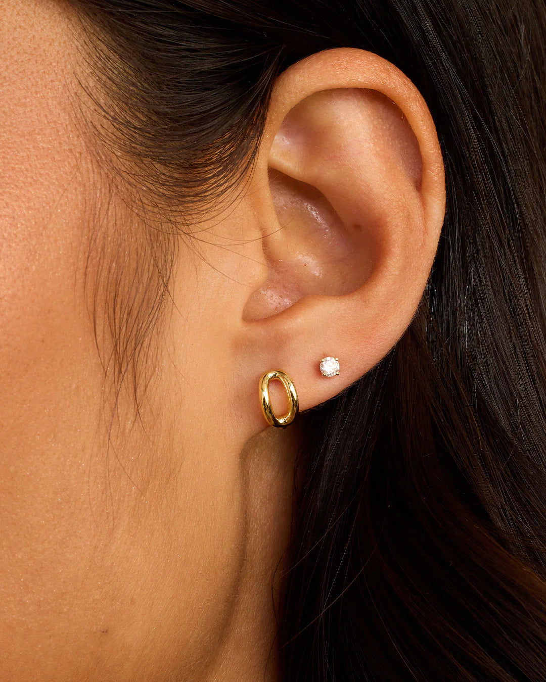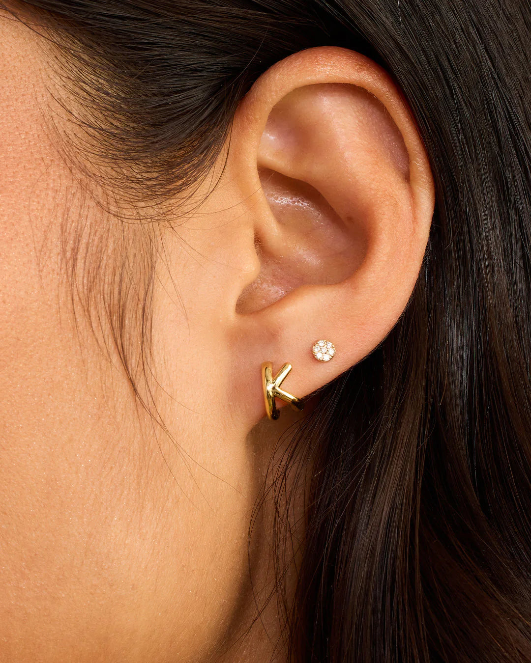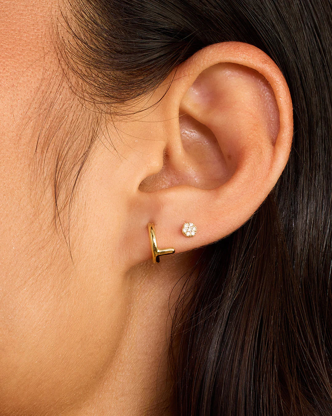 Available as a single earring. You can wear your initial or a loved one's, and stack it with other gold and diamond earrings.