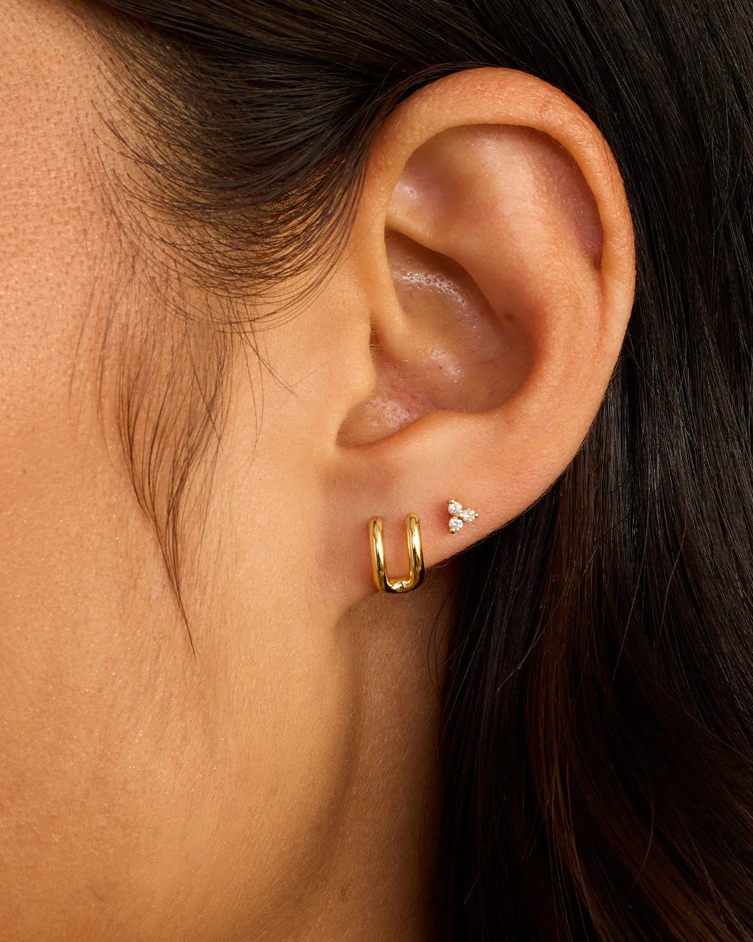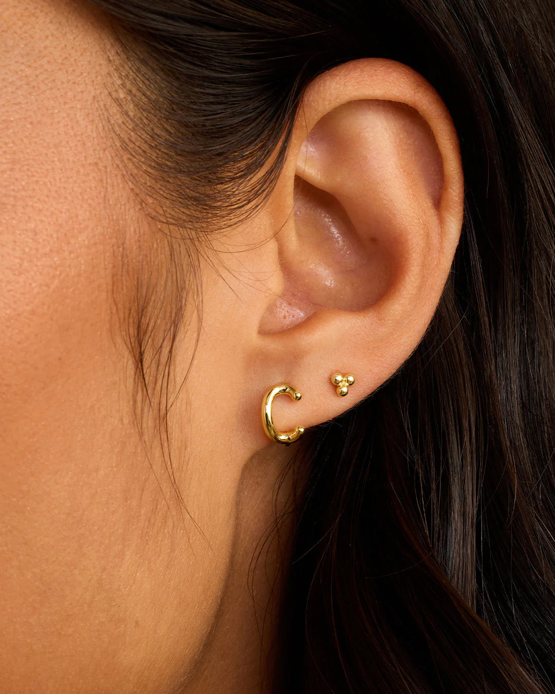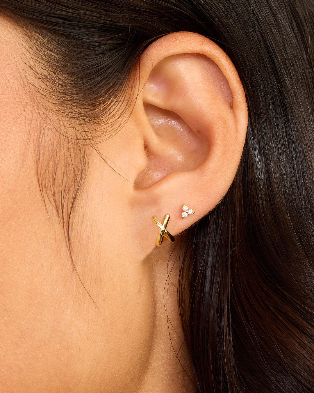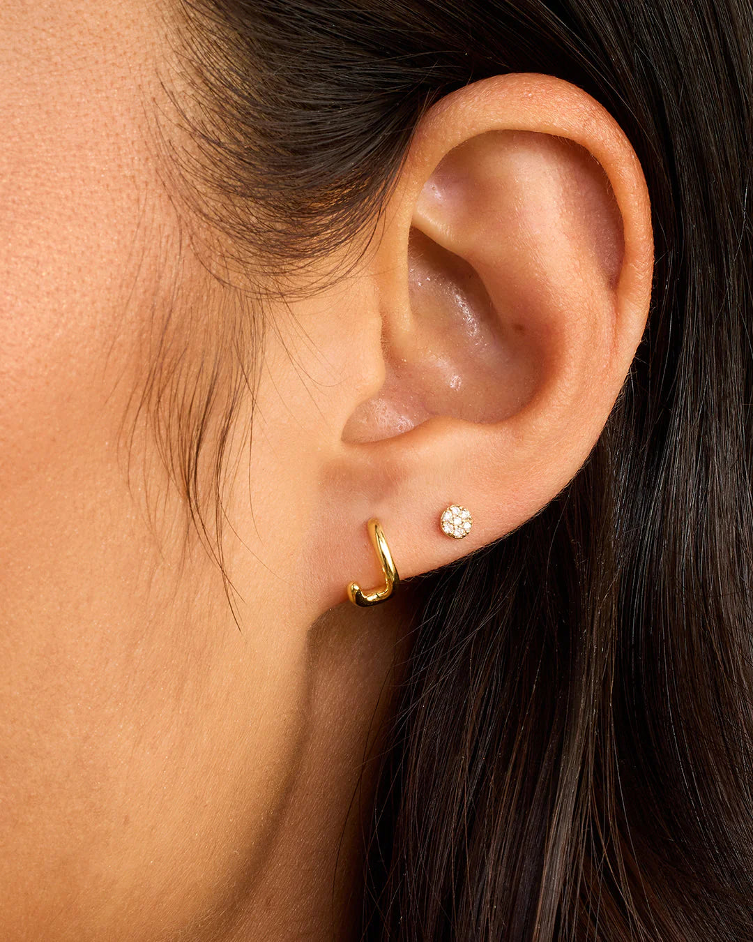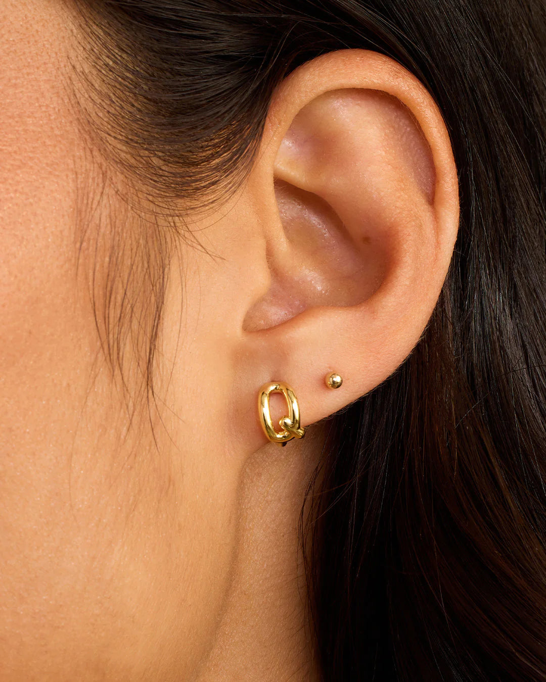 Available as a single earring. You can wear your initial or a loved one's, and stack it with other gold and diamond earrings.