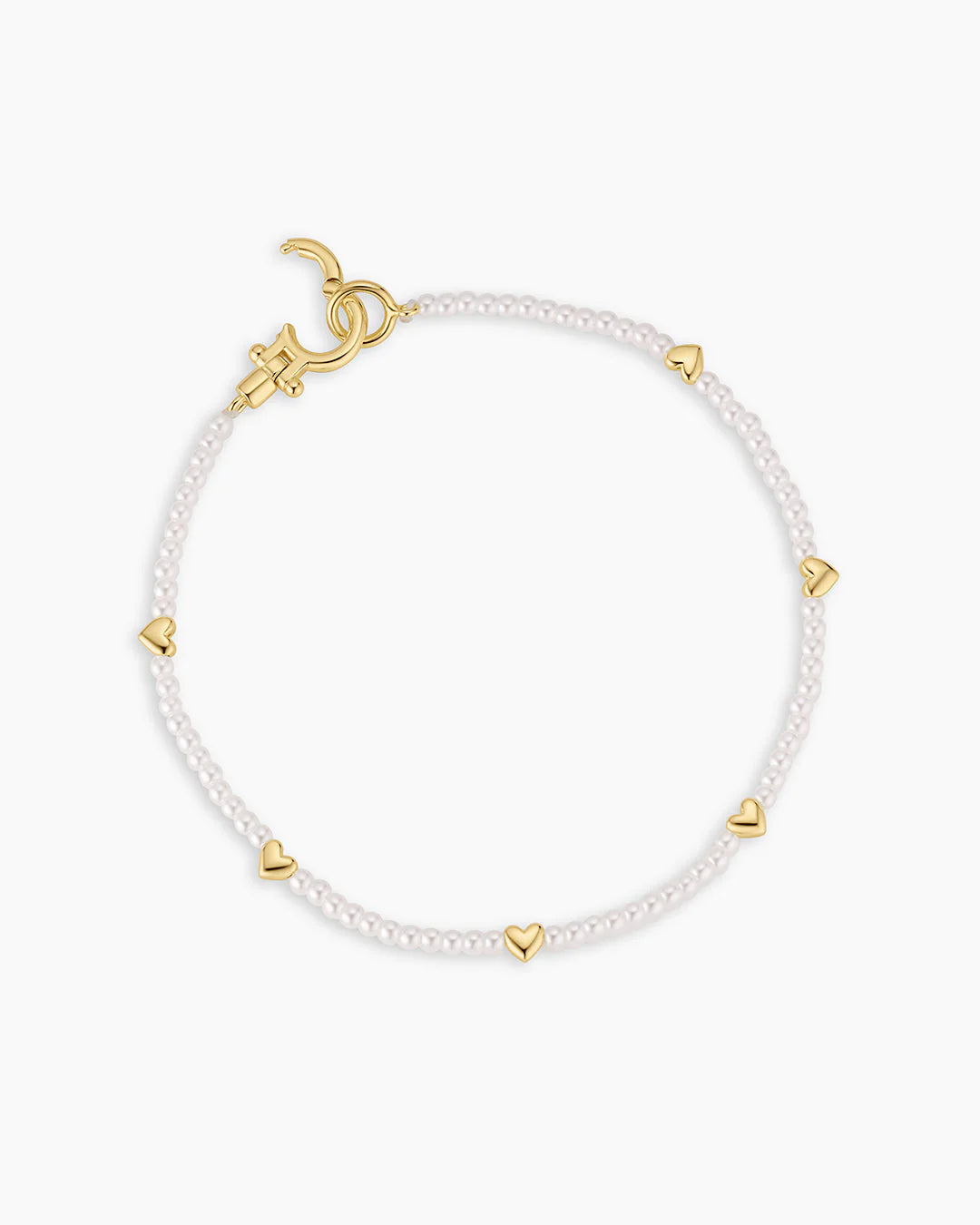 This dainty synthetic and 18k gold plated pearl bracelet is ideal for those who love mixing materials. Pair it with solid gold chain bracelets for contrast or wear it alongside initial or charm bracelets for a personalized look. It’s a styling secret weapon—easy, versatile, and endlessly wearable. Perfect for everyday wear, gifting, or marking a meaningful moment, this pearl and golden heart bracelet transitions seamlessly from casual to polished. Jeans and a tee? Perfect. Silk blouse or evening dress? Even better. It’s the kind of piece you’ll reach for without thinking—and miss when you don’t wear it.