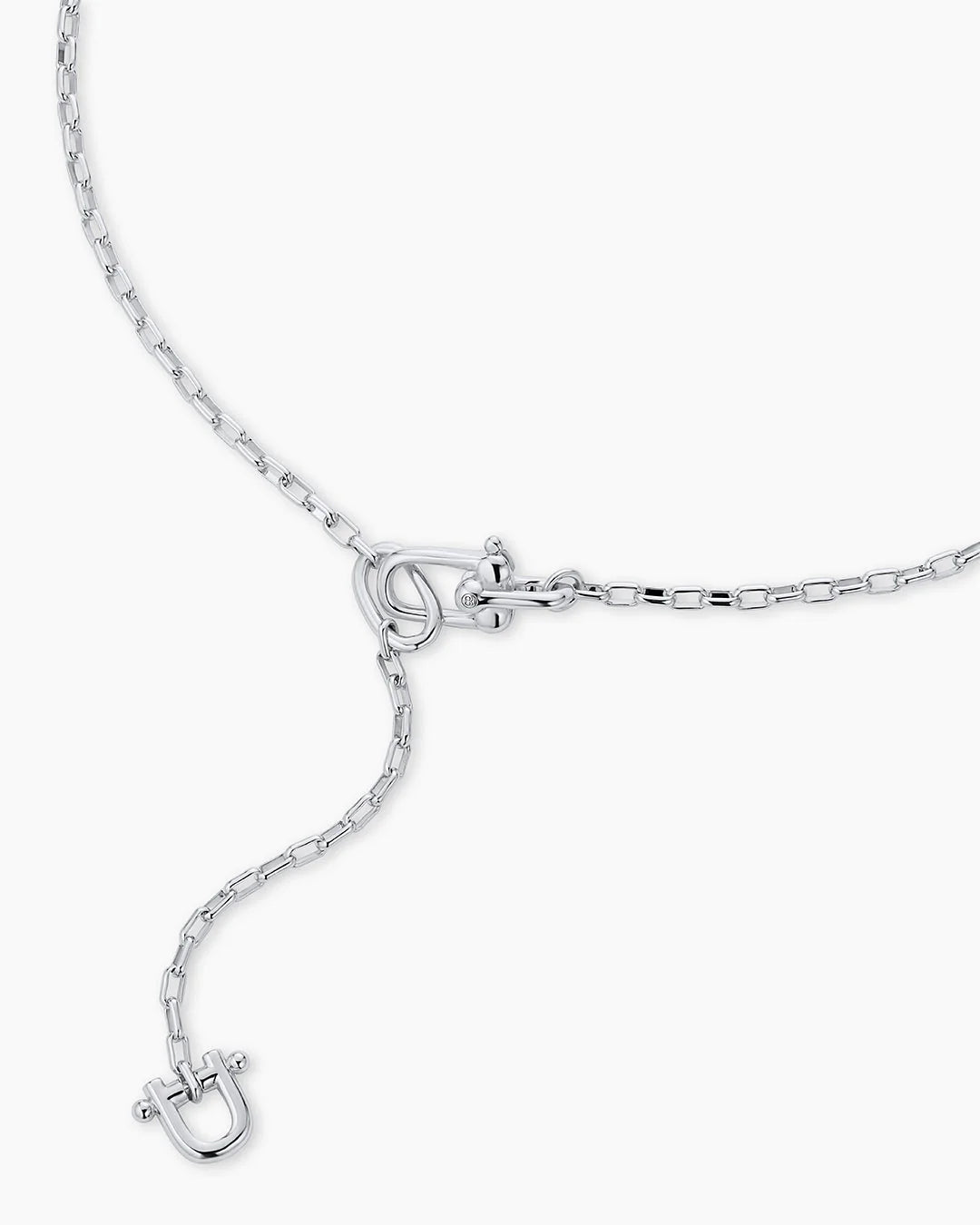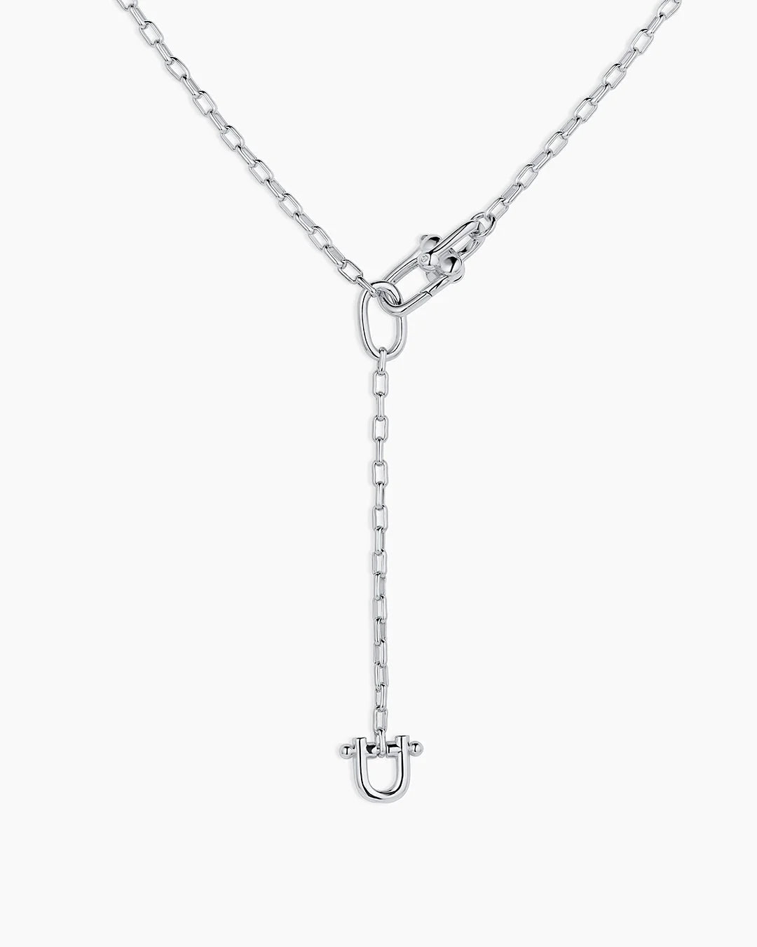 This dainty gold-plated lariat necklace looks just as amazing solo as it does stacked with your favorite chains, switching effortlessly from classic necklace to something a little more rebellious. Lightweight, polished, and unapologetically versatile—this necklace works no matter what way you wear it.