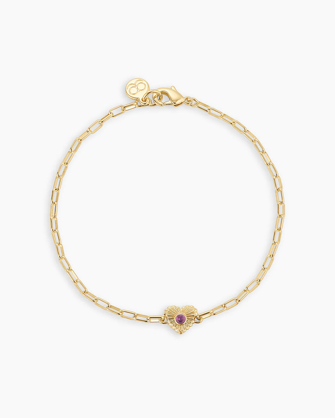 This 18k gold plated bracelet features a genuine gemstone set in a heart design. Whether you choose a stone for its symbolism or just because it looks good, this bracelet is a classic you'll wear on repeat.