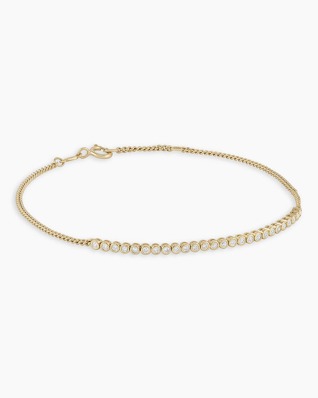 Achieve a truly timeless look with the 14k Gold Classic Diamond Bracelet. This gorgeous solid gold chain bracelet features a classic, diamond encrusted design that is perfect for any occasion. To wear, stack alongside other gold or diamond bracelets. More is more!