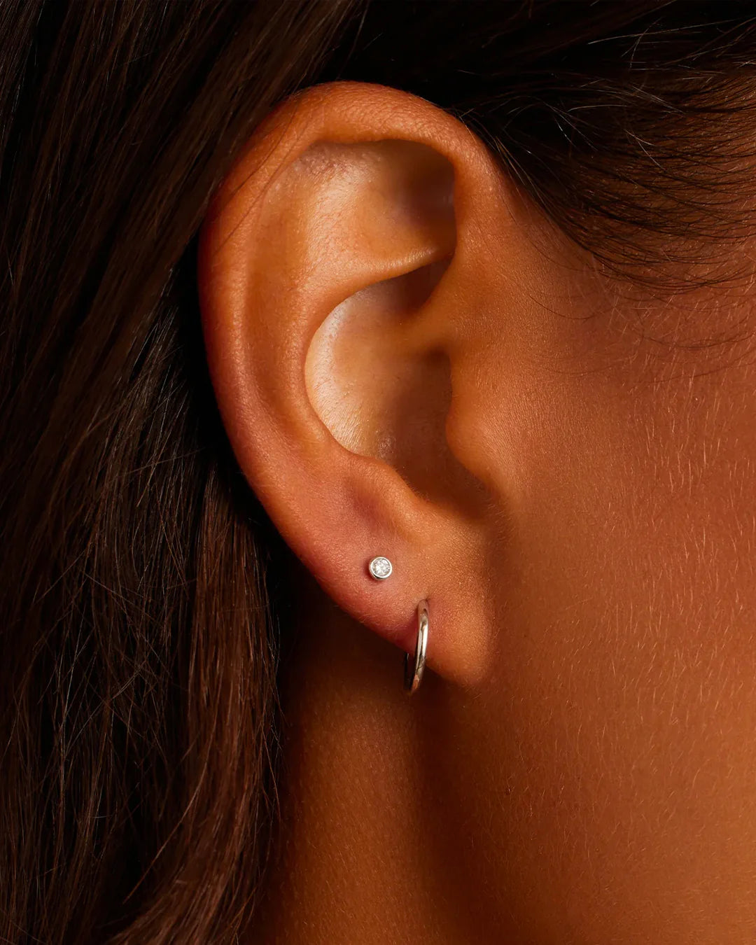 This pair of classic diamond stud earrings is crafted from solid white gold, making them a timeless and luxurious addition to any jewelry collection. Perfect for stacking or to wear alone, these diamond studs provide long-lasting shine. Wear yours stacked with other diamond huggie hoop earrings and studs.