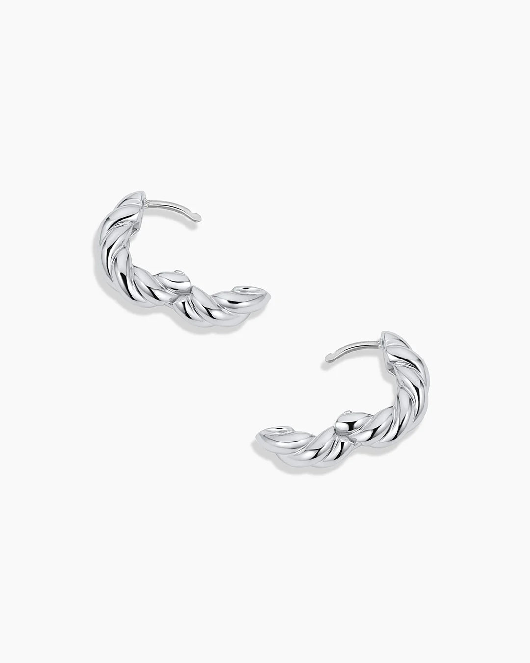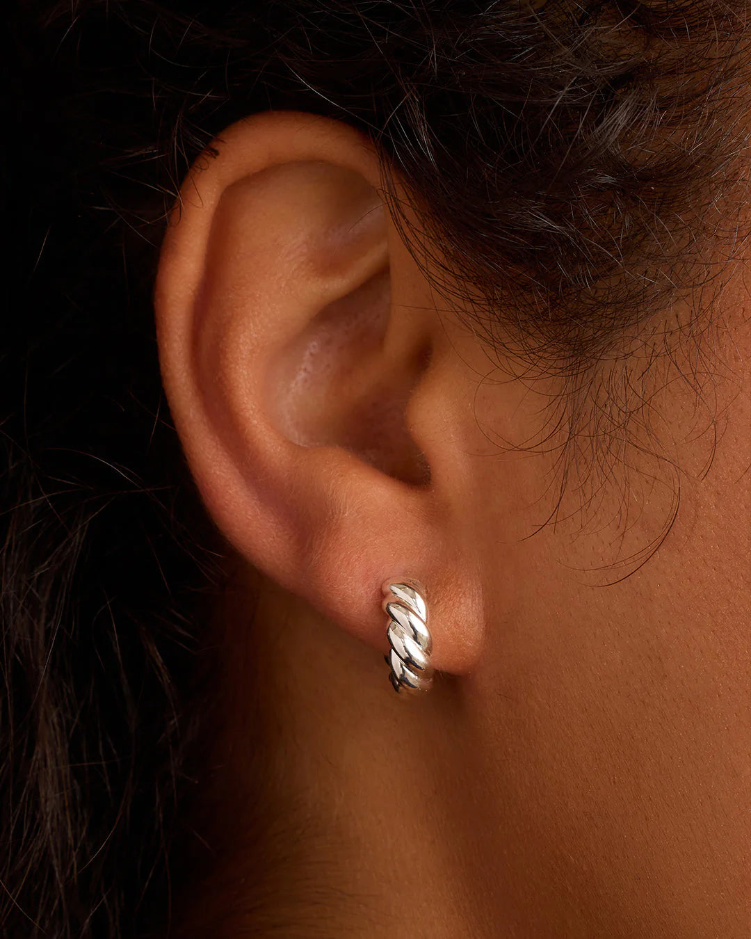 Elevate your style with the Crew Helium Huggies. Featuring a unique twist texture and helium design, these gold plated huggie earrings transition seamlessly from day to night. We love wearing ours alongside gold and diamond studs.