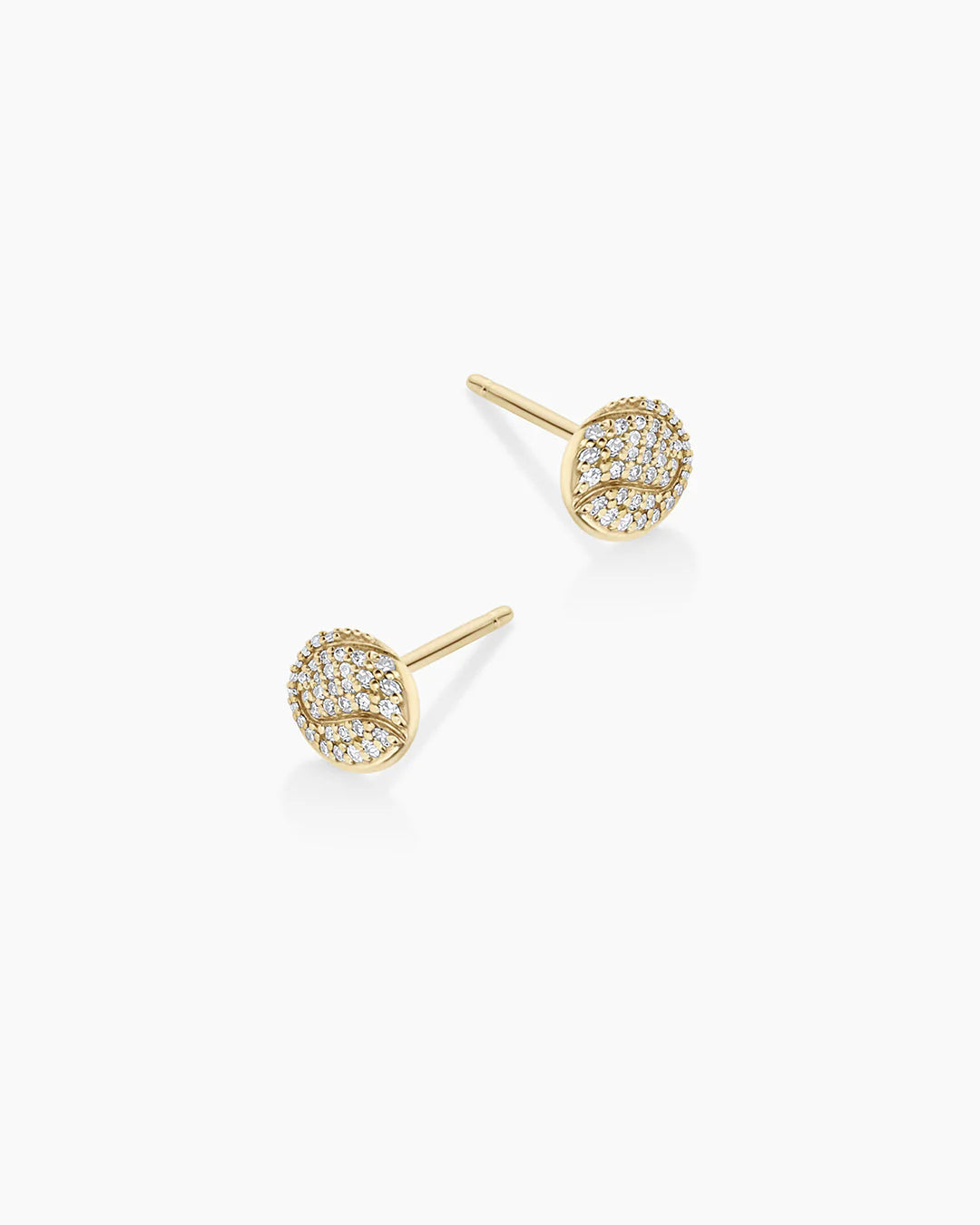 The Diamond Ace Studs are the perfect style for any tennis lover. These 14k solid gold and diamond tennis ball earrings are a meaningful addition to any stack.