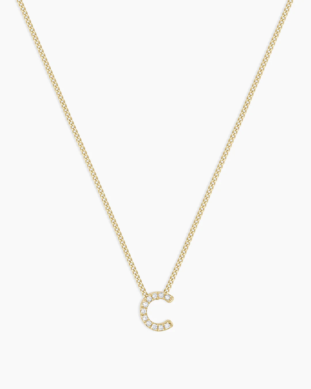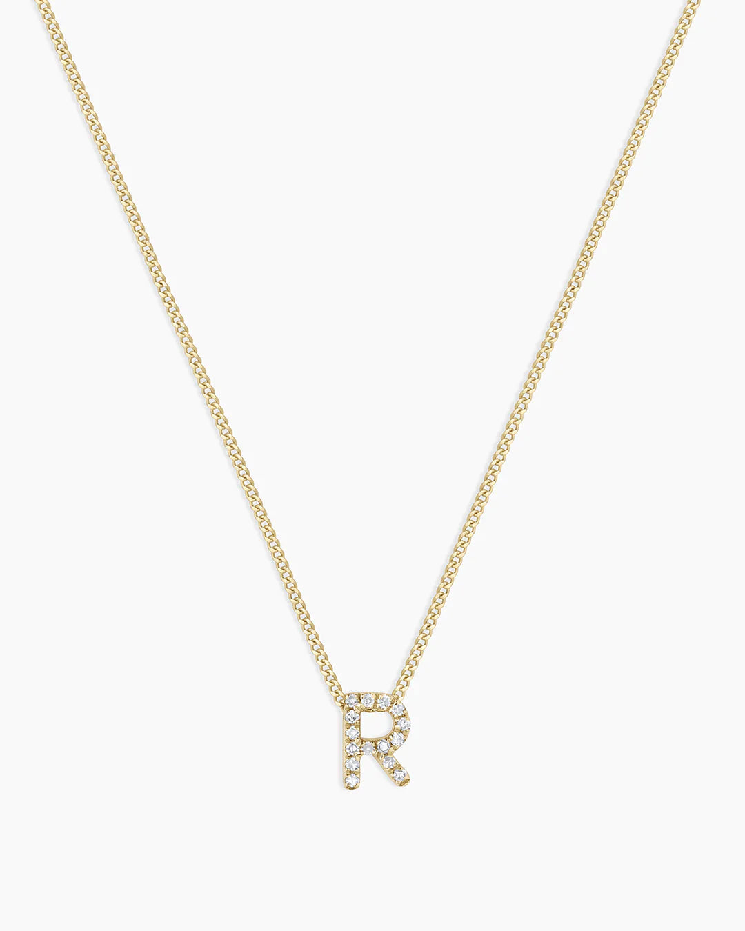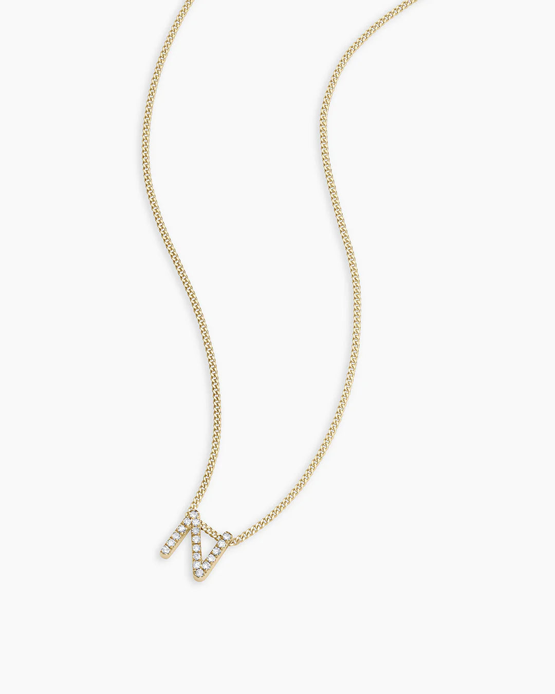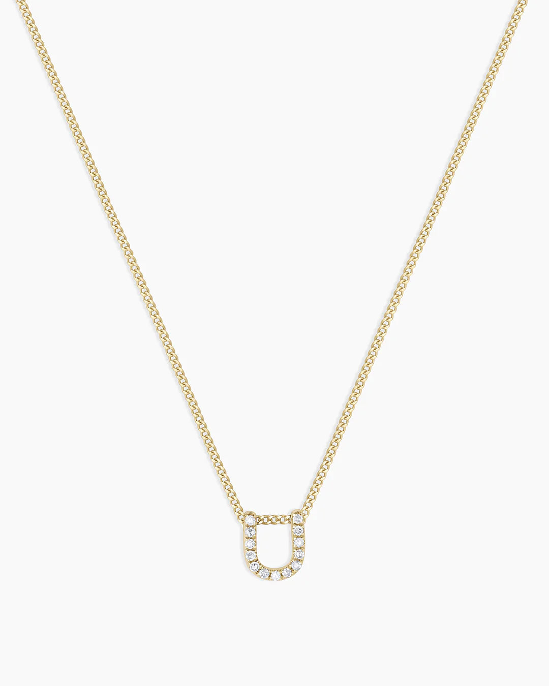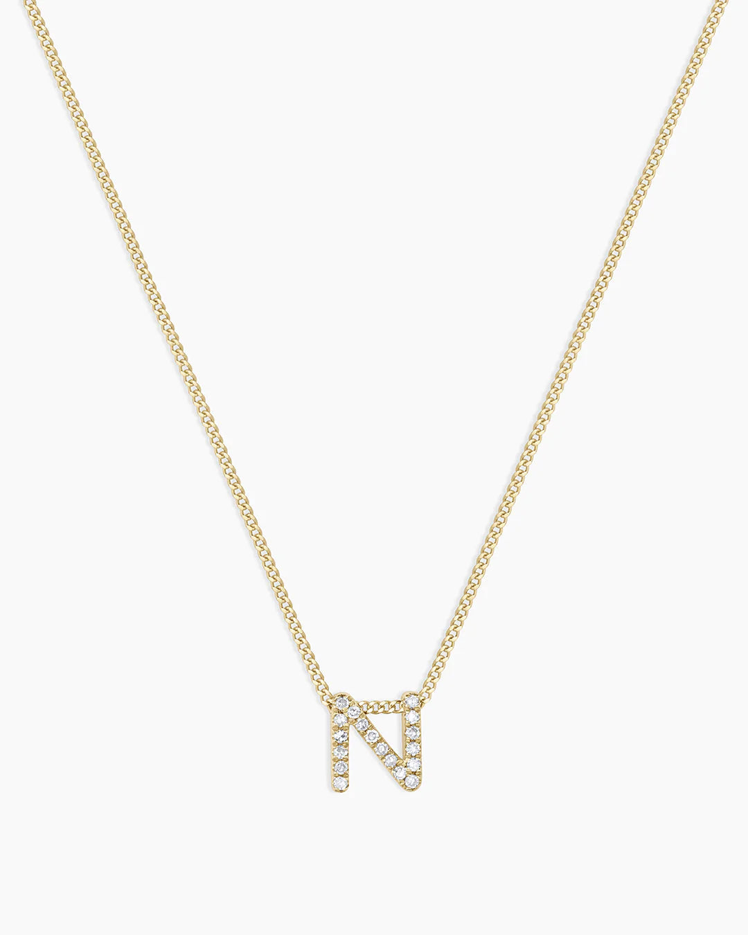 A diamond and solid gold alphabet necklace is the perfect way to personalize your everyday layer. Whether you choose your initial or a loved one's, this necklace is sure to add a meaningful touch to your look. We love this adjustable, diamond necklace paired with solid gold chains and more diamonds.