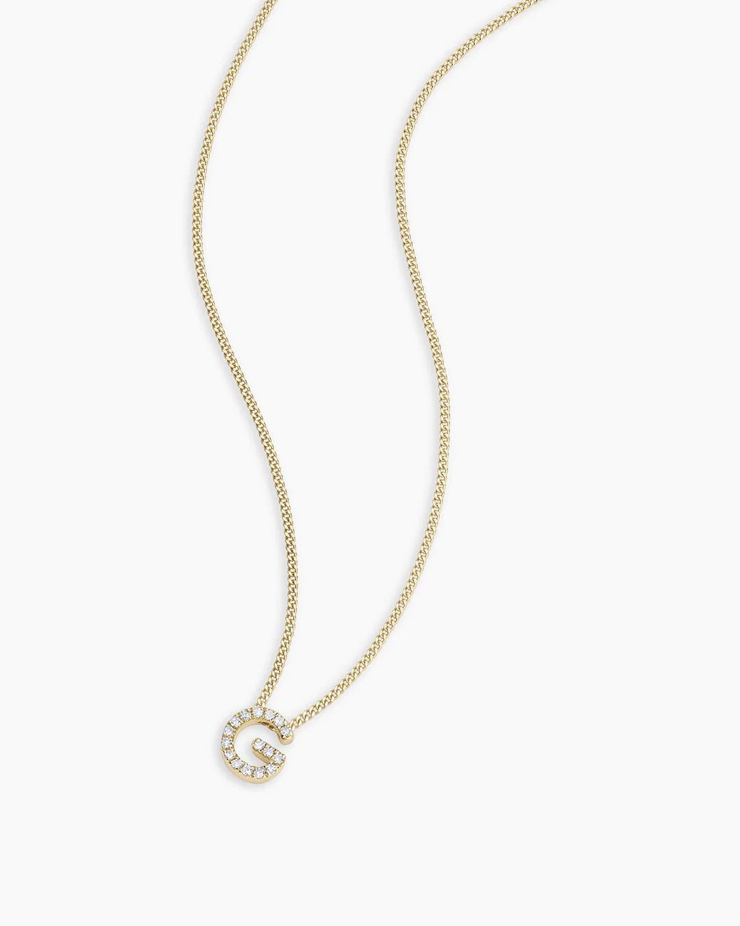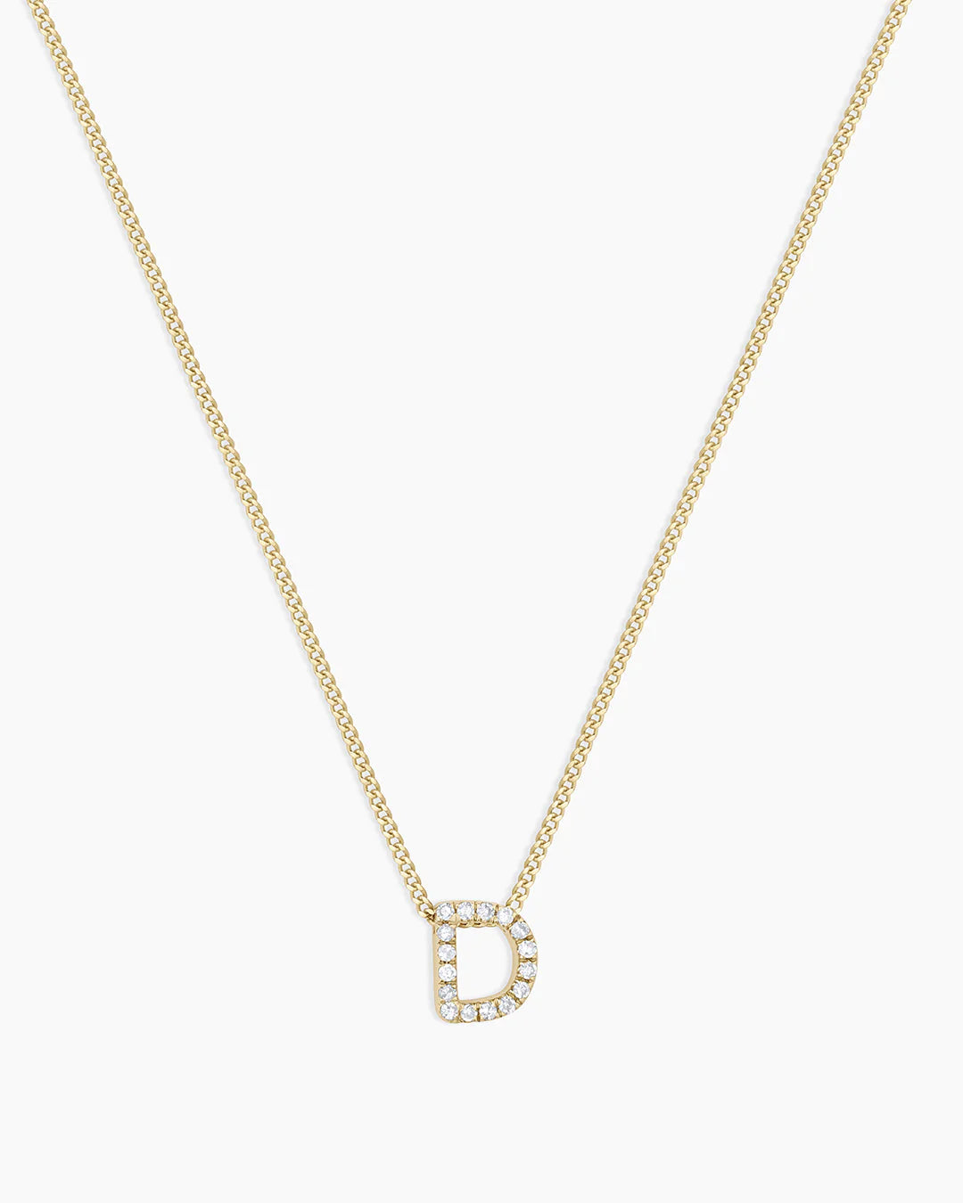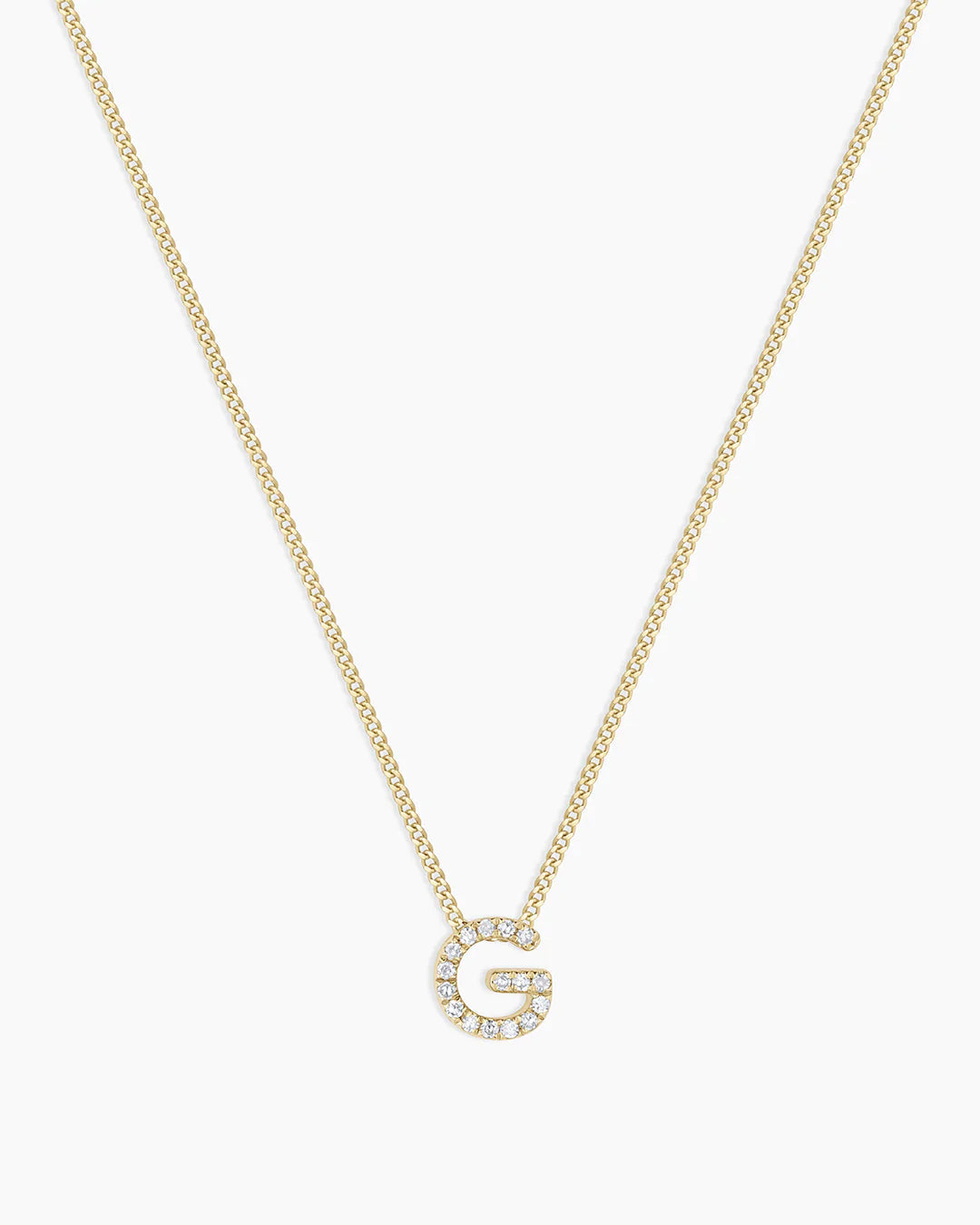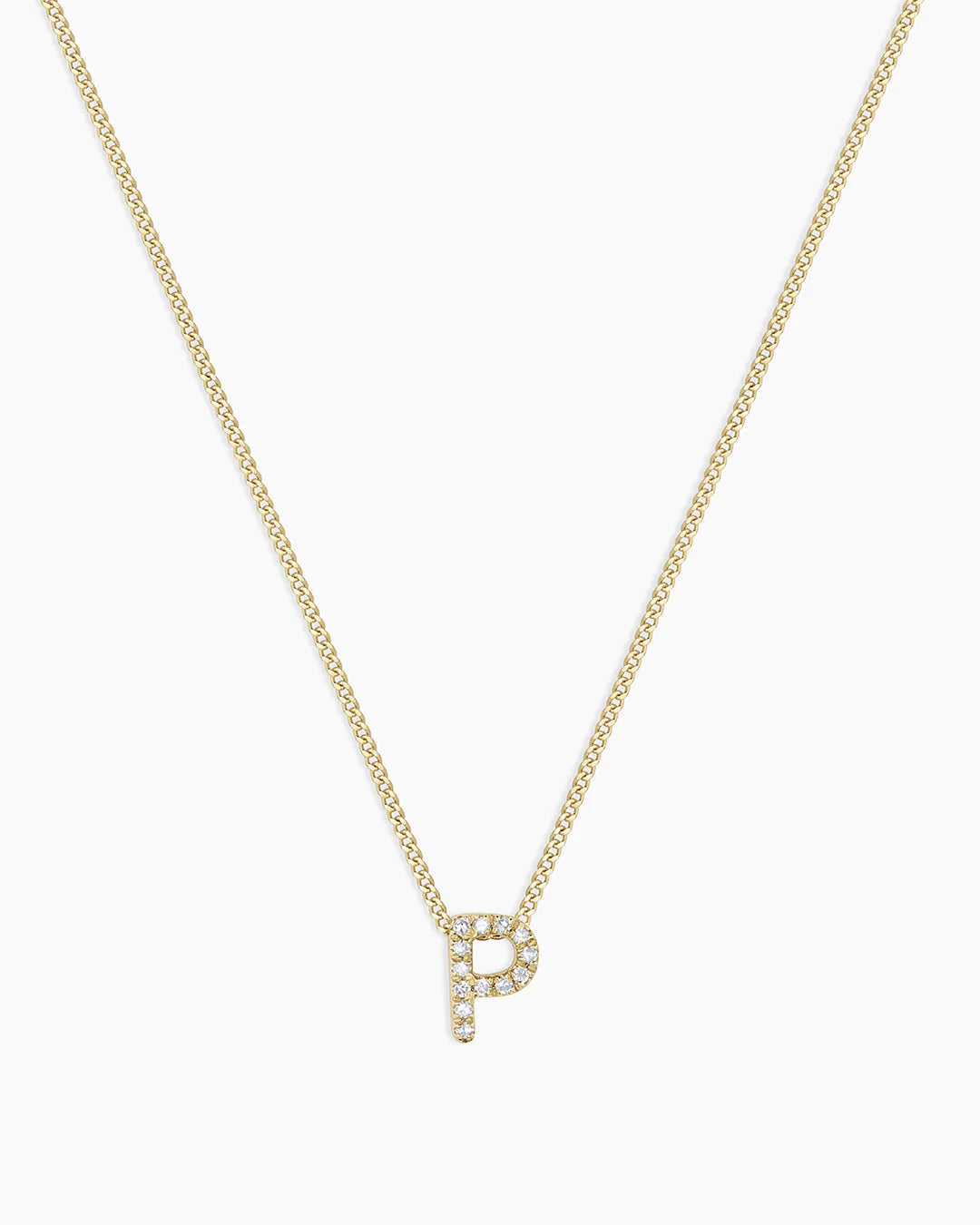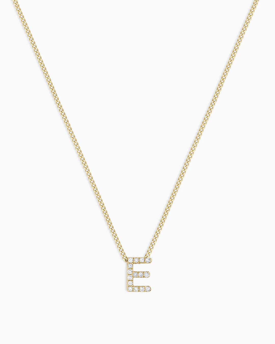 A diamond and solid gold alphabet necklace is the perfect way to personalize your everyday layer. Whether you choose your initial or a loved one's, this necklace is sure to add a meaningful touch to your look. We love this adjustable, diamond necklace paired with solid gold chains and more diamonds.