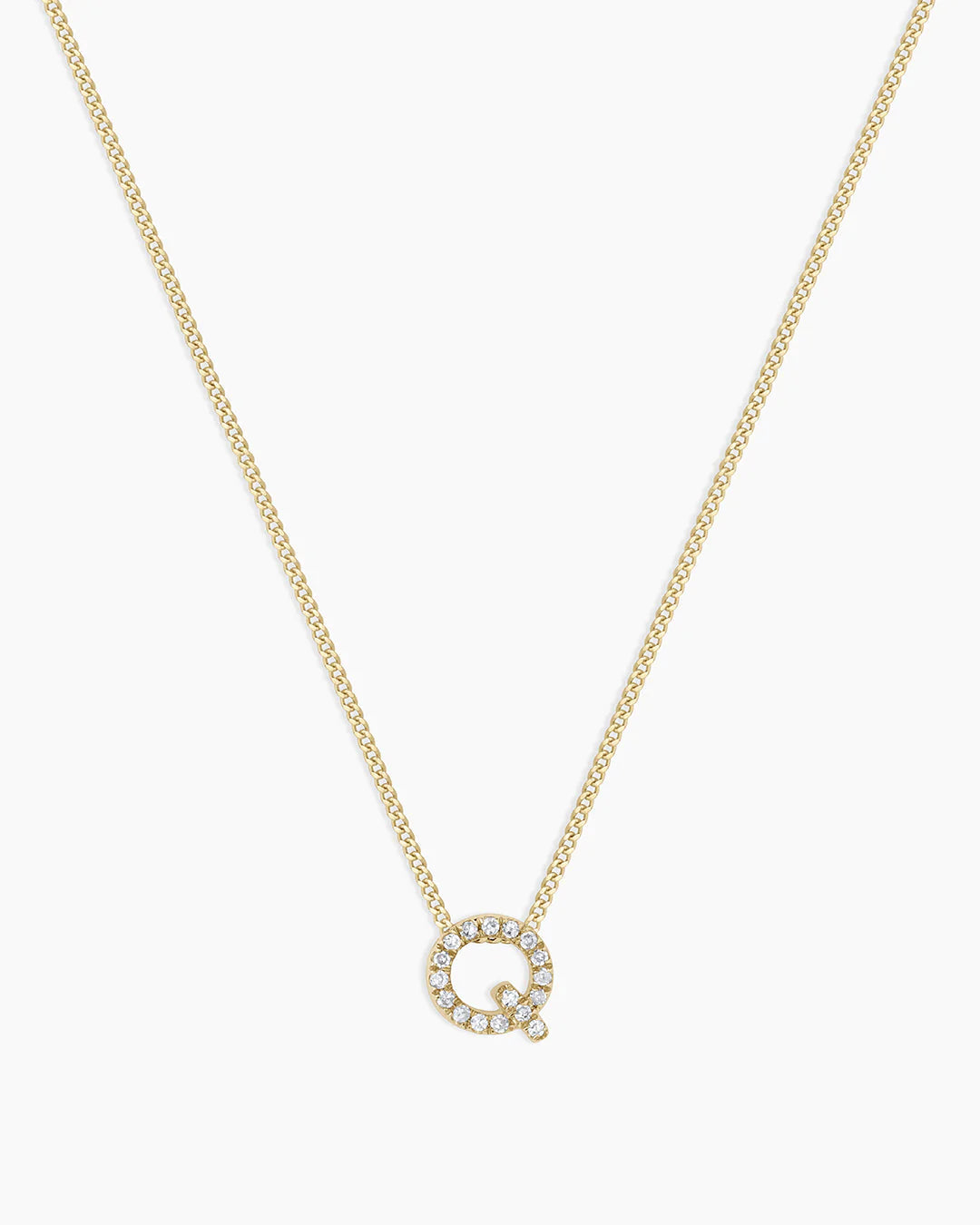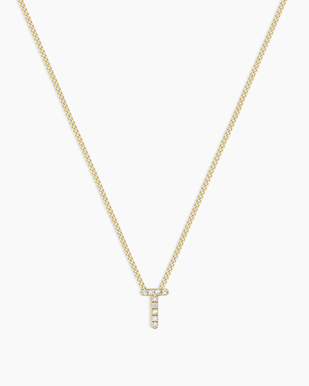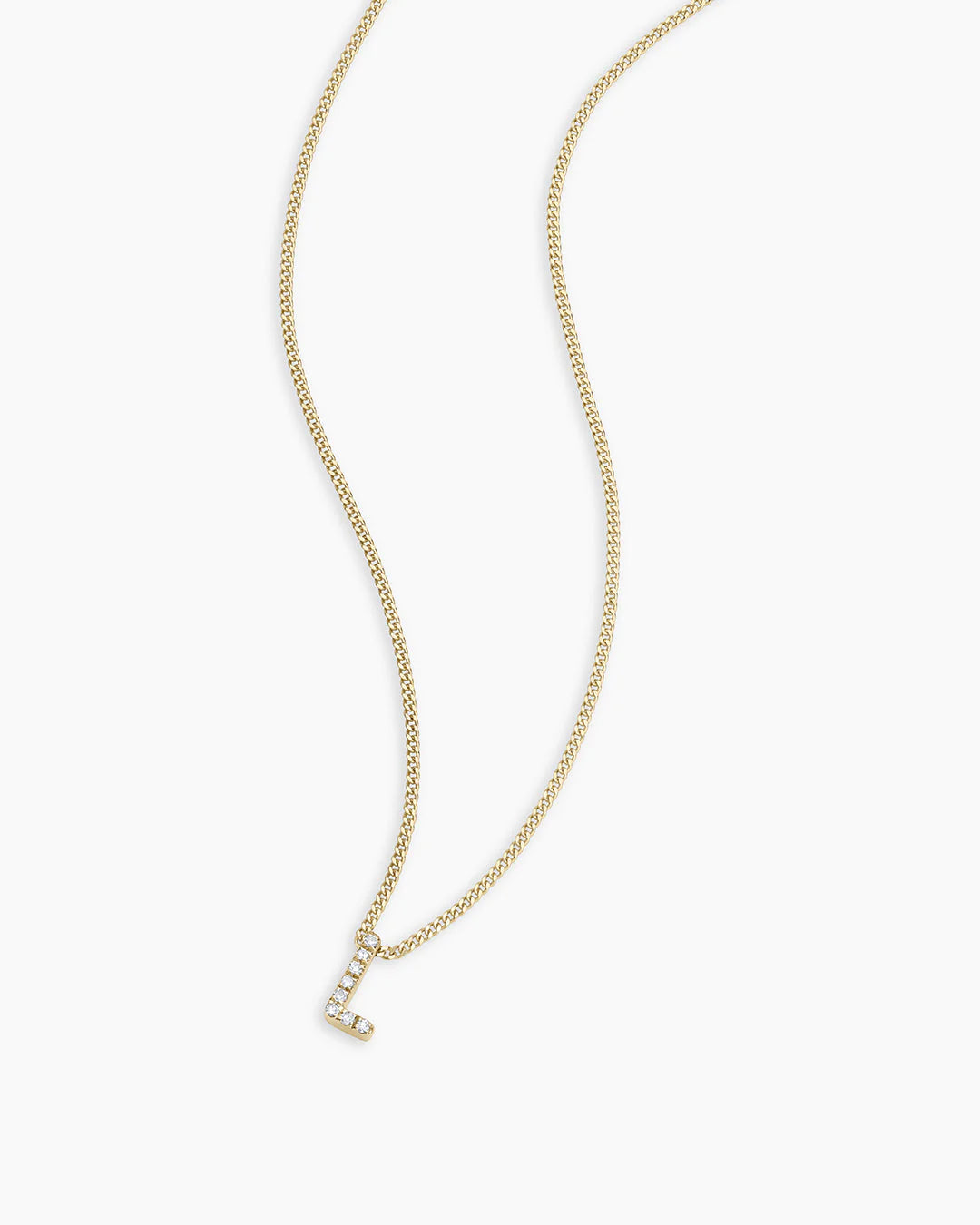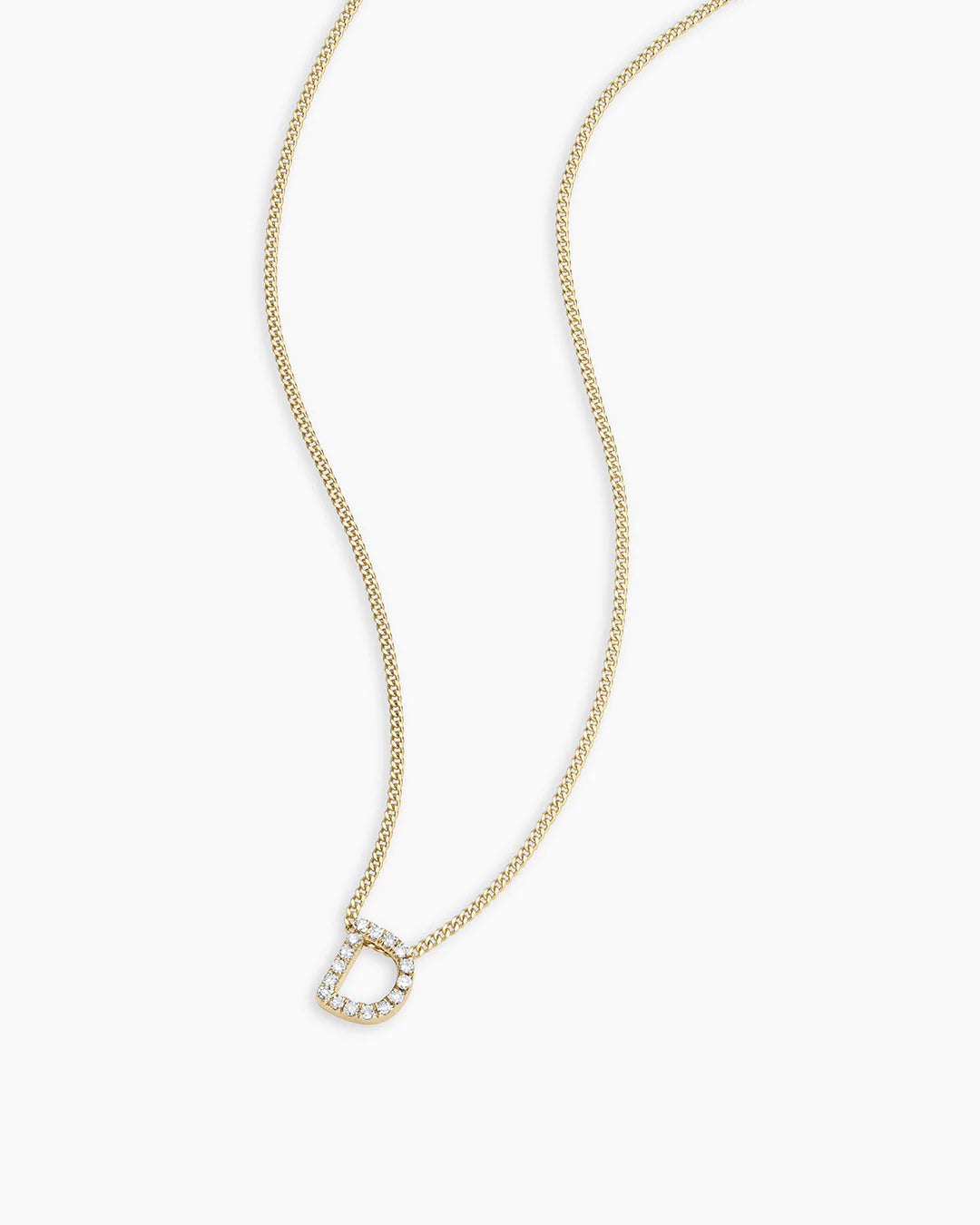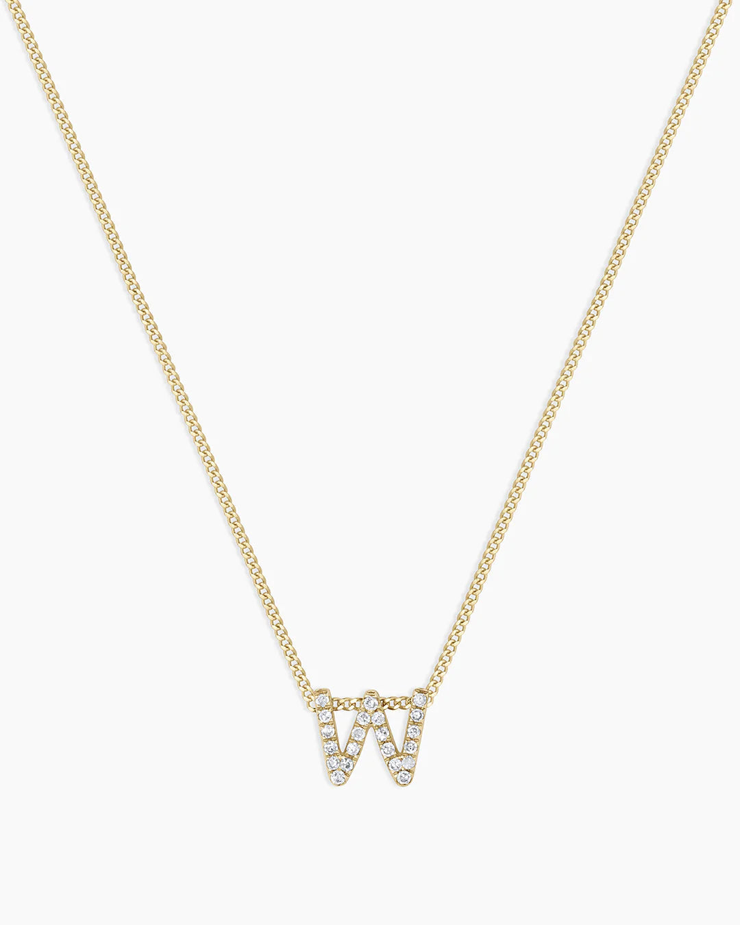 A diamond and solid gold alphabet necklace is the perfect way to personalize your everyday layer. Whether you choose your initial or a loved one's, this necklace is sure to add a meaningful touch to your look. We love this adjustable, diamond necklace paired with solid gold chains and more diamonds.