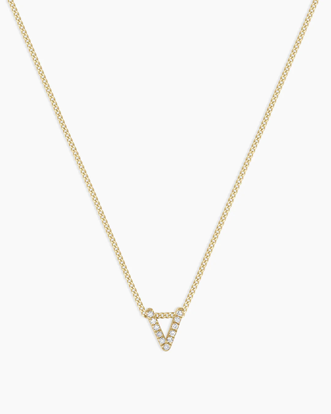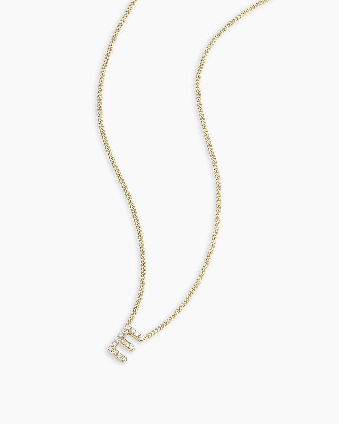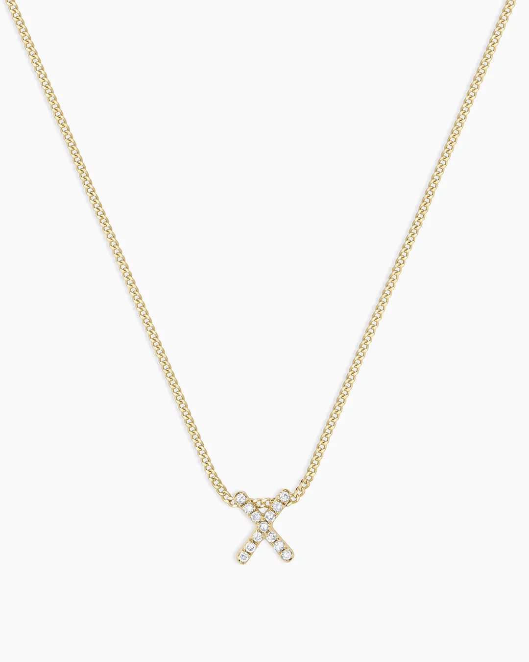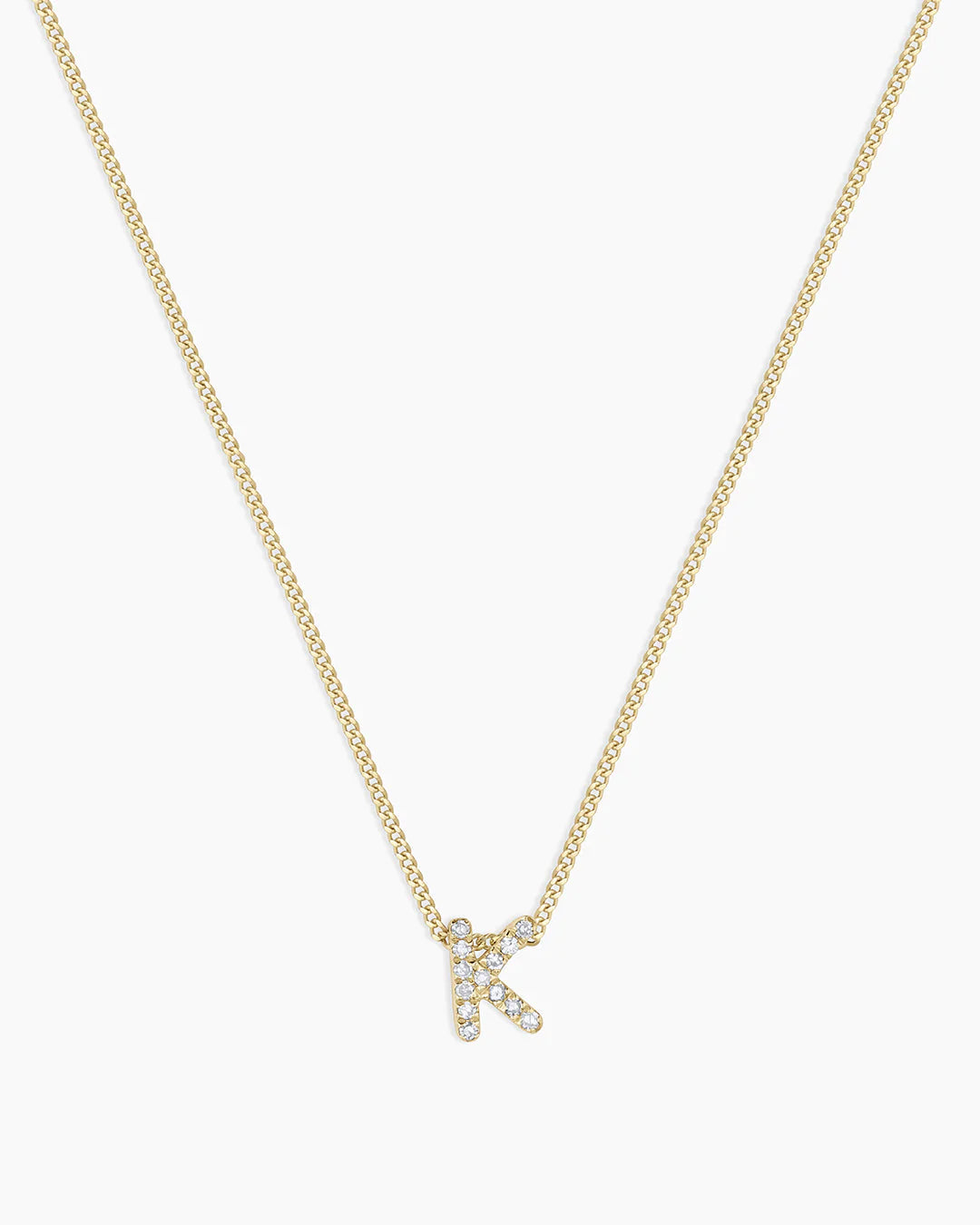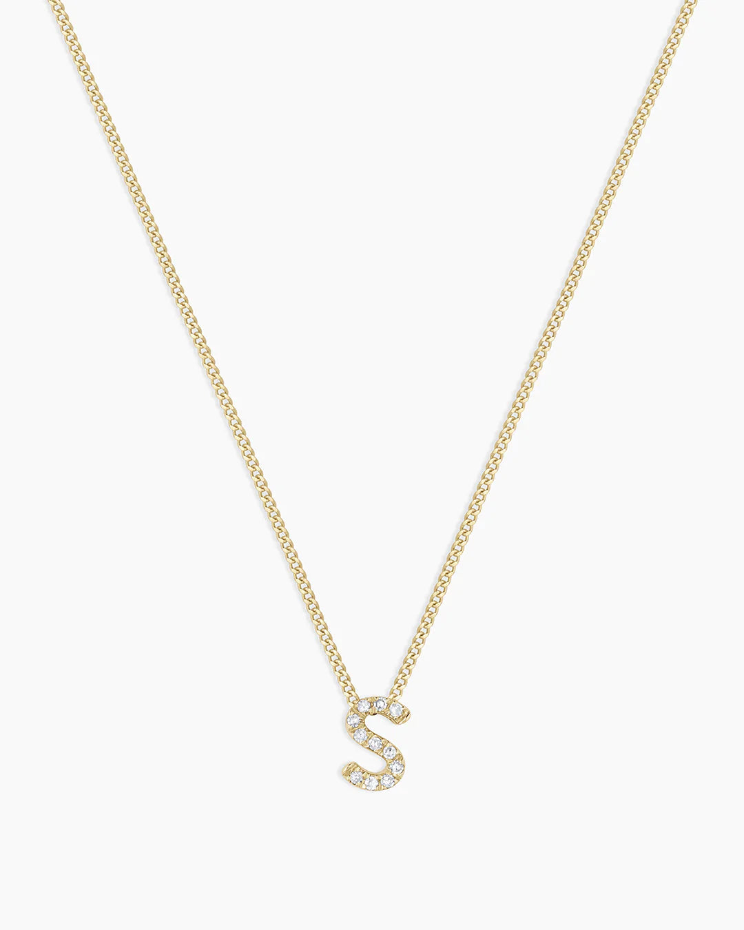 A diamond and solid gold alphabet necklace is the perfect way to personalize your everyday layer. Whether you choose your initial or a loved one's, this necklace is sure to add a meaningful touch to your look. We love this adjustable, diamond necklace paired with solid gold chains and more diamonds.