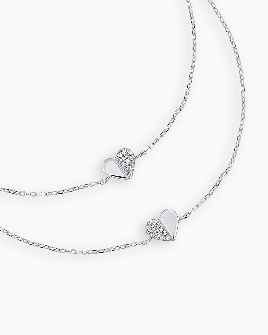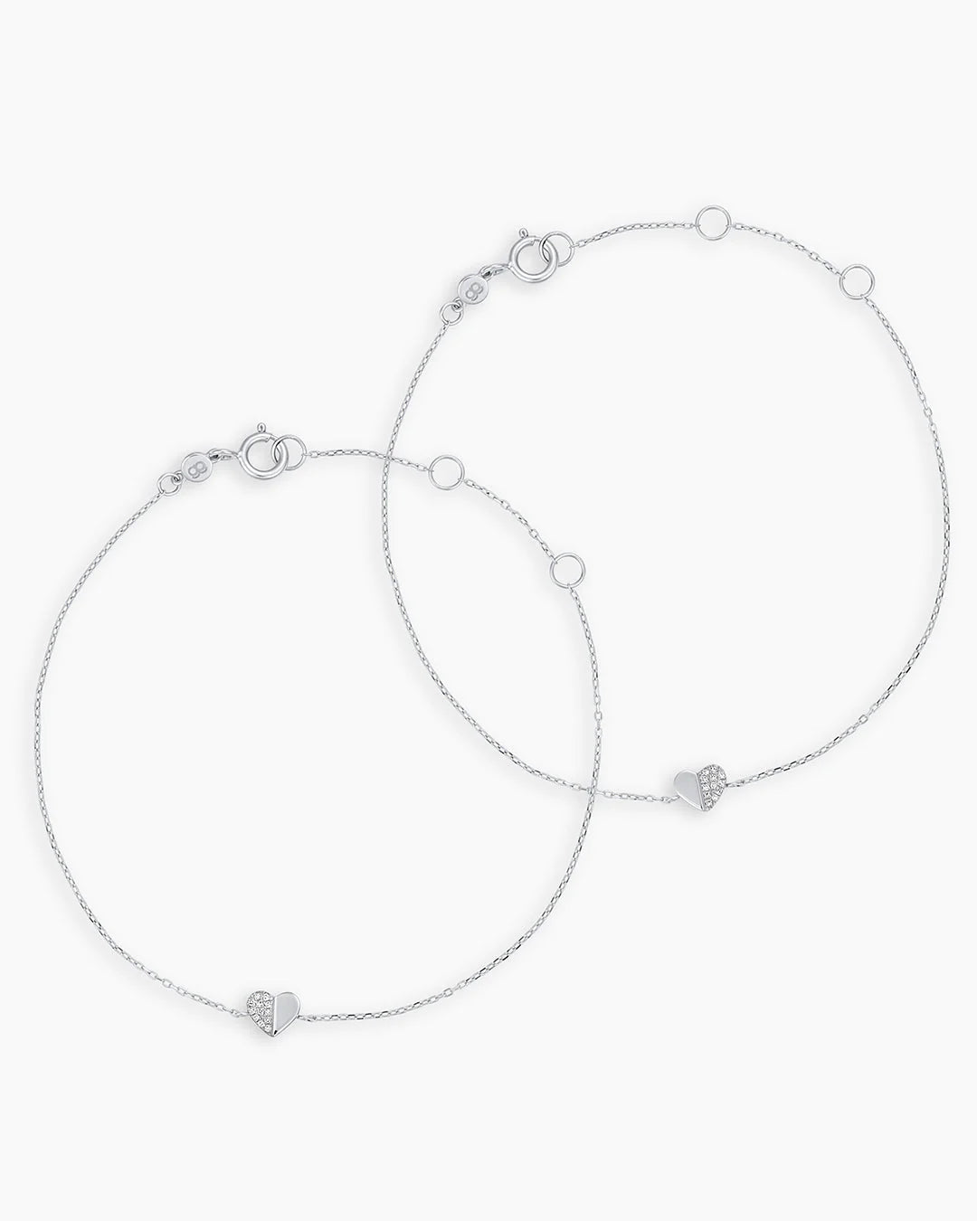 Better together. There’s a lot to love about these cute matching hearts. Featuring two diamond hearts with designs that mirror each other, this meaningful bracelet set is a must have in your (and a friend’s) stack.