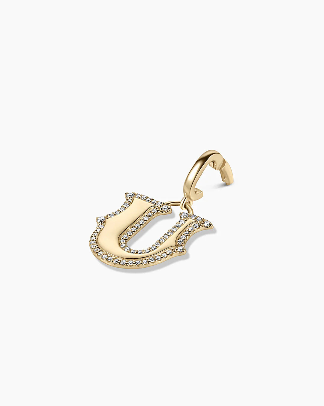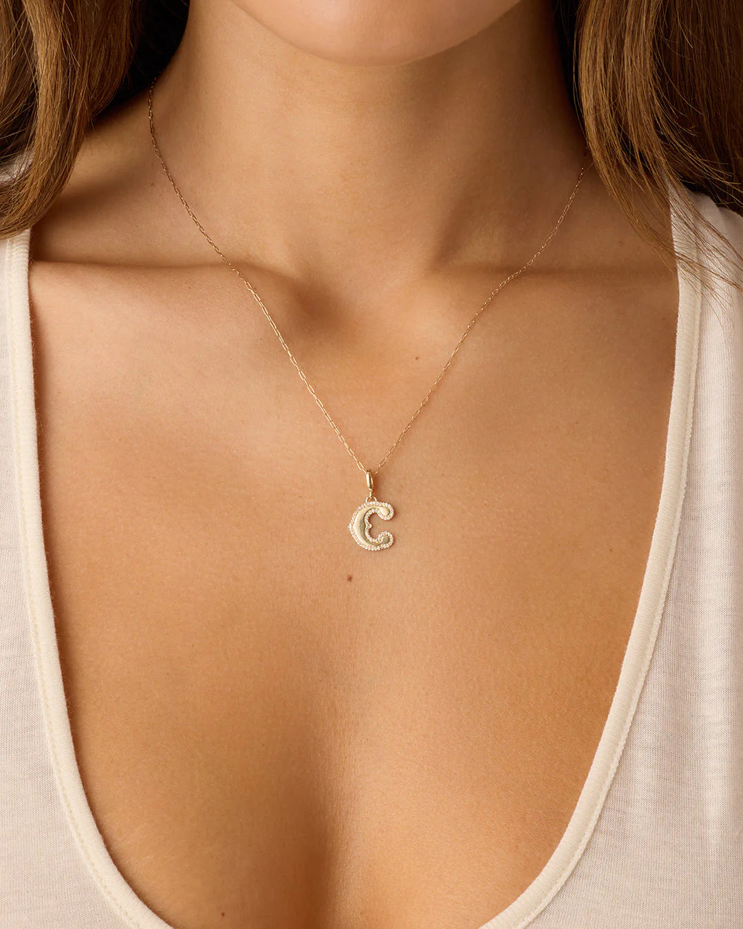 This solid gold and diamond initial charm takes self-expression to the next level, with its oversized letter in a fun, eye-catching font. Thanks to its special hinge closure, you can attach it to a variety of your favorite chain necklaces - a few of our faves are the 14k Gold Parker Micro Mini Necklace or 14k Gold Basic Chain Necklace.