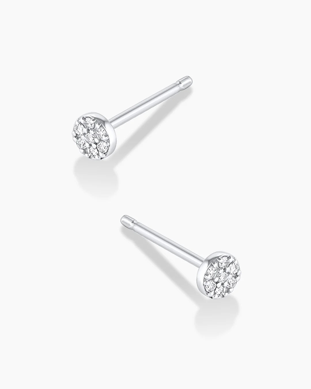 Timelessly chic, these Diamond Pavé Studs are crafted with genuine 14k solid gold. These earrings are enhanced with the natural brilliance of pavé diamonds for an eye-catching look. Perfect for any occasion.