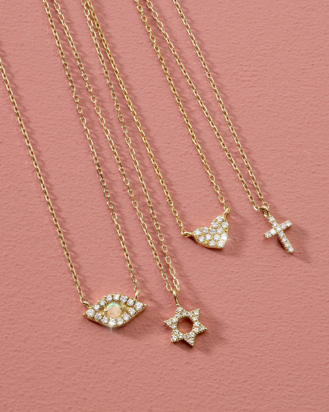 This understated diamond Star of David necklace can beautifully add to any outfit with its subtle shimmer. To enhance your look, layer your dainty diamond necklace with other chains or add a pop of color with a strand of beautiful gemstones.