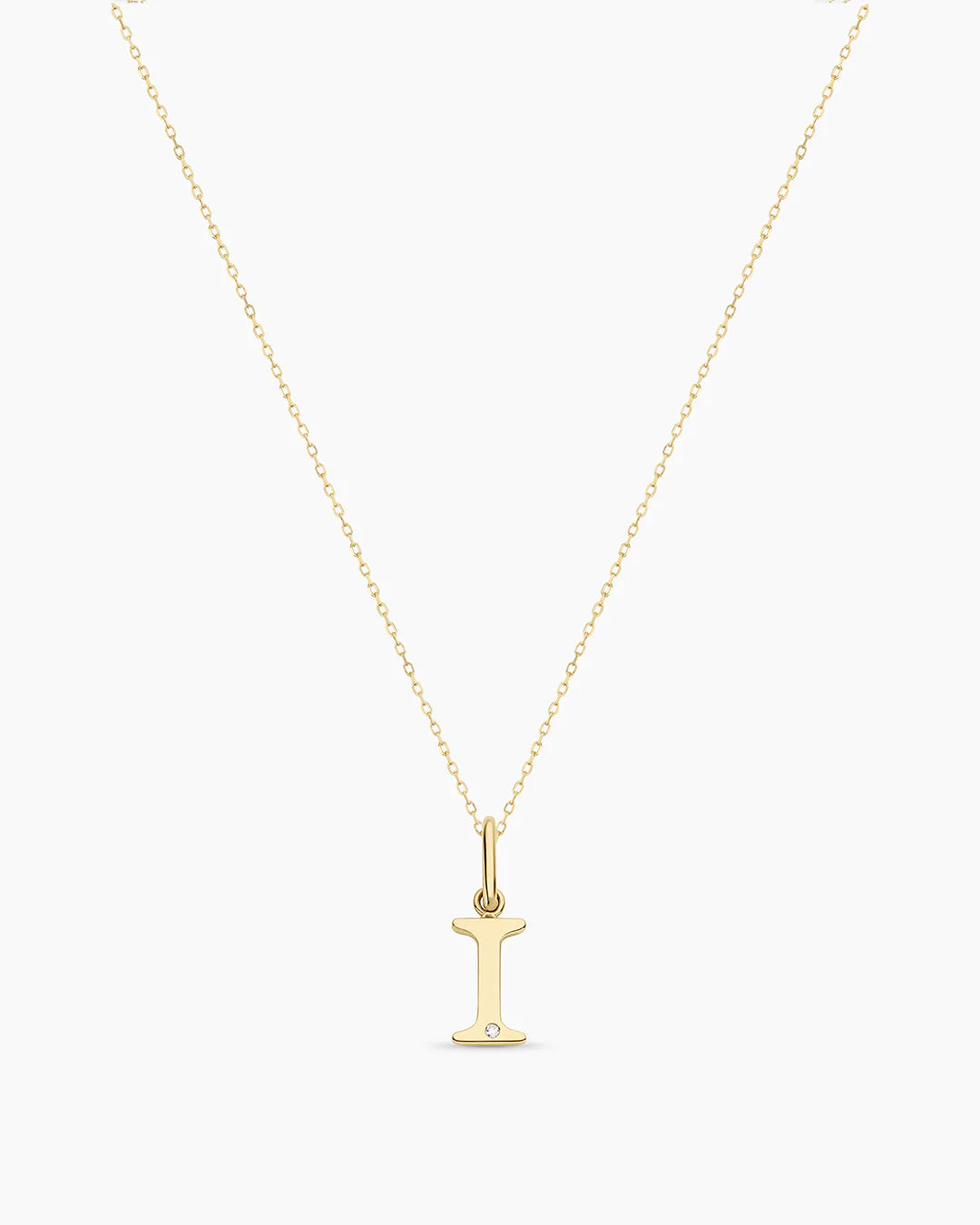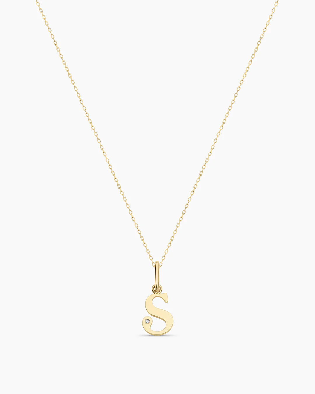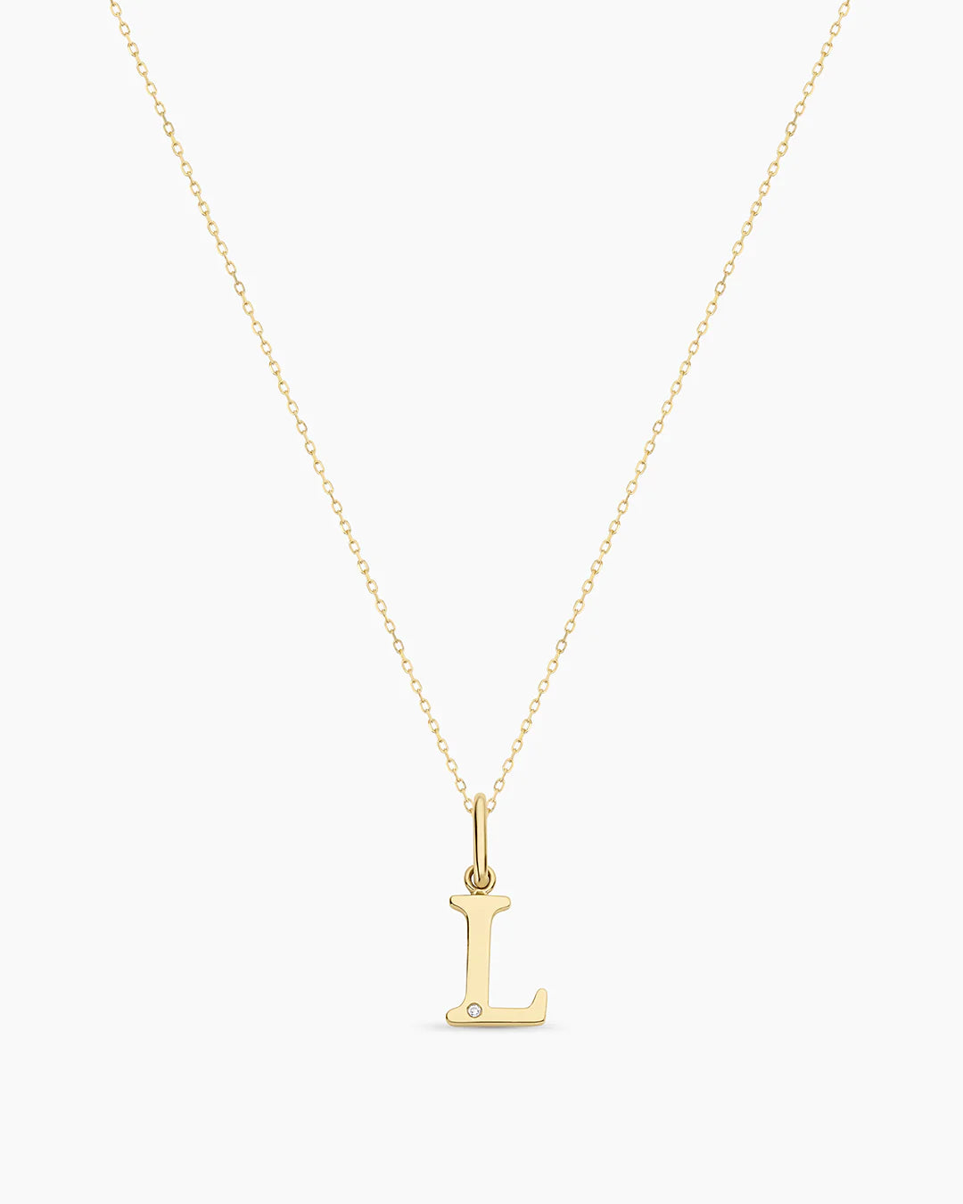 Personalize your layer with the Diamond Vintage Alphabet Charm Necklace. Crafted from 14k solid gold, this unique layer features a timeless alphabet charm on a solid gold chain - we love wearing ours with more solid gold chains for a fully layered look.
