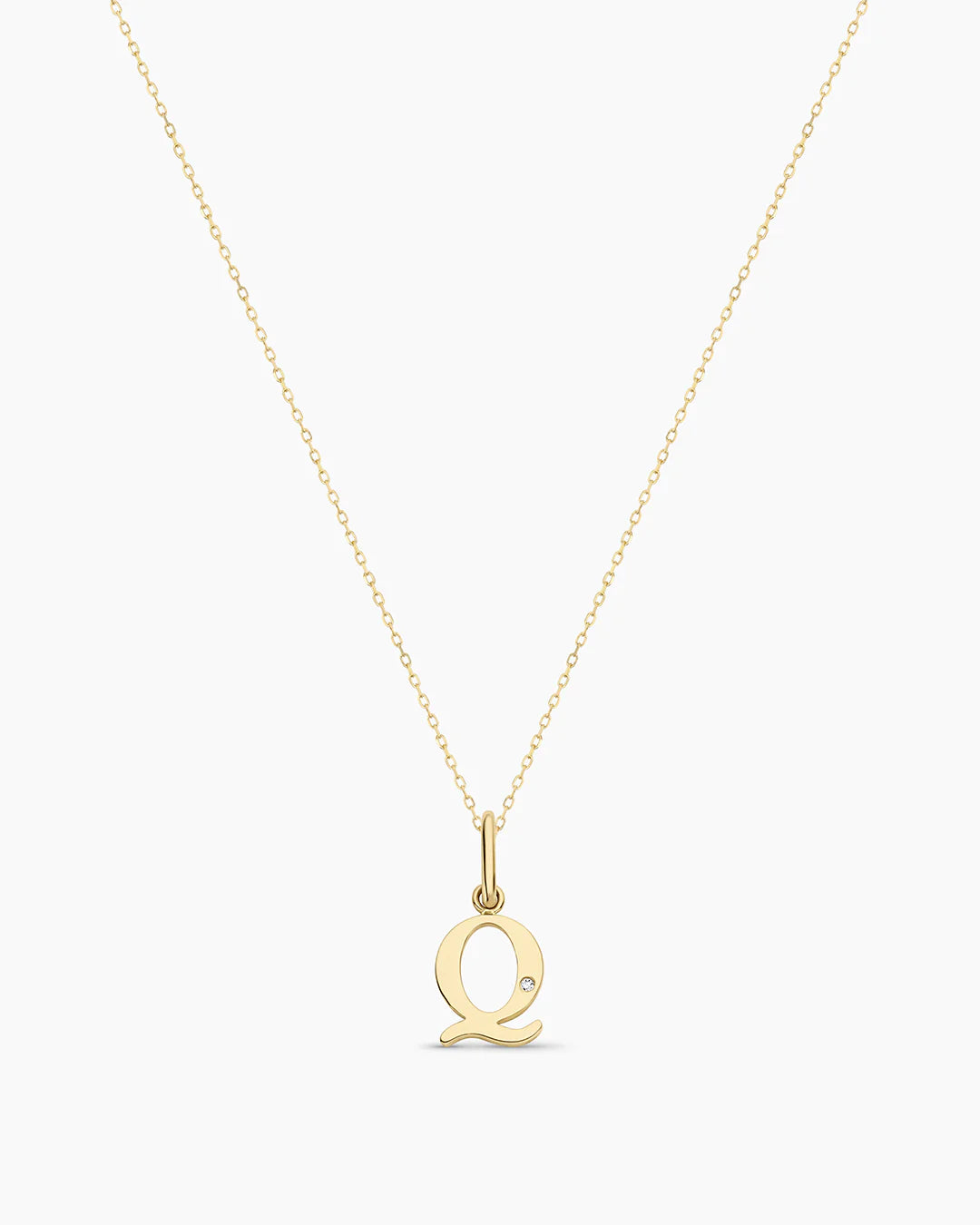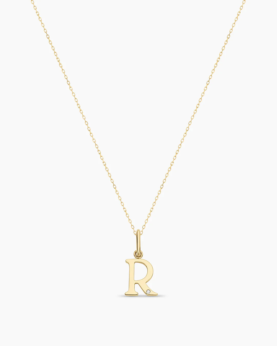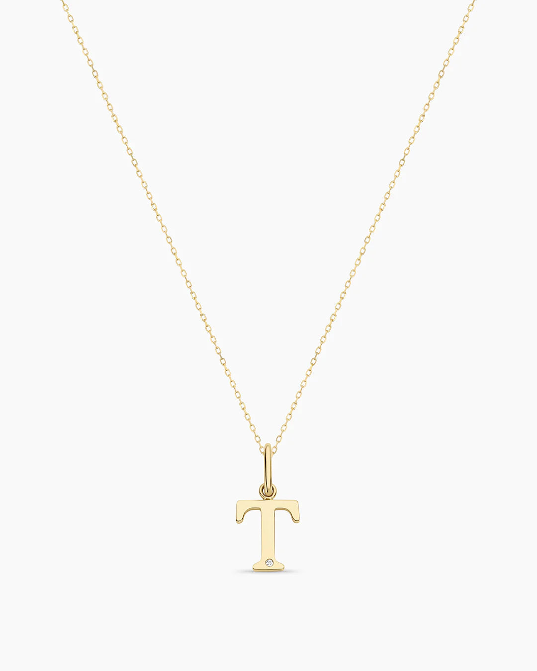 Personalize your layer with the Diamond Vintage Alphabet Charm Necklace. Crafted from 14k solid gold, this unique layer features a timeless alphabet charm on a solid gold chain - we love wearing ours with more solid gold chains for a fully layered look.