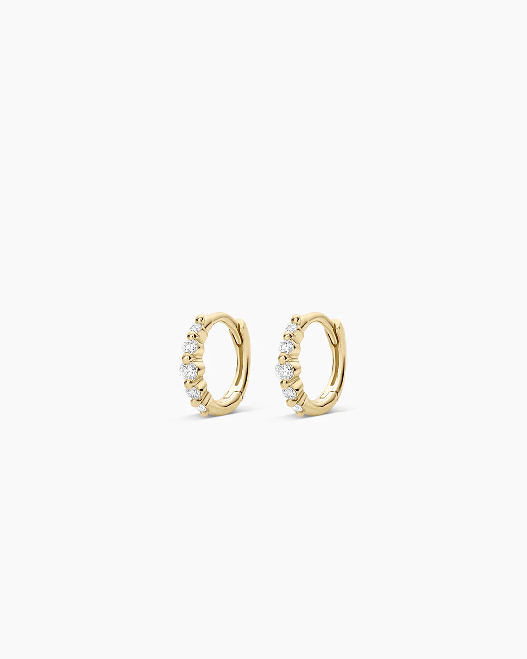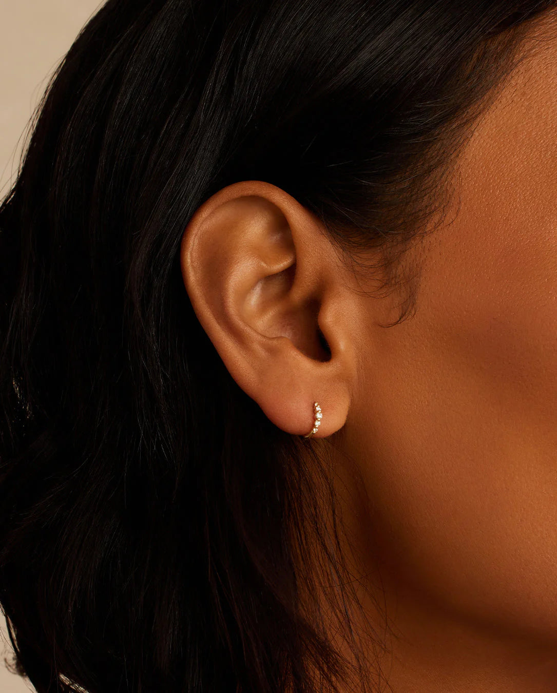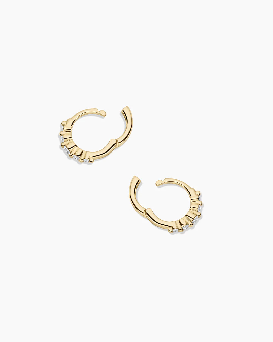 Designed for any occasion, the Elle Diamond Row Huggies are perfect in first, second, or third piercings. The sparkling row of diamonds adds a subtle yet statement shine, making it the perfect everyday earring choice and a must-have in your jewelry collection.