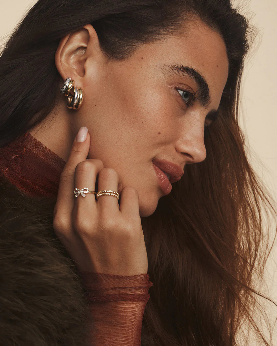 WIth a mix of classic plated gold and shimmering cubic zirconias, these stacked huggies give you the best of both worlds. Their bold silhouette makes them perfect for wearing solo but we prefer them stacked--make a statement by styling them with other chunky hoops and huggies.