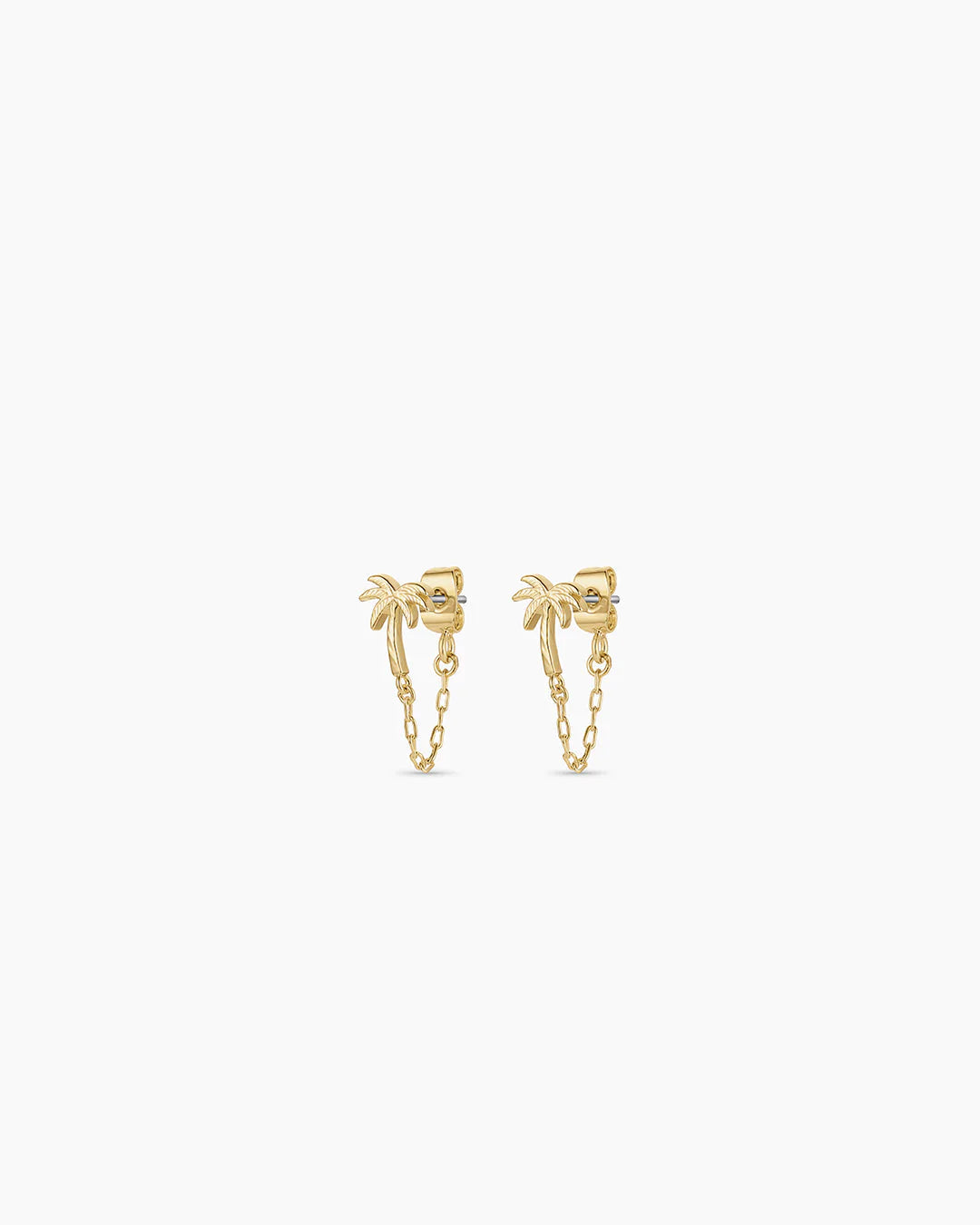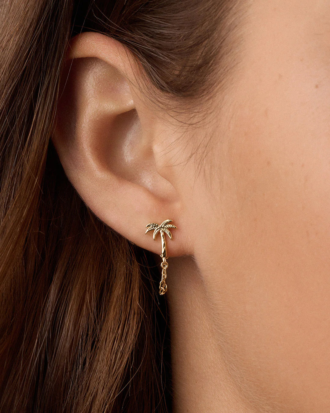 Inspired by a coastal getaway, these 18k gold plated palm tree huggie earrings are meant to flow from laid-back beach days to chic dinner moments.