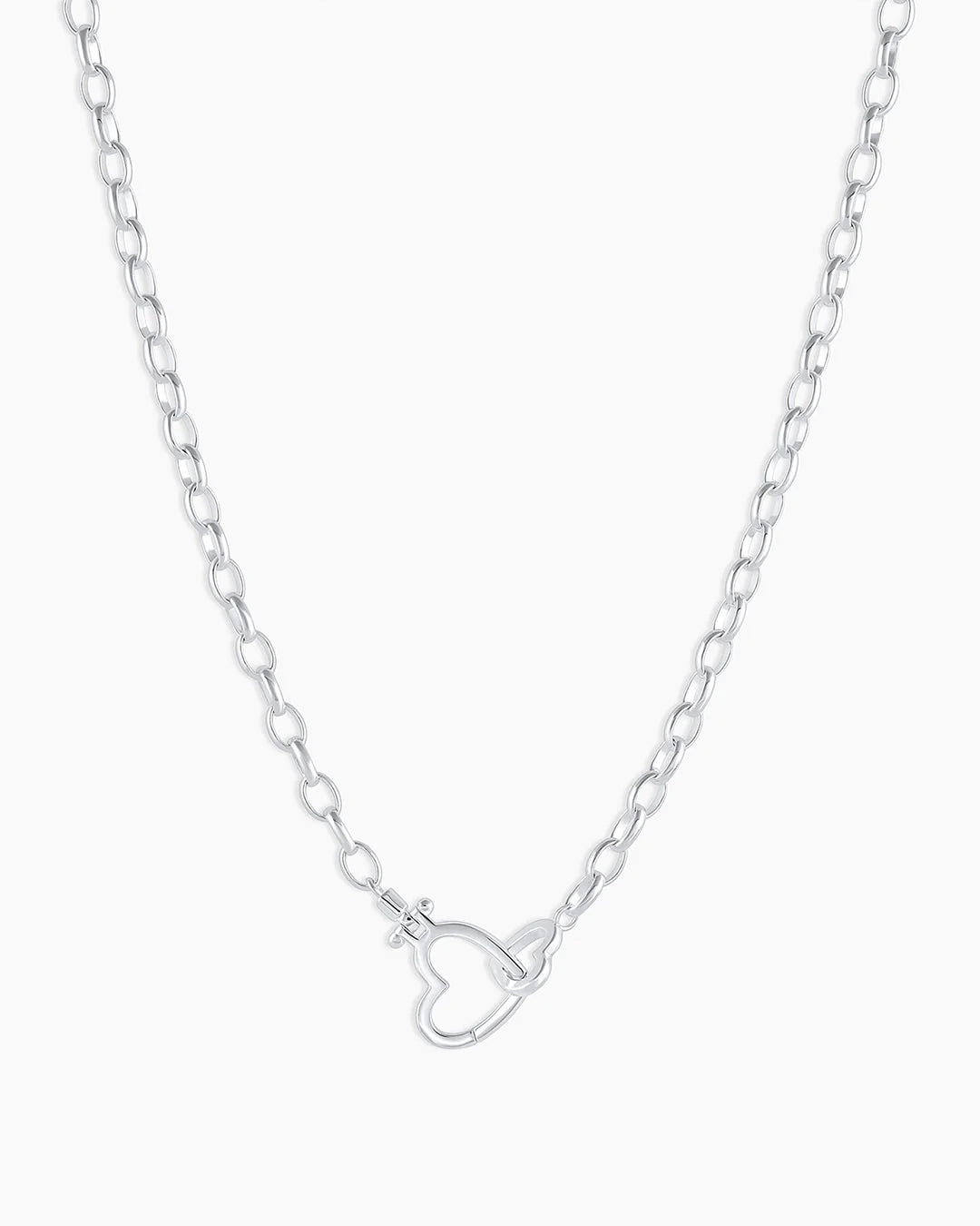 Add a hint of romance to your everyday look with the gold plated Parker Heart Necklace. This beautiful necklace features a heart hinge closure, which adds a little love to your layered necklaces.