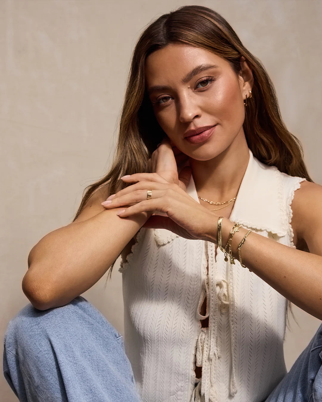 The gold plated Parker Huggies offer a sleek and retro-inspired style. Perfect in first piercings, these elongated huggies offer a high-shine finish and add a touch of glamour to any look.