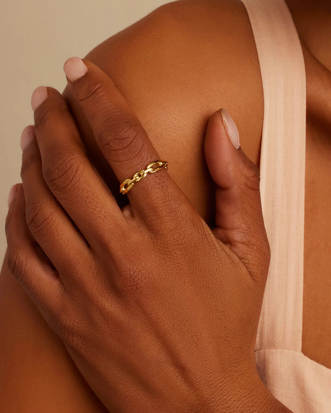 The Parker Link Ring adds sophistication to any look with its modern-style band. Crafted with a gold plated finish, this timeless piece is perfect worn solo or stacked alongside your favorite ring stack.