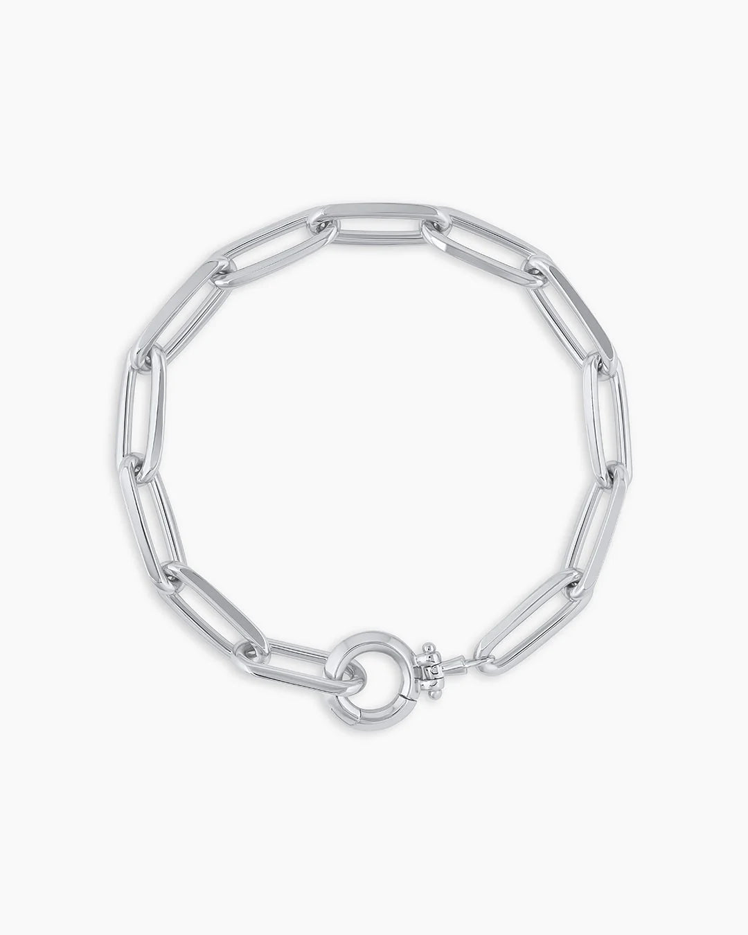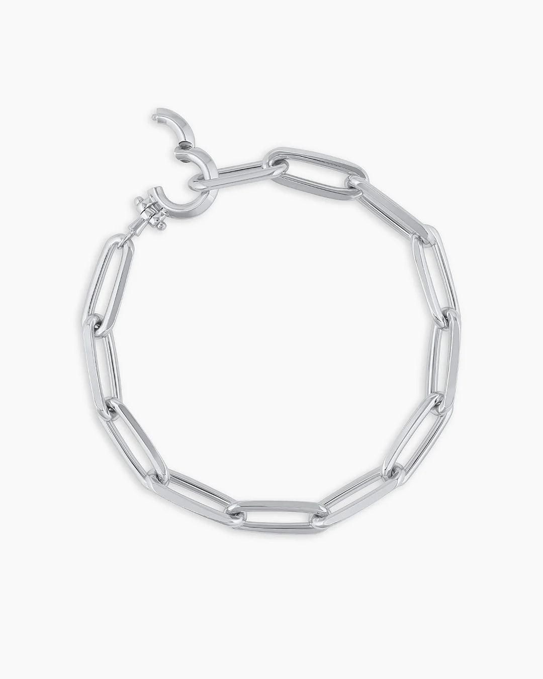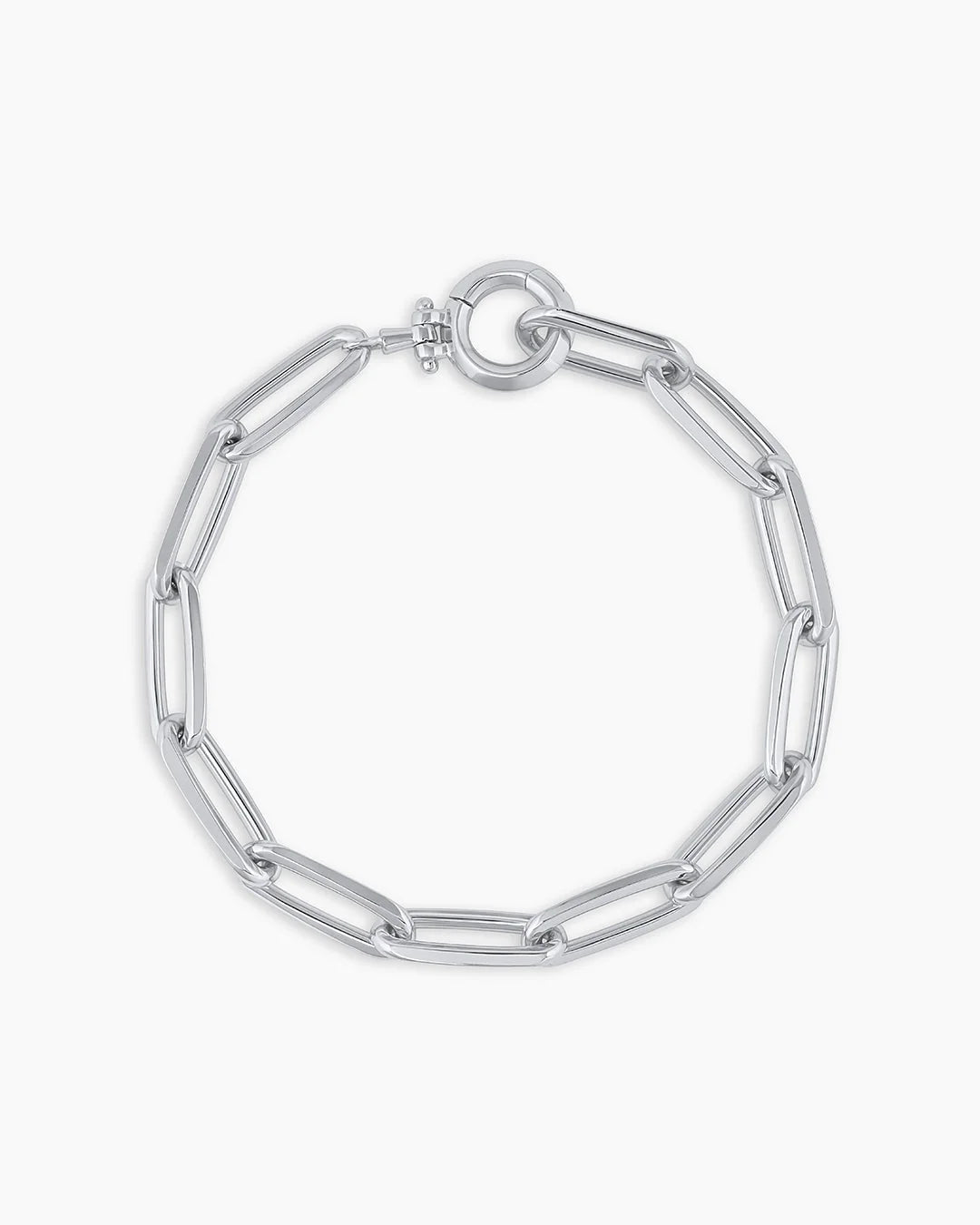 Achieve a cool look with the Parker XL Bracelet. This gorgeous gold plated chain bracelet features an edgy, oversized paperclip chain design that is perfect for any occasion. To wear, stack alongside other gold or diamond bracelets. More is more!
