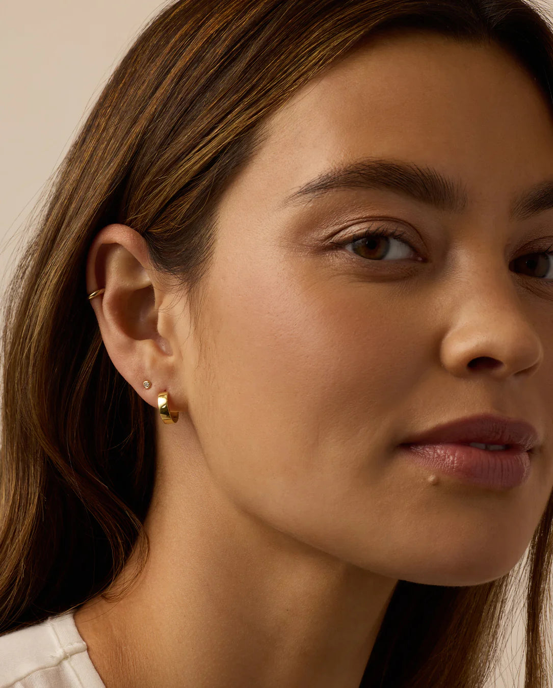 This classic gold huggie hoop is a timeless addition to any jewelry collection. Perfect for stacking or to wear alone, this gold plated huggie looks great stacked with other huggie hoop earrings and studs.