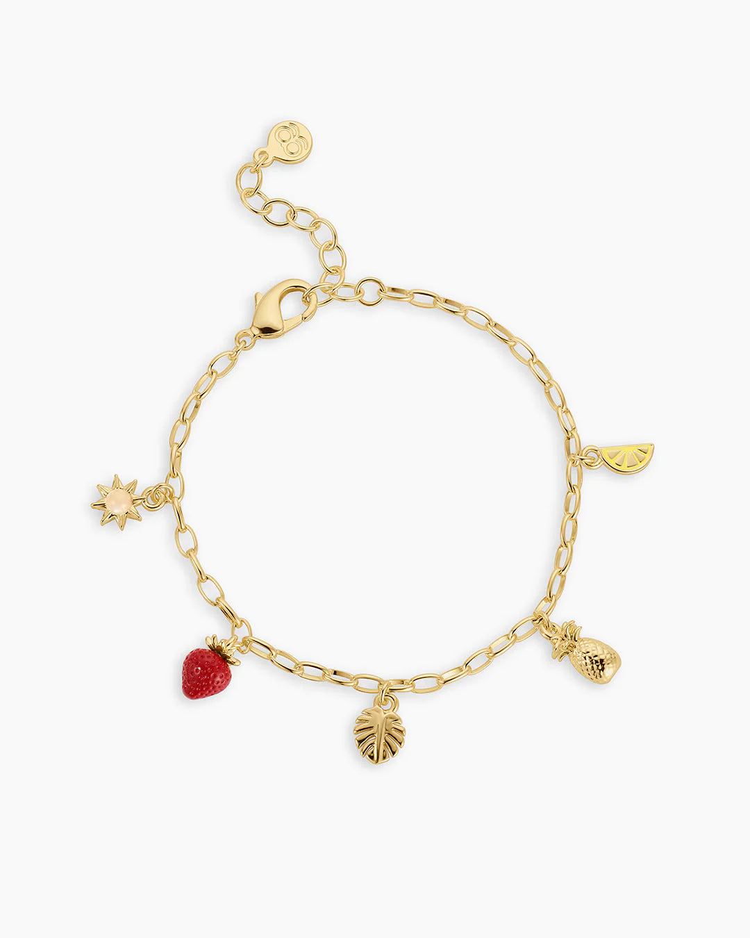 This memorabilia-inspired charm bracelet features designs that evoke nostalgia of a seaside escape—each one symbolizing memories of travel, adventure, sun-drenched days and the spirit of summer. From ocean-inspired charms to travel motifs, every piece in the Mini Charm Collection tells a unique story, making it the perfect keepsake for an unforgettable summer.