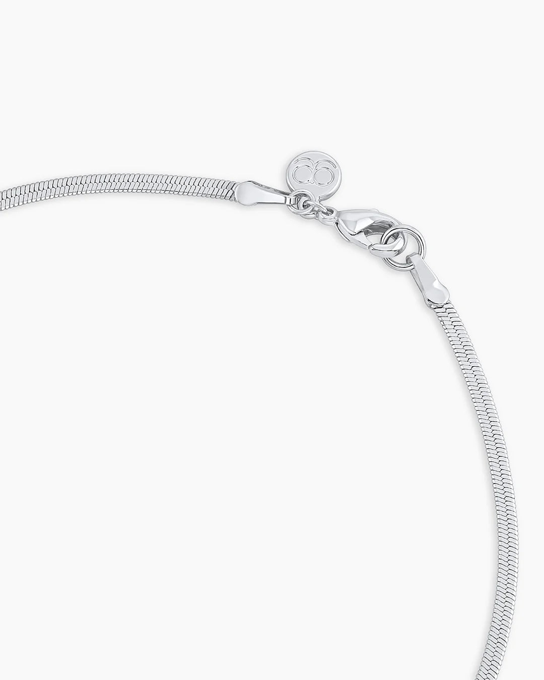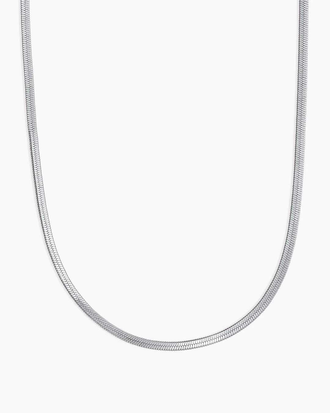 The Venice Mini Necklace is a stylish chain necklace that can be dressed up or down. Crafted with gold plated metal and featuring a timeless herringbone design, this necklace layers beautifully for any occasion. To create an effortless look, pair it with a simple dress or cardigan.