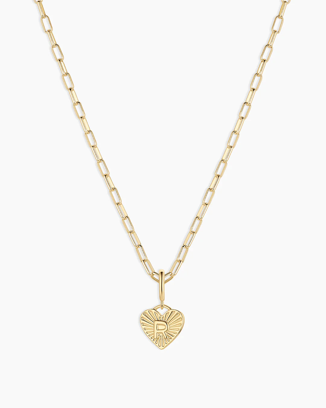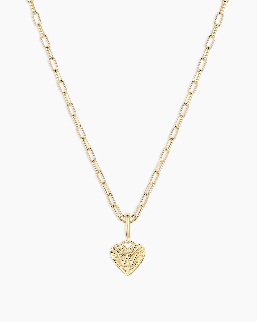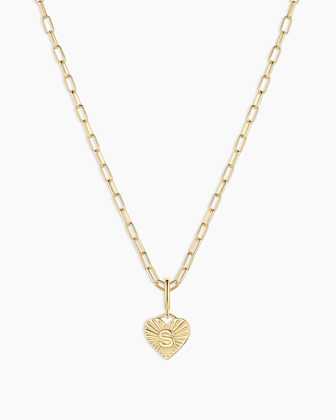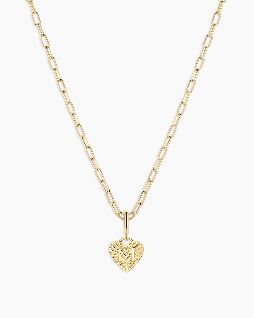 This delicate chain charm necklace is equal parts romantic and personal, featuring a classic heart silhouette with your initial (or someone else's, we won't ask). With gold dleicate chain links and vintage inspired charm, it's sweet, it's stylish and it goes with everything. PS this also makes a great gift.