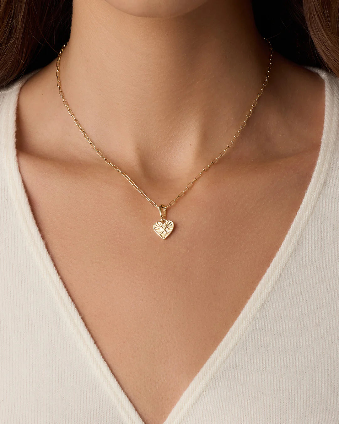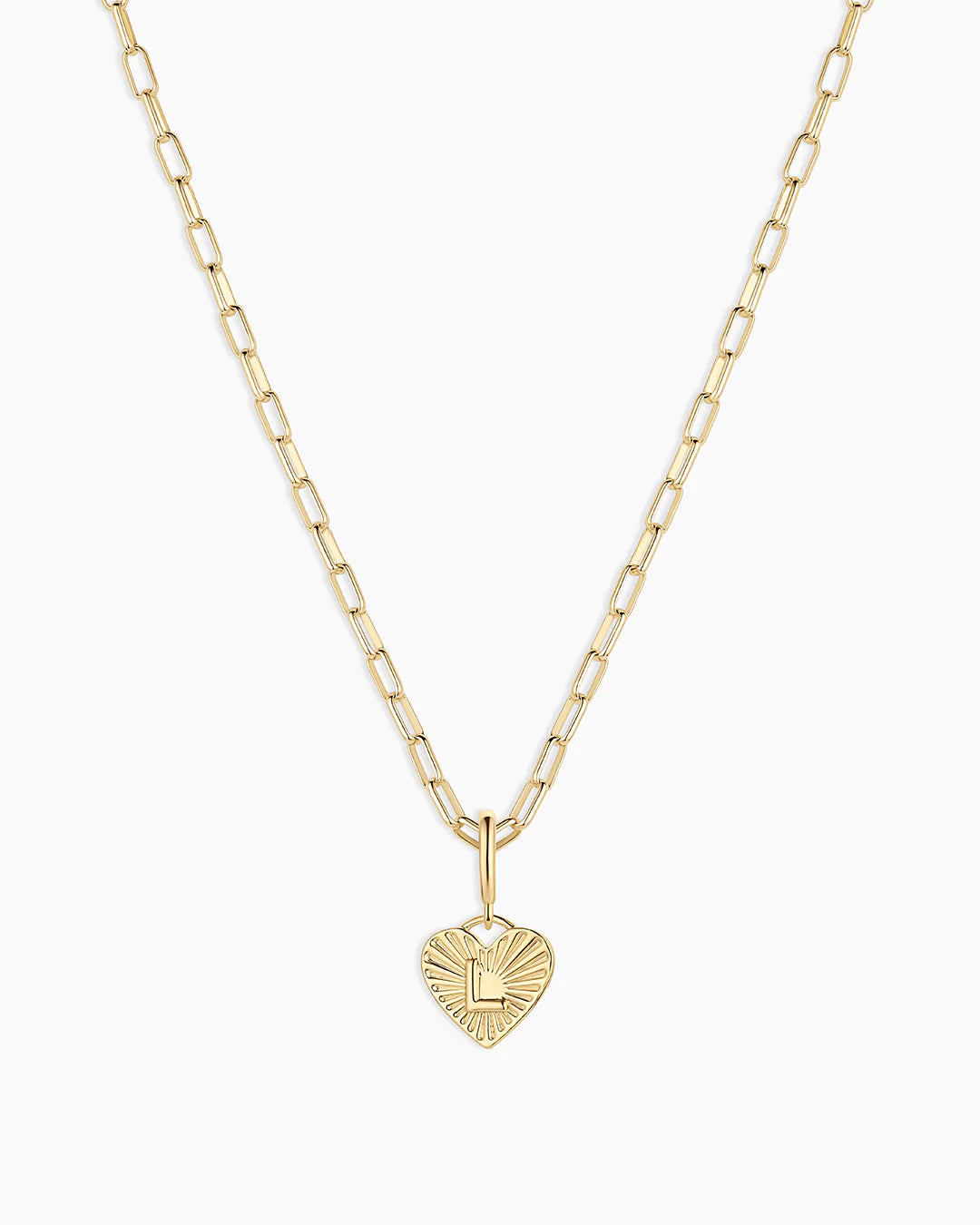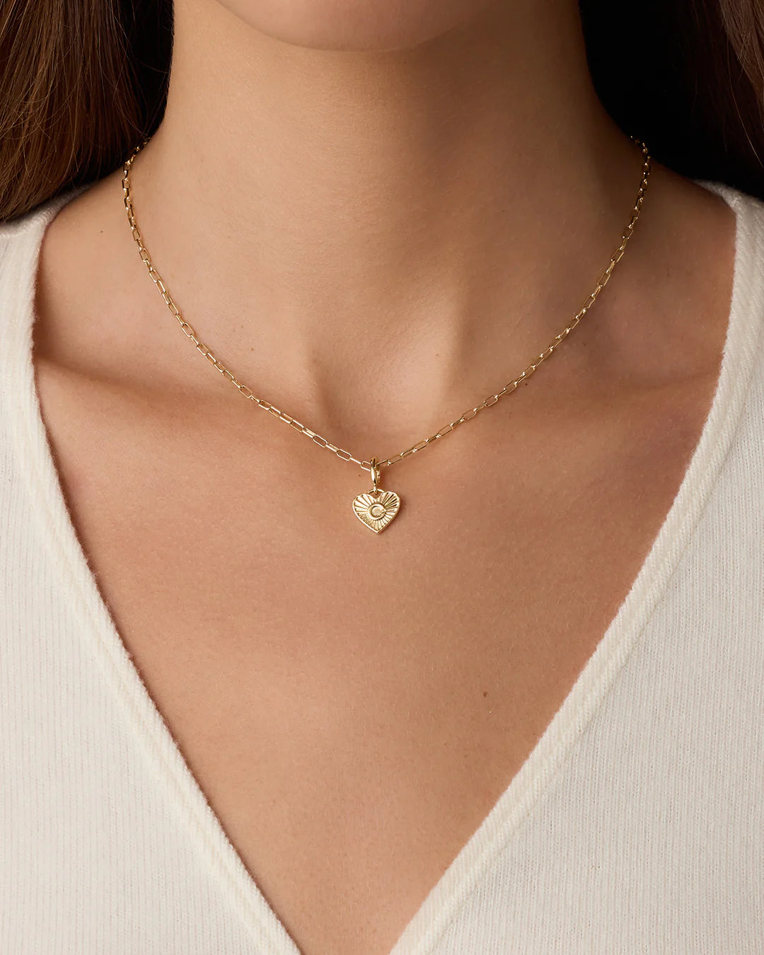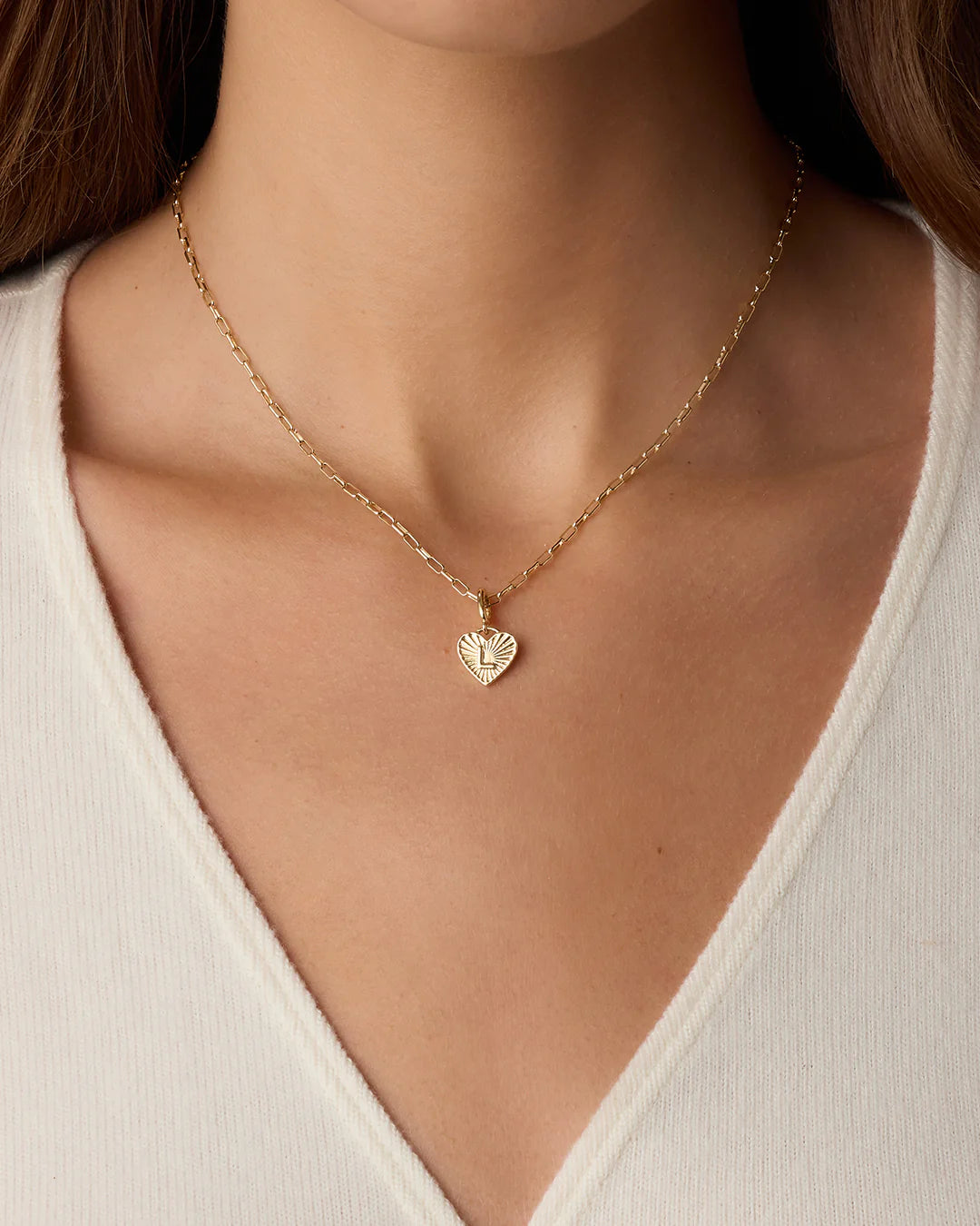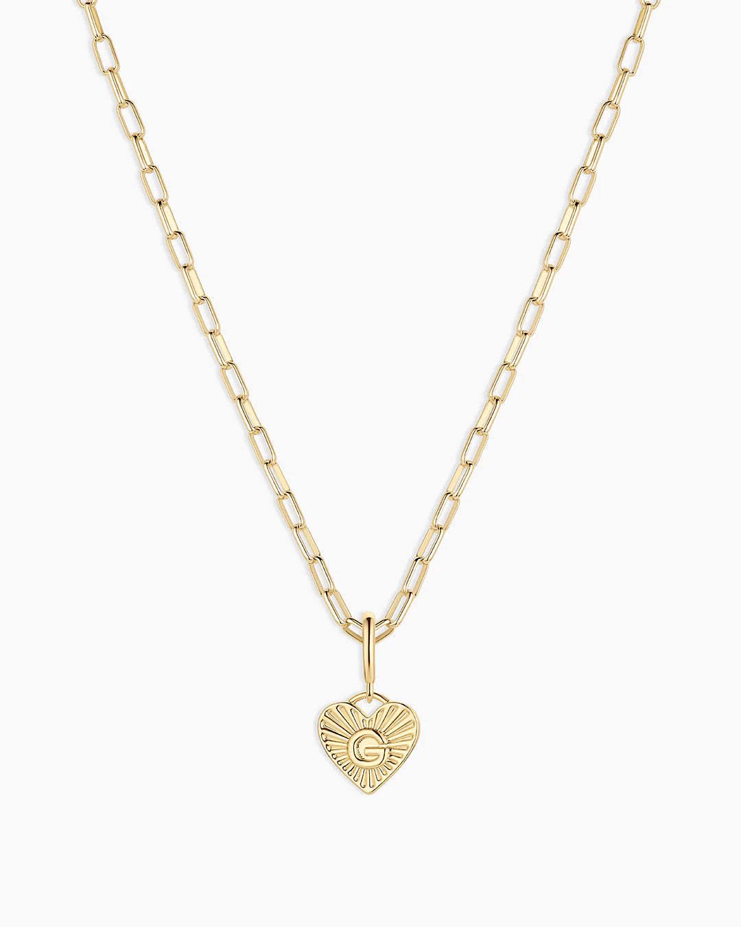 This delicate chain charm necklace is equal parts romantic and personal, featuring a classic heart silhouette with your initial (or someone else's, we won't ask). With gold dleicate chain links and vintage inspired charm, it's sweet, it's stylish and it goes with everything. PS this also makes a great gift.