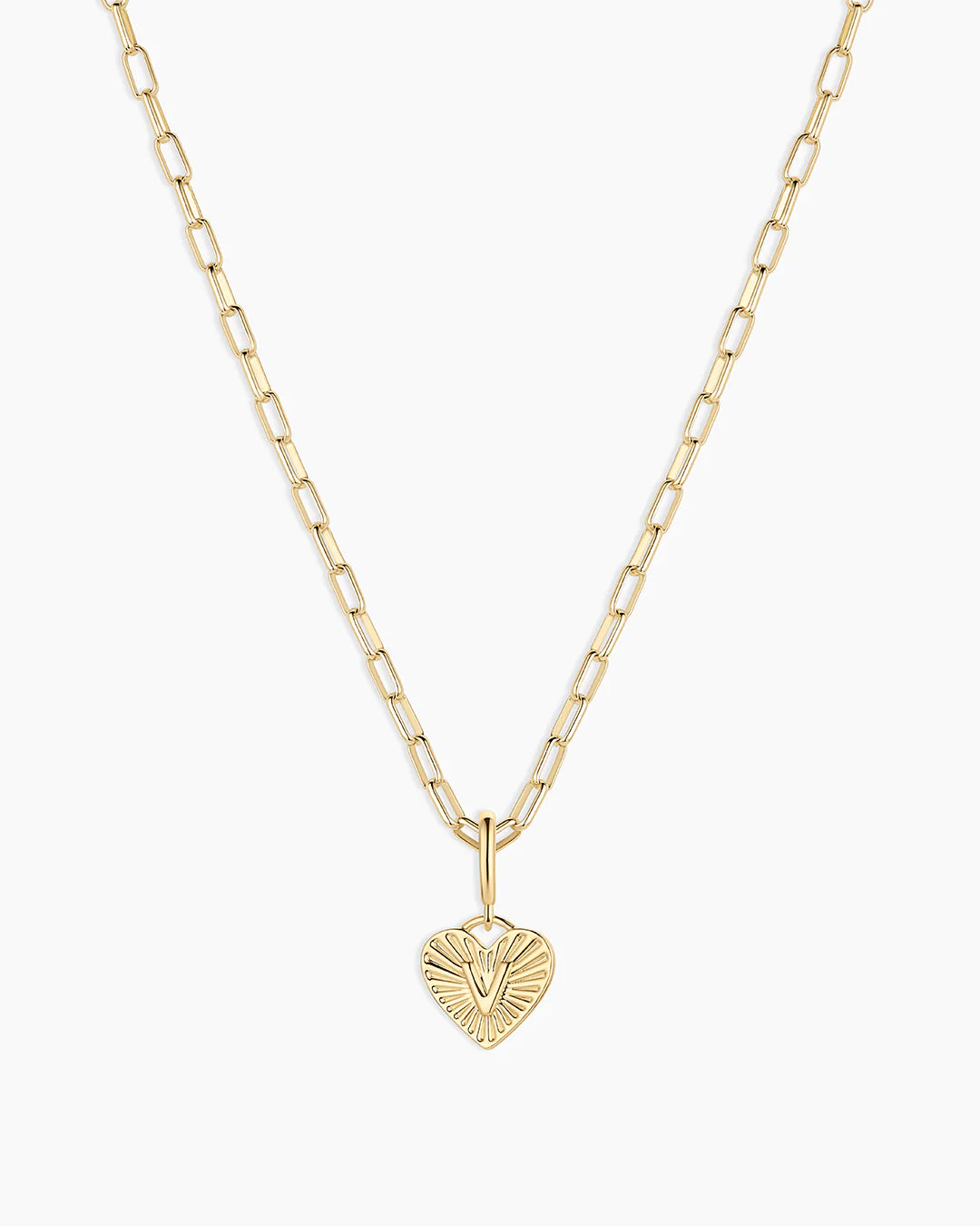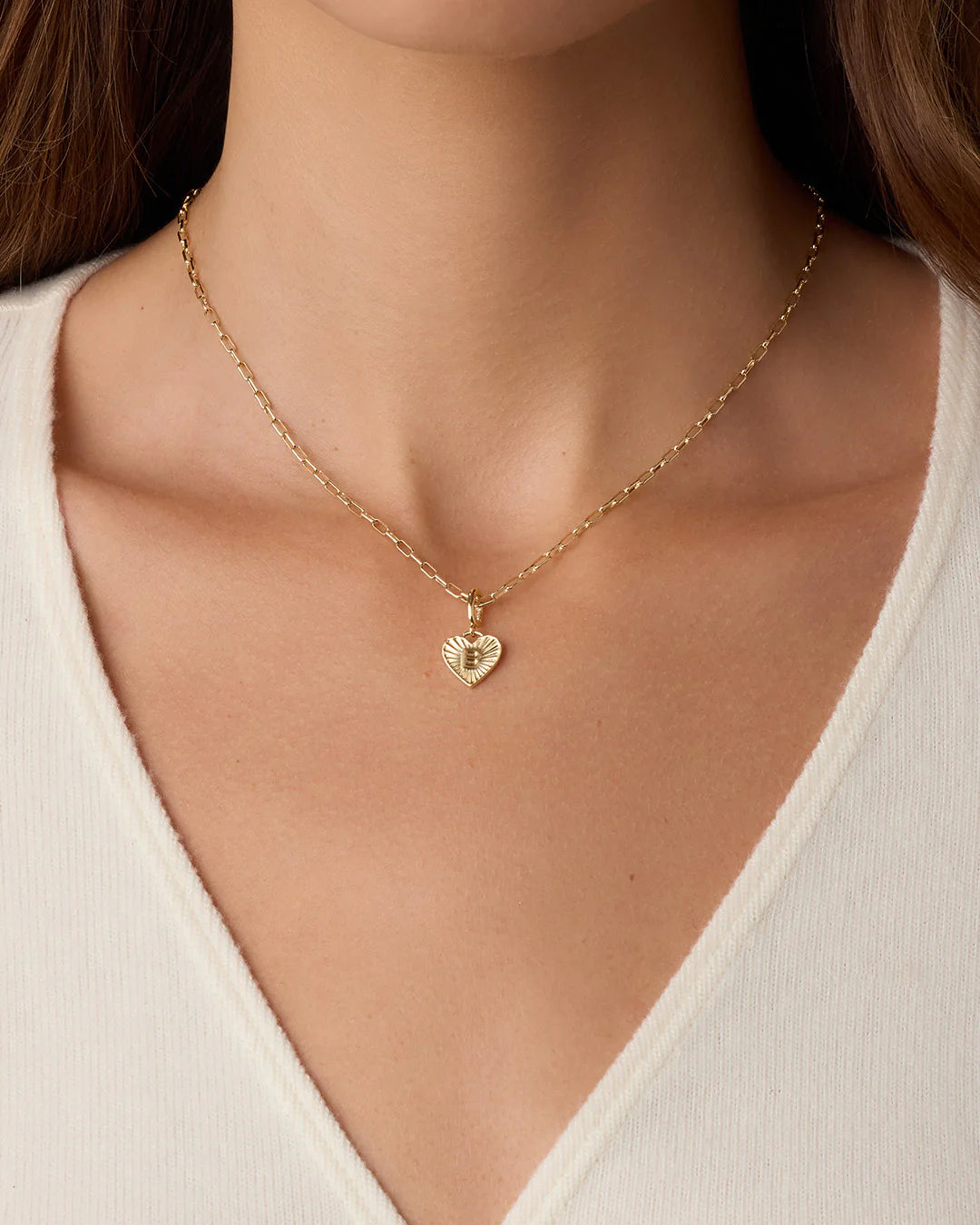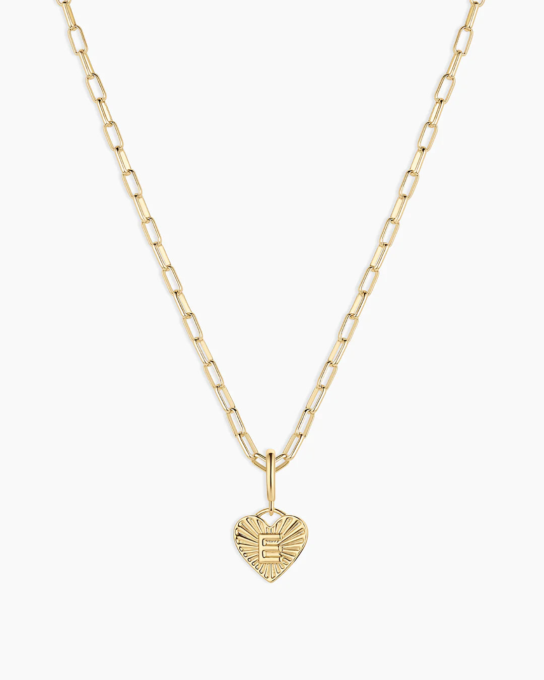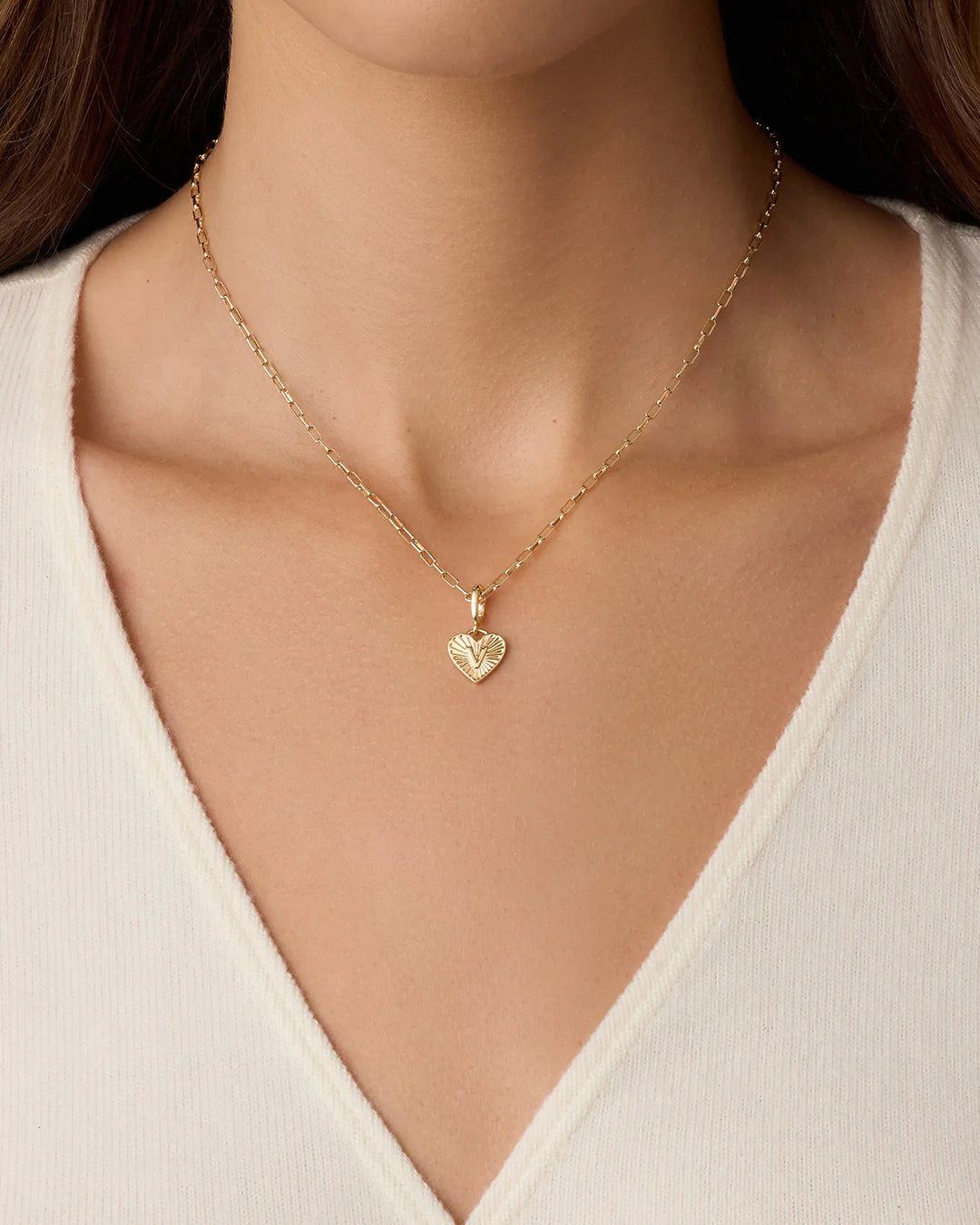 This delicate chain charm necklace is equal parts romantic and personal, featuring a classic heart silhouette with your initial (or someone else's, we won't ask). With gold dleicate chain links and vintage inspired charm, it's sweet, it's stylish and it goes with everything. PS this also makes a great gift.