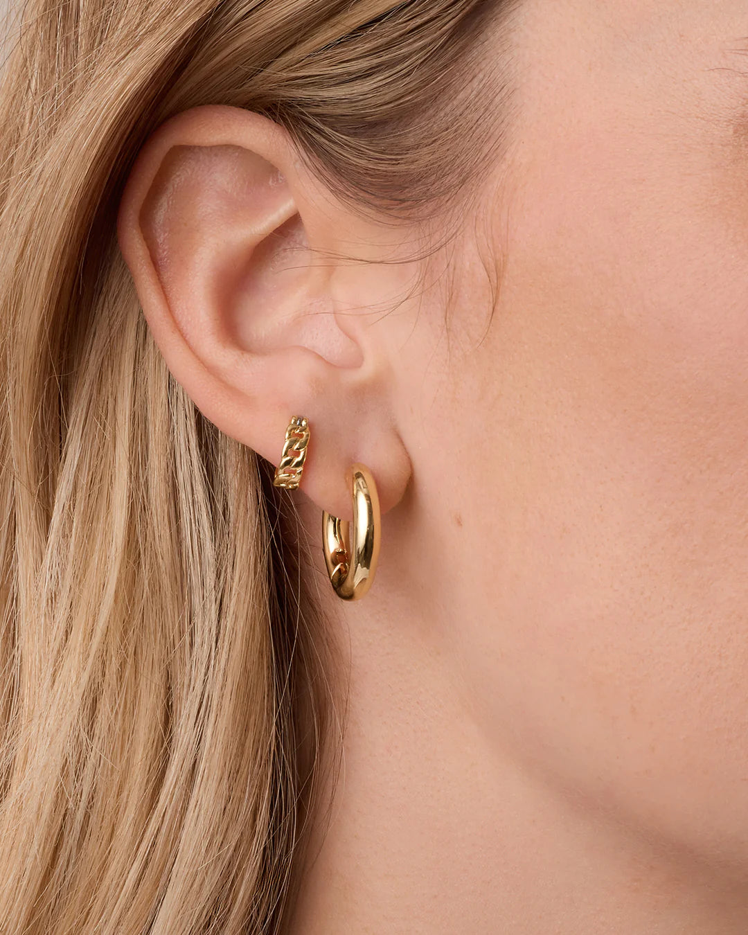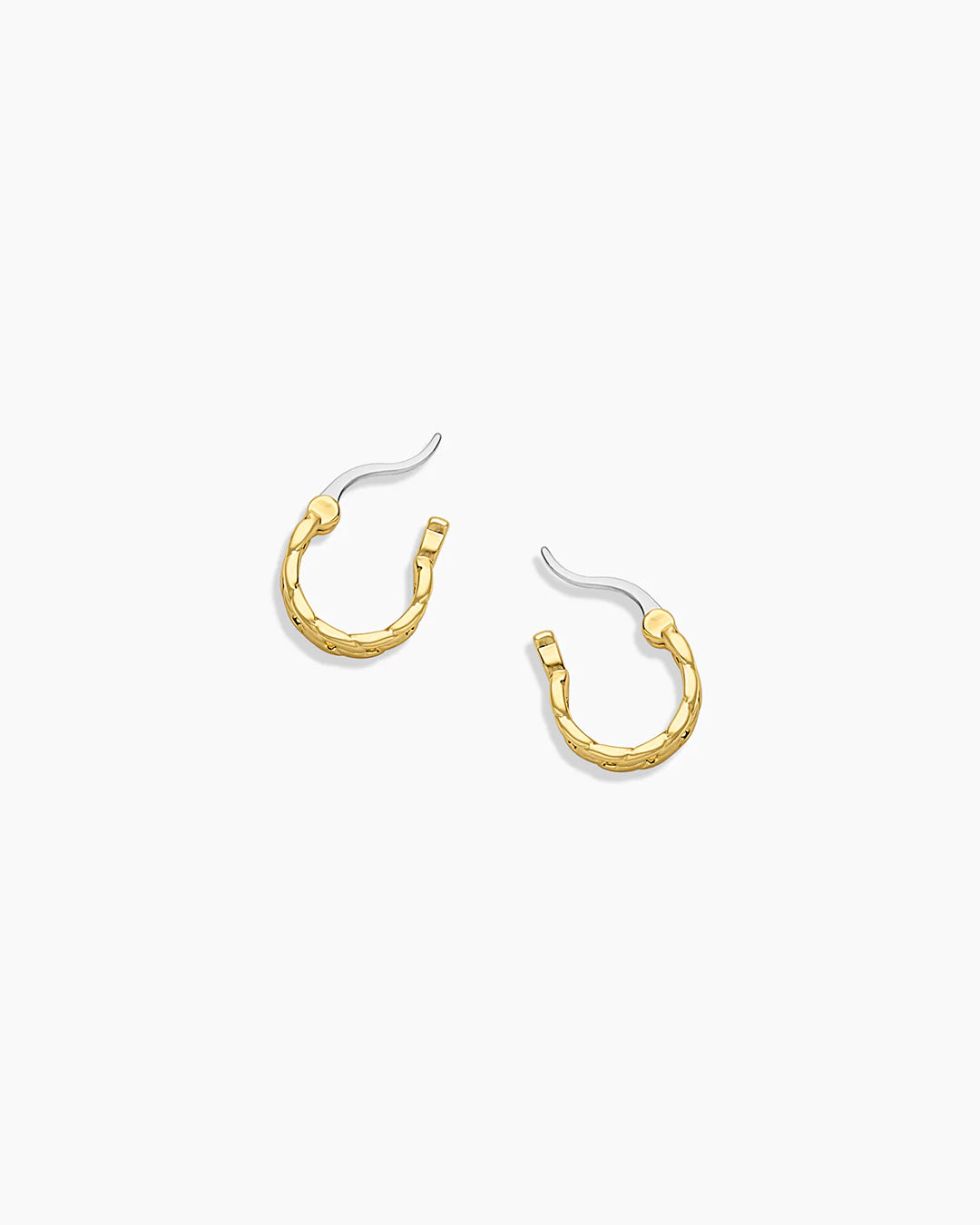 These elegant Wilder Huggies bring a cool texture to any ear stack. Featuring a modern chain-link inspired design that's perfect for first, second or third piercings.