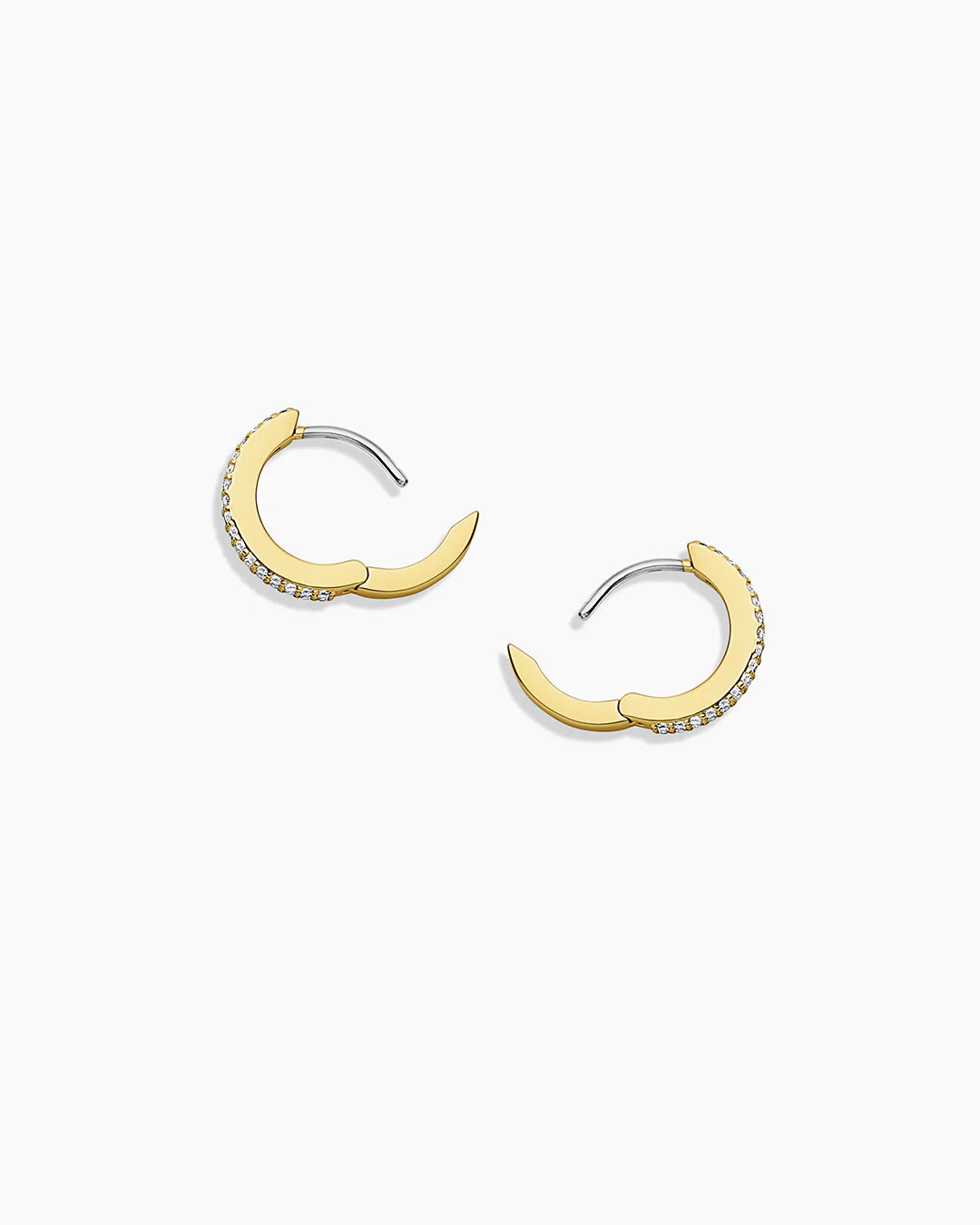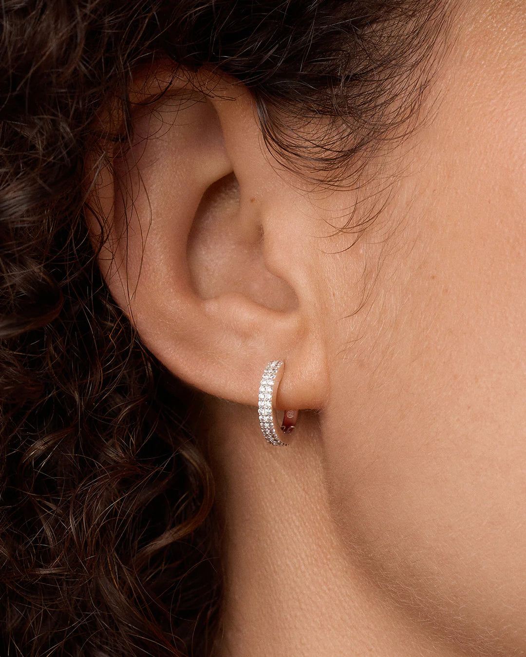 Elevate your ear stack with the Wilder Shimmer Bar Huggies. Featuring a sparkling design, these huggies are perfect for a night out or dressed down with your favorite jeans and white tee.