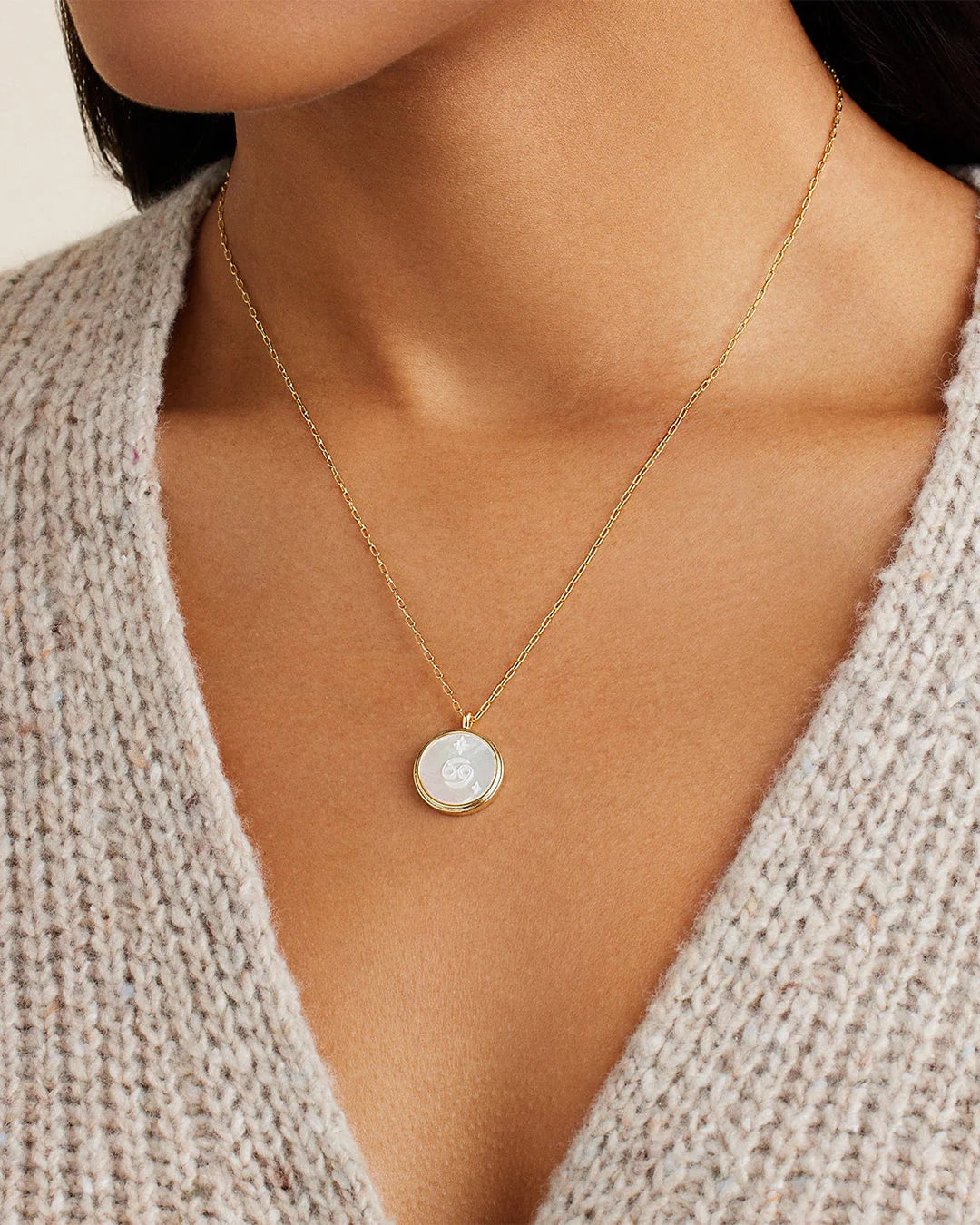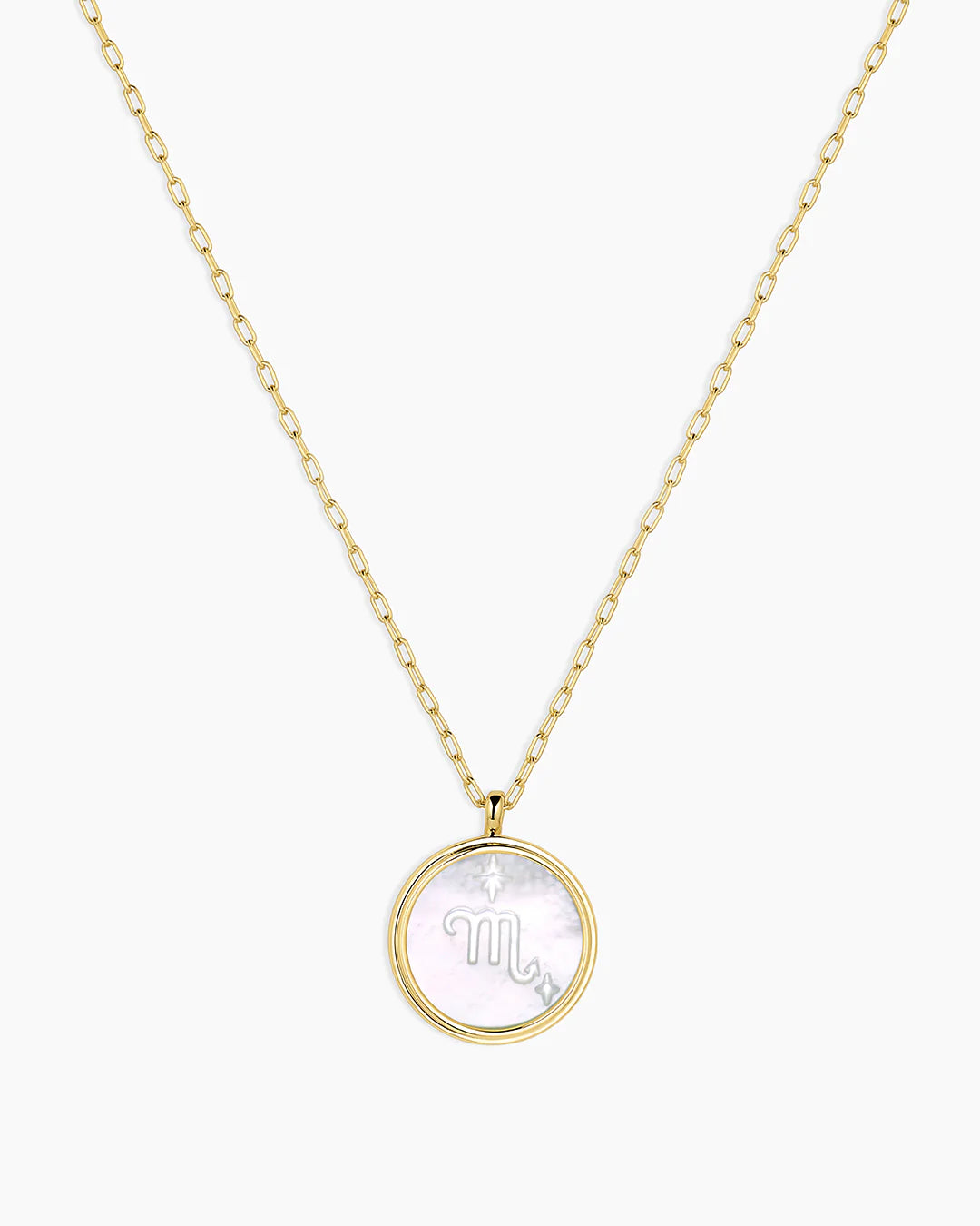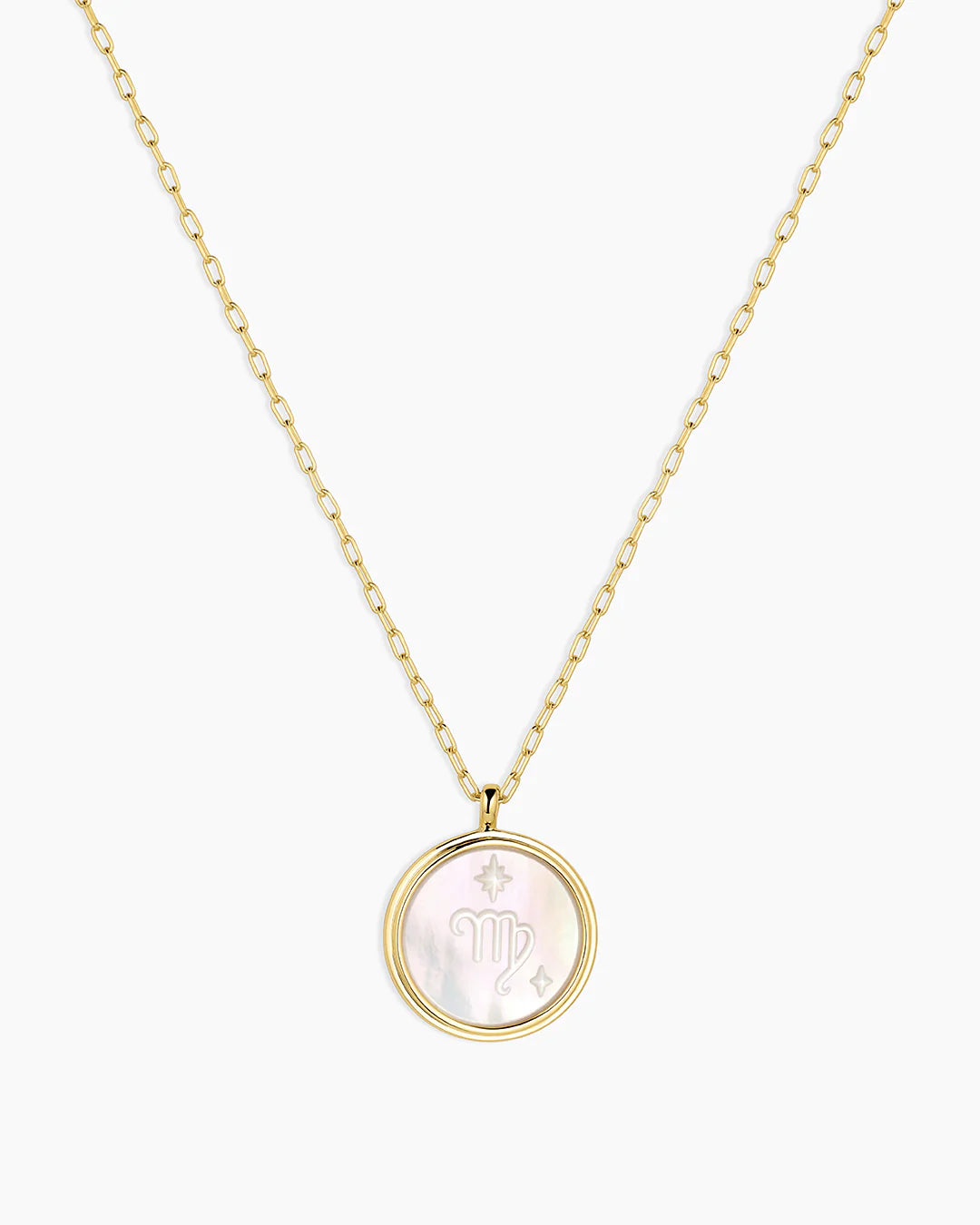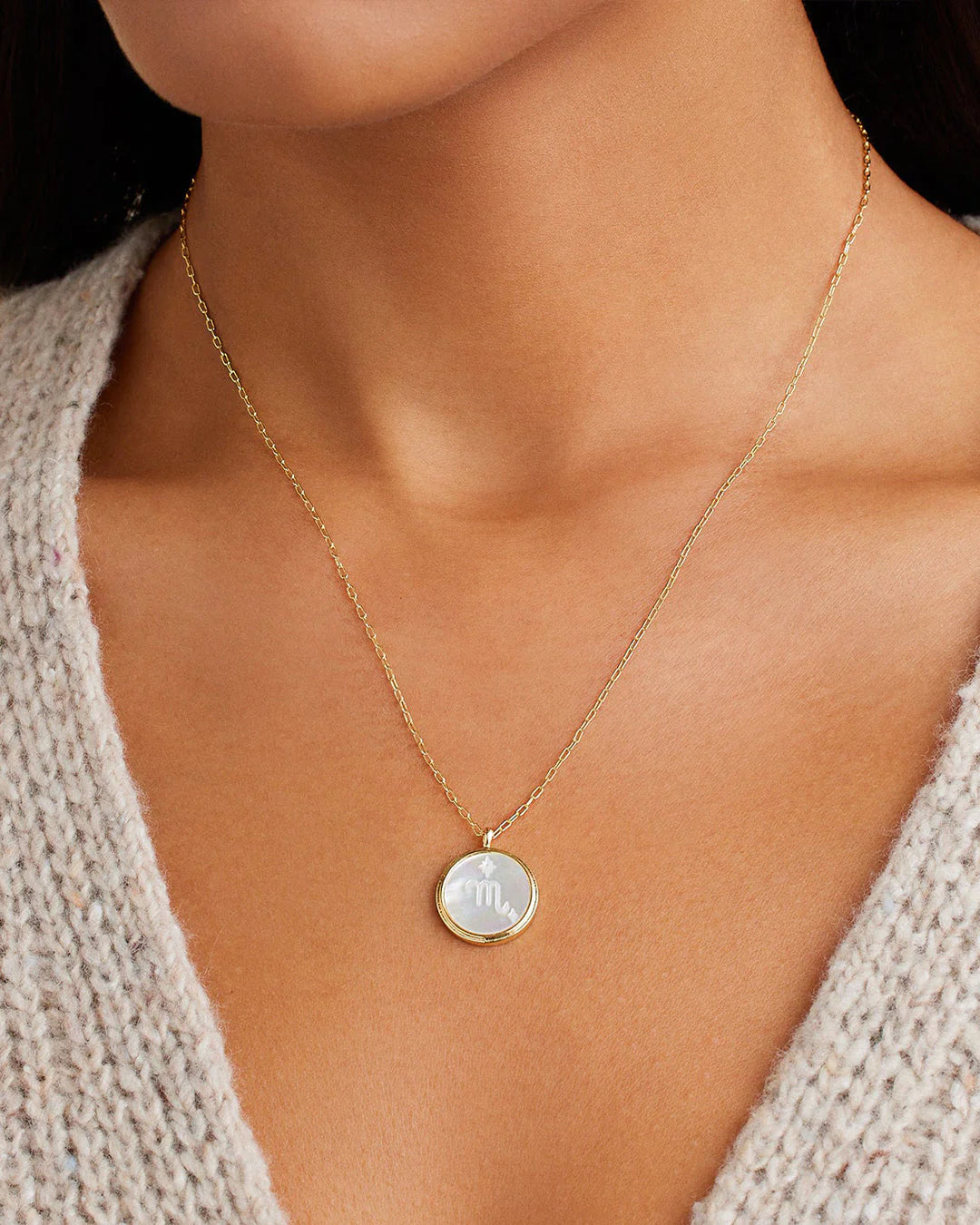 This Zodiac Necklace is the perfect way to express your star sign! The cosmic-inspired zodiac coin is detailed with white mother of pearl and a reversible charm for added versatility. This perfect personal layer makes a meaningful gift.