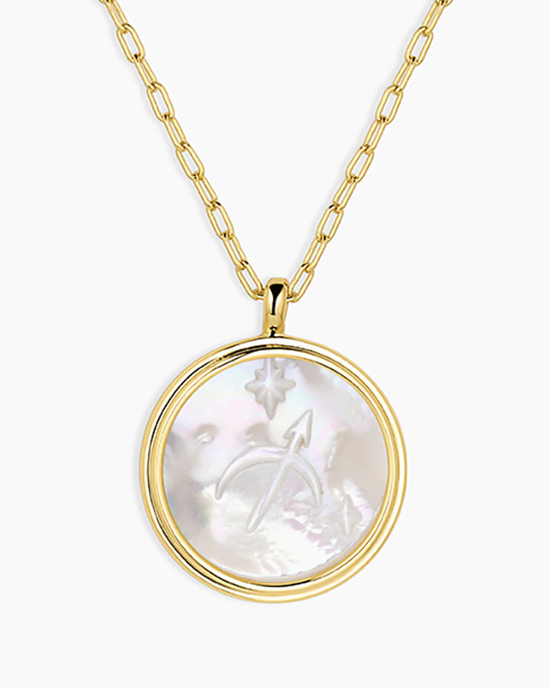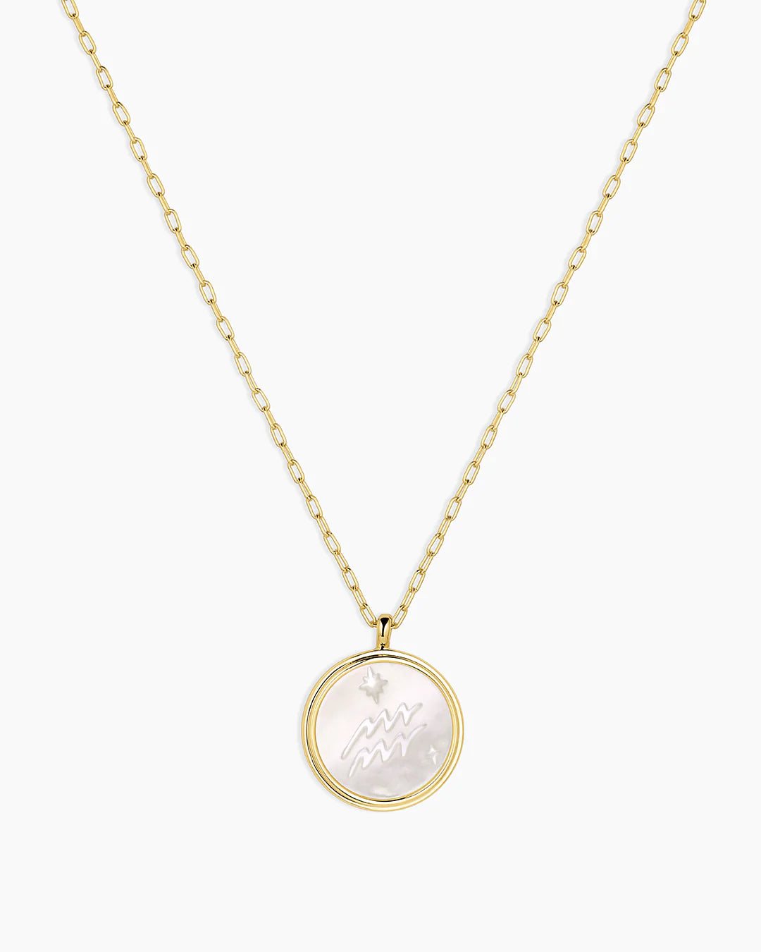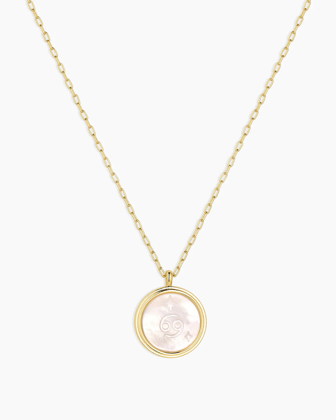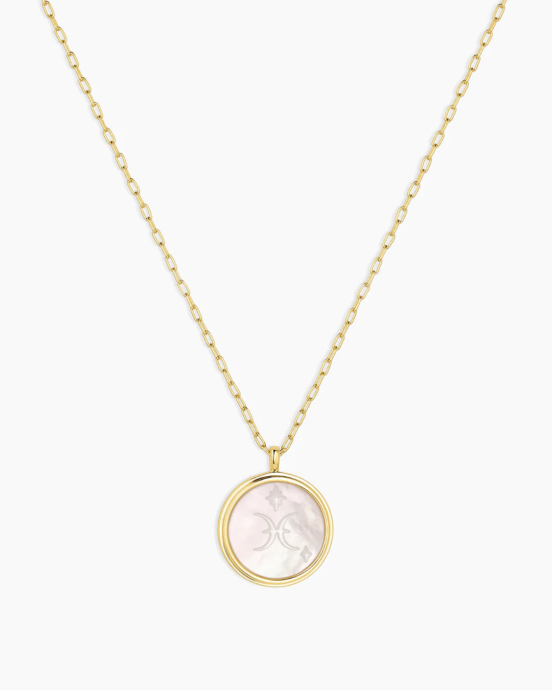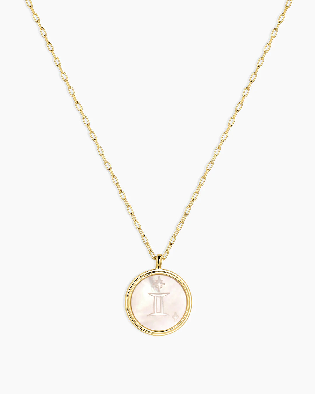 This Zodiac Necklace is the perfect way to express your star sign! The cosmic-inspired zodiac coin is detailed with white mother of pearl and a reversible charm for added versatility. This perfect personal layer makes a meaningful gift.